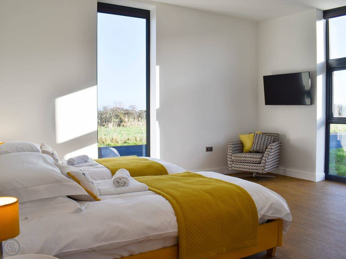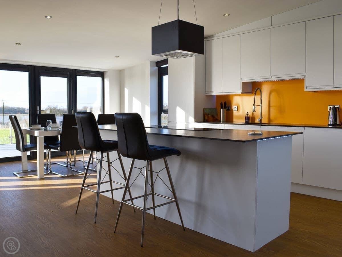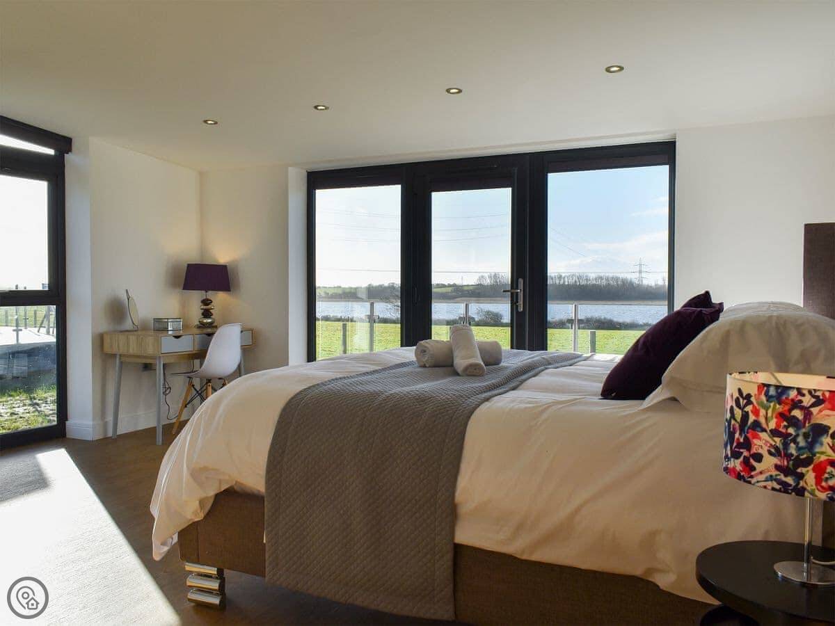 Located on the outskirts of the Lancashire village of Hambleton, these two superb holiday chalets offer modern and purpose-built luxury accommodation overlooking the peaceful and tidal River Wyre. Perfect for couples, families and friends alike, they were built in 2021 and are impressive from the moment you arrive. Great thought and consideration have gone into the design of the accommodation to ensure guest satisfaction throughout, and includes modern day conveniences such as underfloor heating, motorised electric blinds, smart TVs, wireless charging and electric vehicle charging points. The living space is open plan and sociable by design, boasting floor to ceiling windows and opens out onto a large, decked area with simply spectacular views. Offering a rare and relaxing holiday experience the chalets are located on a quiet country lane and surrounded by a ten-acre field. Dependent on the tide there’s the potential to watch sail and speed boats, and local wildlife is plentiful with deer, hares, swans and geese frequenting the site. Ample walking and cycling are available direct from the door, and finally the unobscured views of the sunsets are simply stunning.