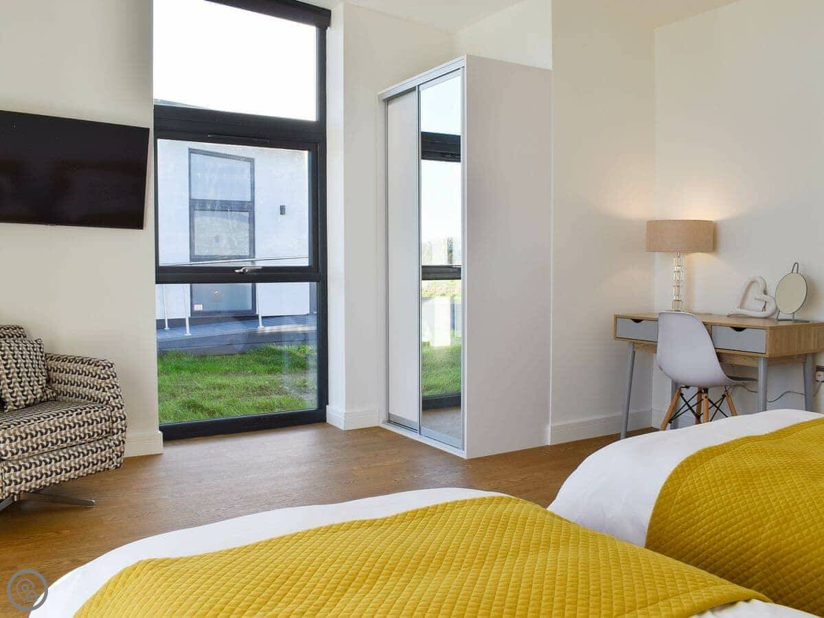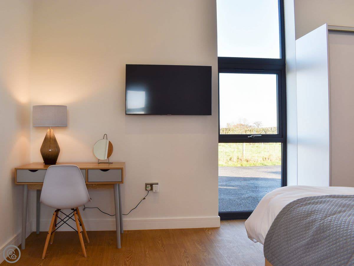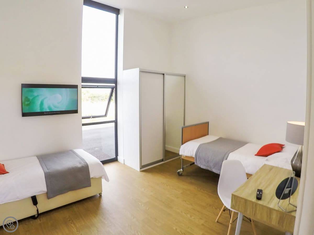 Each chalet offers ground floor accessible accommodation with ramp access, wide external and internal doors, a twin bedroom with profiling bed bed with an en-suite wet room. A reduced height basin with integrated grab handles, increased WC height and a folding shower door allow greater access. If required, furniture raisers, a shower chair, toilet chair, tilt in space shower chair and a mobile hoist can be provided upon request at time of booking.