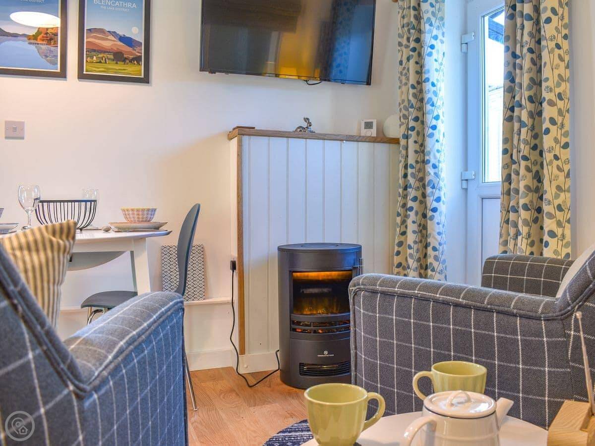 This one bedroom contemporary styled Lodge is situated in the pretty village of Motherby, on the fringe of the Lake District National Park. The lodge is cosy with underfloor heating, and an ornamental fireplace houses the electric wood burner. Motherby has the benefit of easy access from the M6 and is centrally placed and a short drive to visit hotspots like Keswick, Ullswater, the Eden Valley and Penrith and the remaining Northern Lakes.