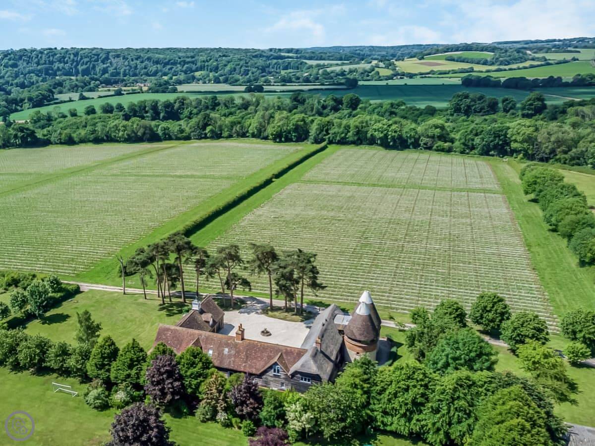 It's on a proper working estate. You've got about 80 acres of vines and woods and a couple of fishing lakes. There's peacocks, rare breed chickens, sheep. You'll see them all wandering about.