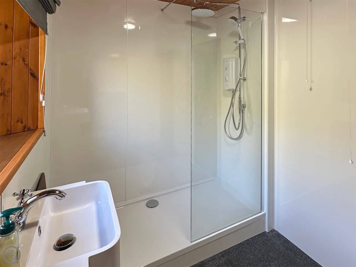 It sleeps five. Two bedrooms and one bathroom with a shower. There's a woodburning stove for chilly evenings, a washing machine, and parking right outside. Bedding and towels are included. You can bring up to two dogs.