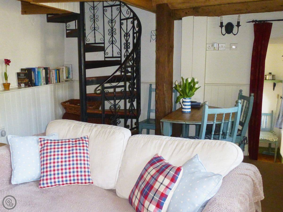 It's old, so there are period features. Exposed beams, a woodburner for when it's cold. The stairs are spiral and quite steep. You'll need to watch your head. Just saying.