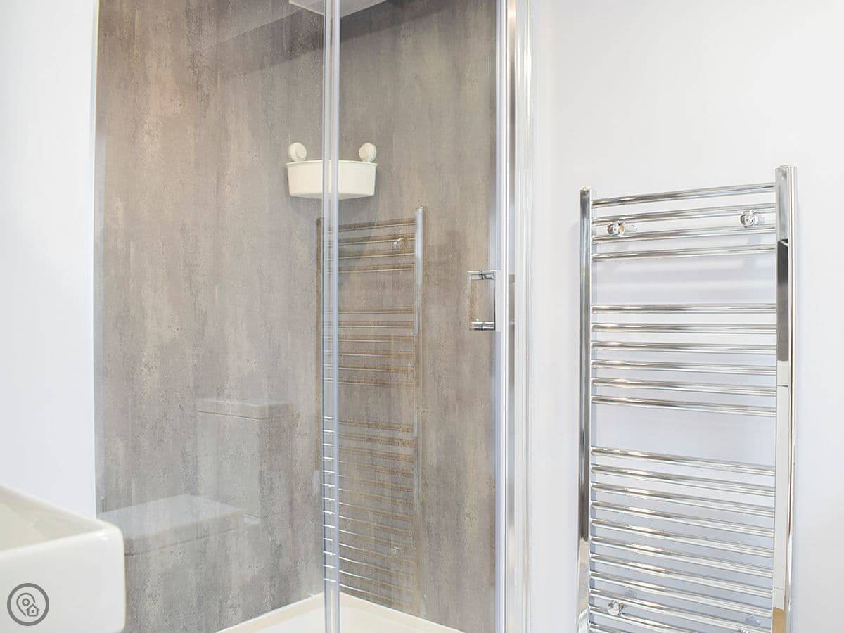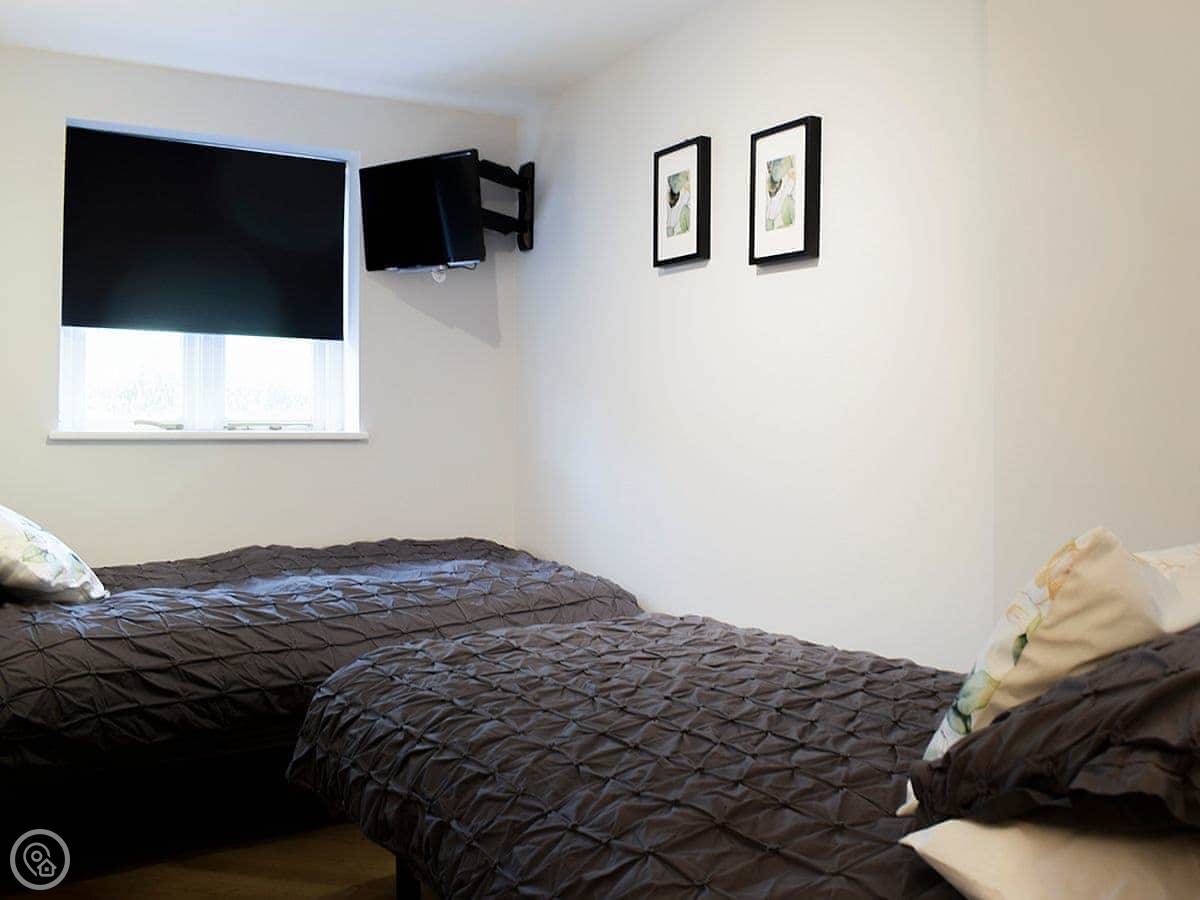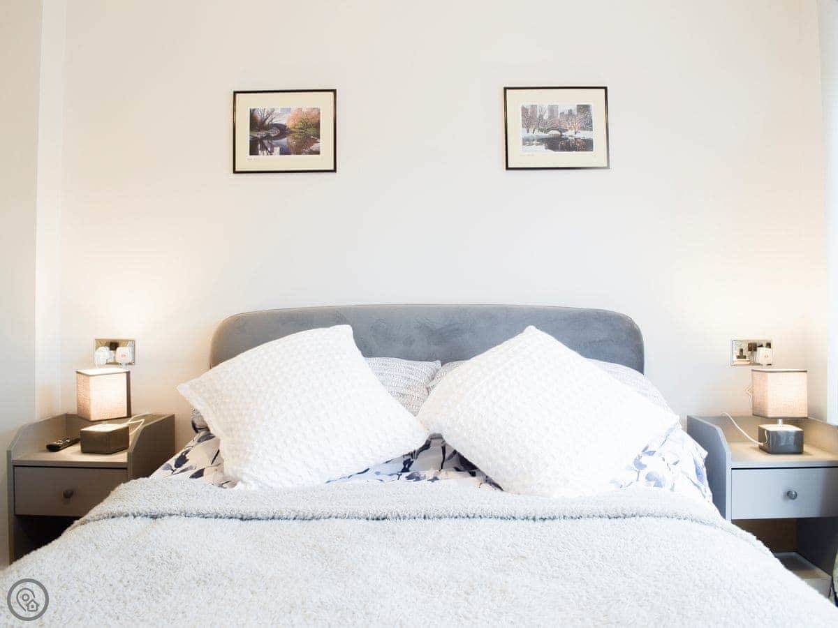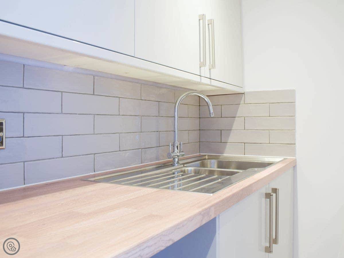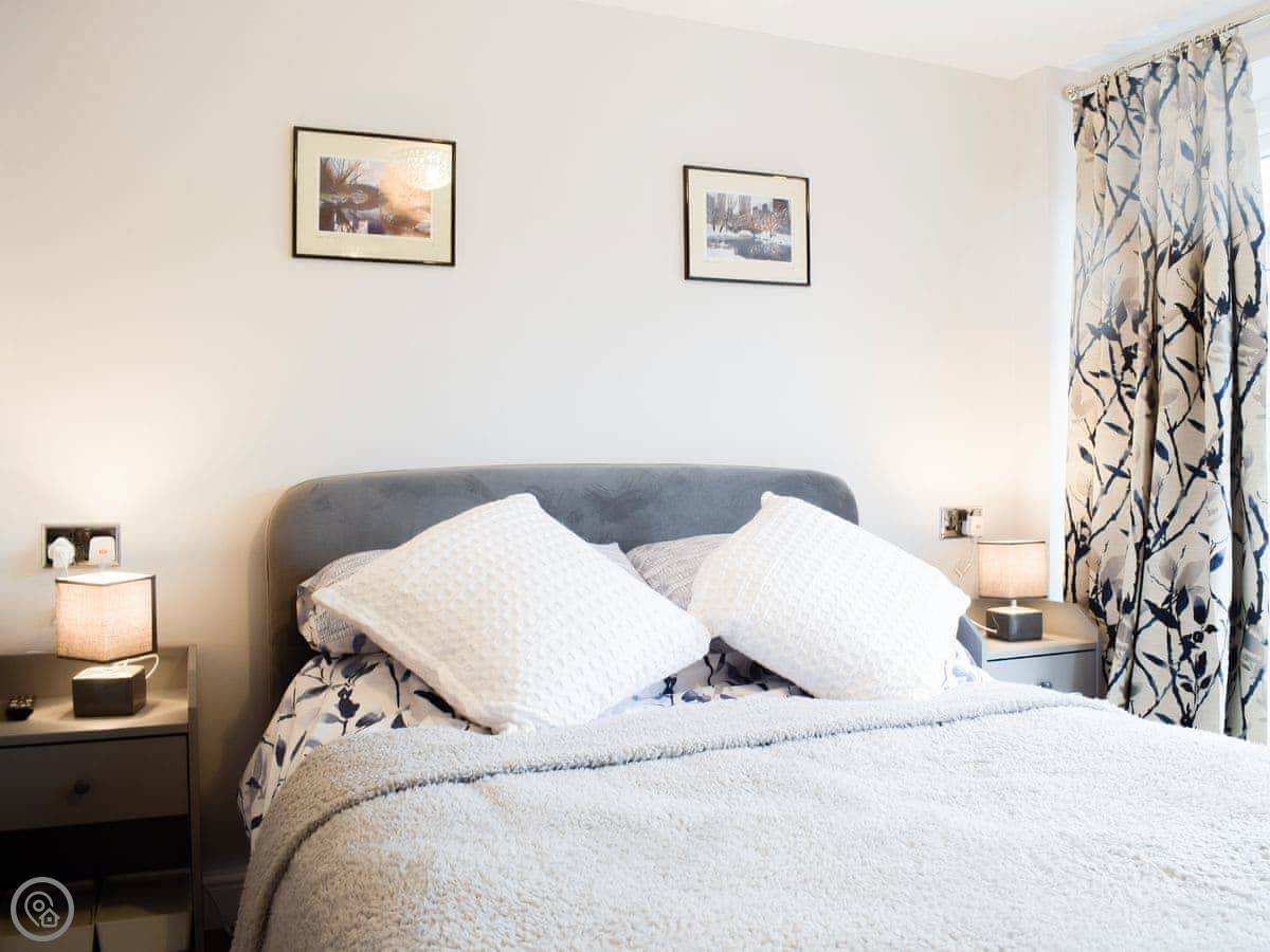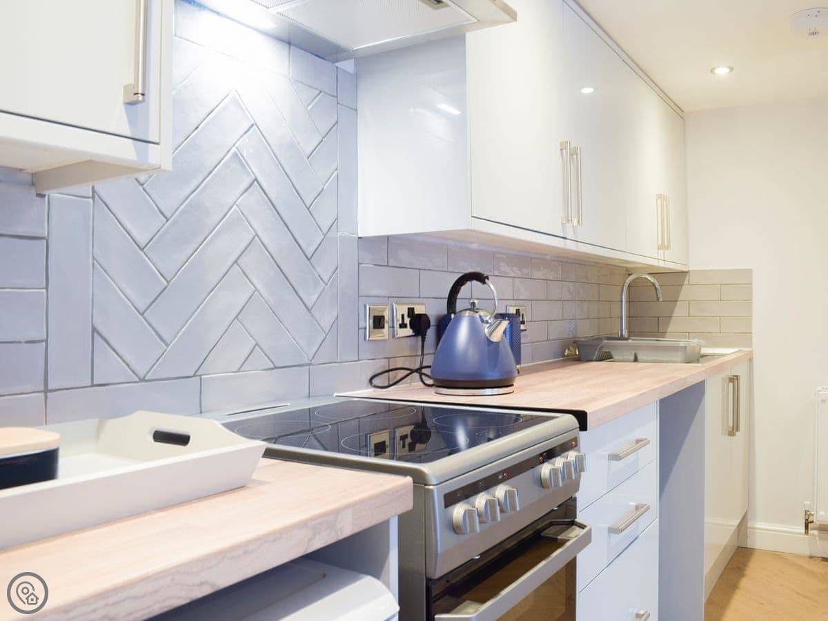 Inside, it's open plan. Kitchen with a dishwasher and washing machine, then the living area. Bedding and towels are included. We can provide a cot and highchair if you need them. There's WiFi and parking right outside.
