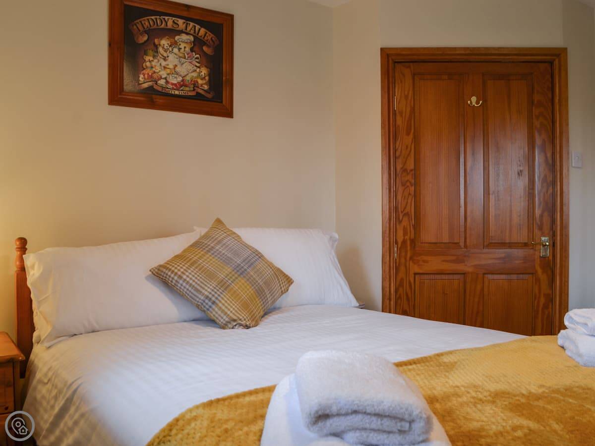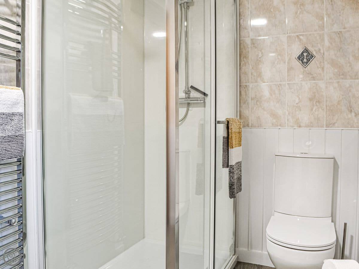 It sleeps four in two double bedrooms. There's one bathroom with a walk-in shower. It's got a 3 Star rating. It's clean and has what you need. The garden at the back is enclosed and private. It gets the sun in the evening.