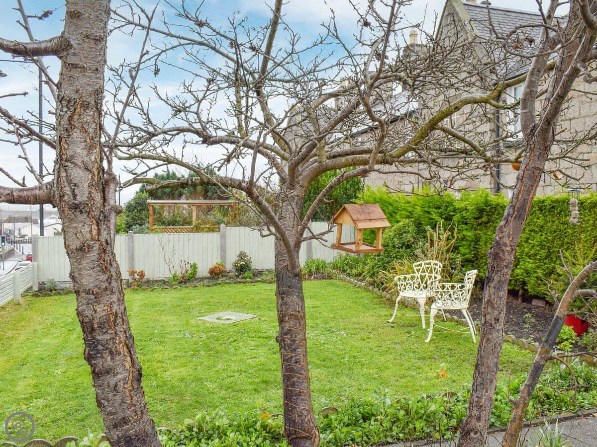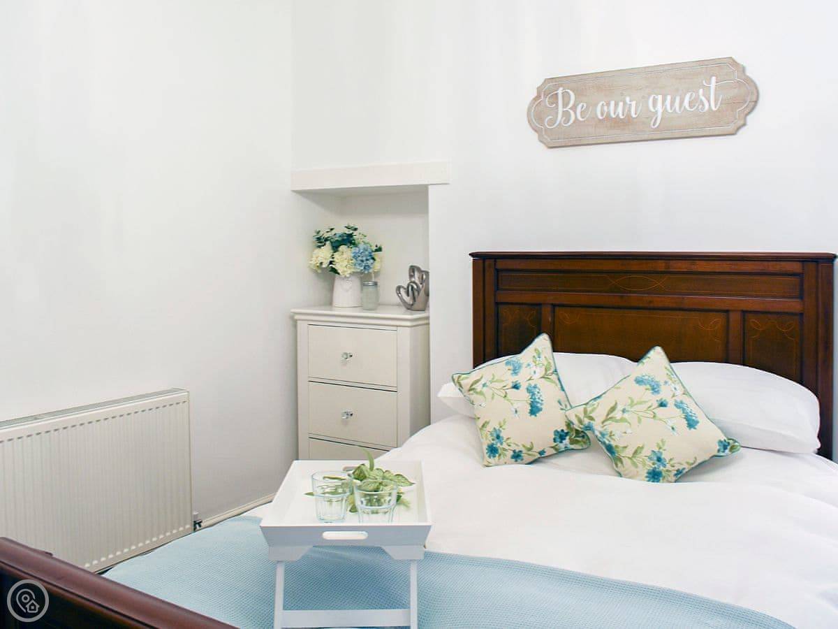 Outside, there's a parking space and a front garden with a table and chairs. You can bring one dog.