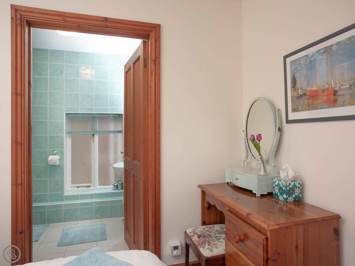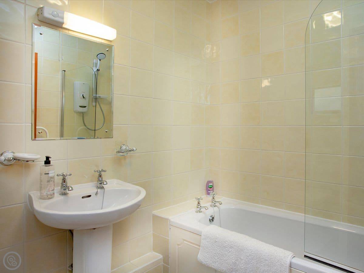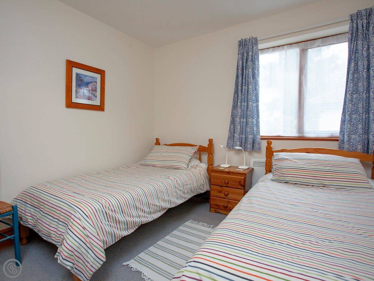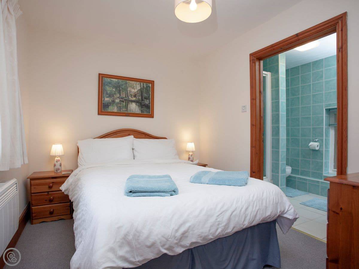 It sleeps four. Two bedrooms, two bathrooms. One bedroom has its own shower, the other uses the main bathroom which has a bath. It's got a 3 Star rating. It's clean and comfy, not luxury.