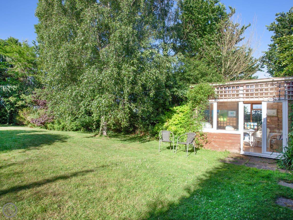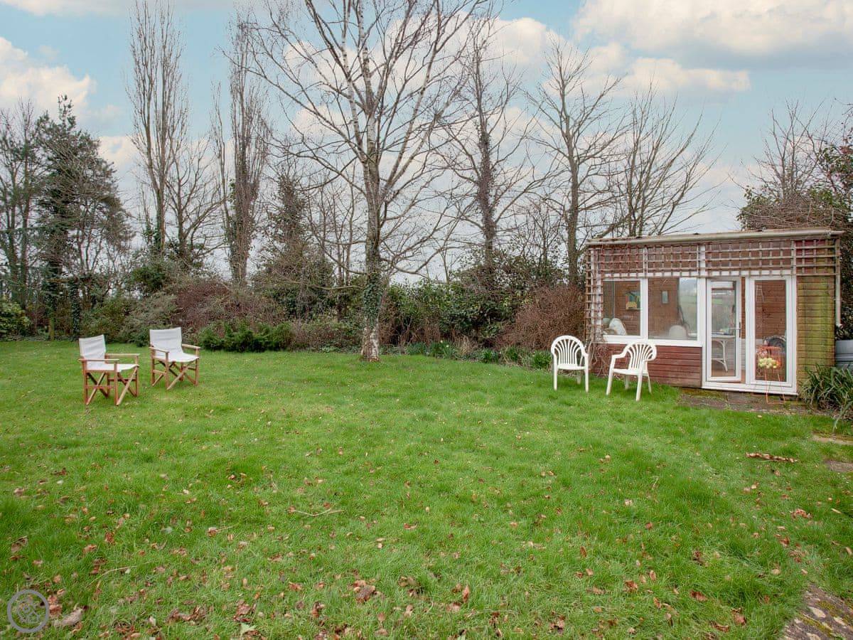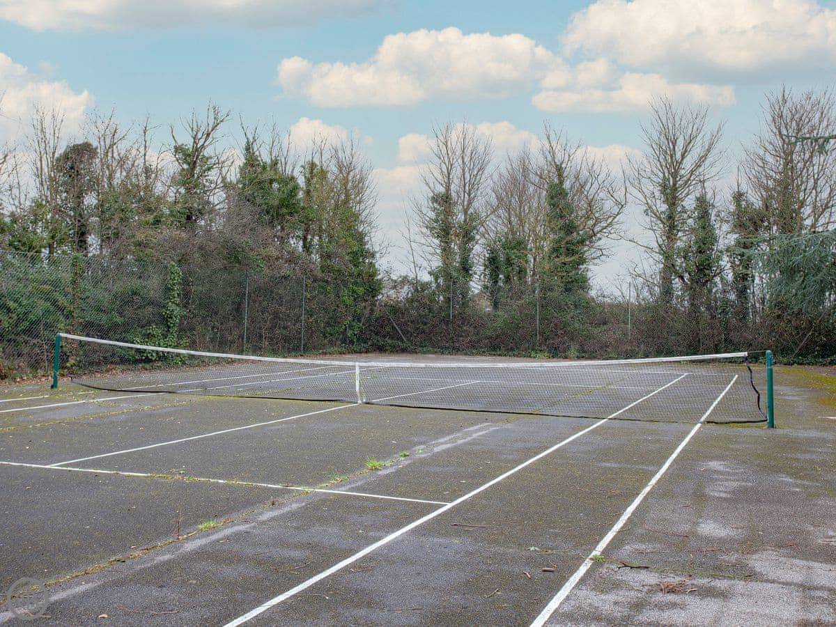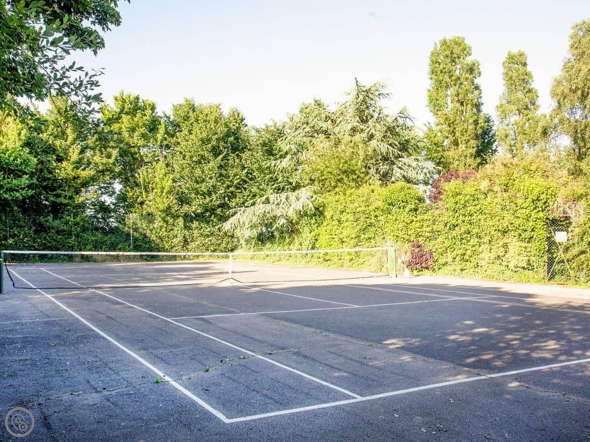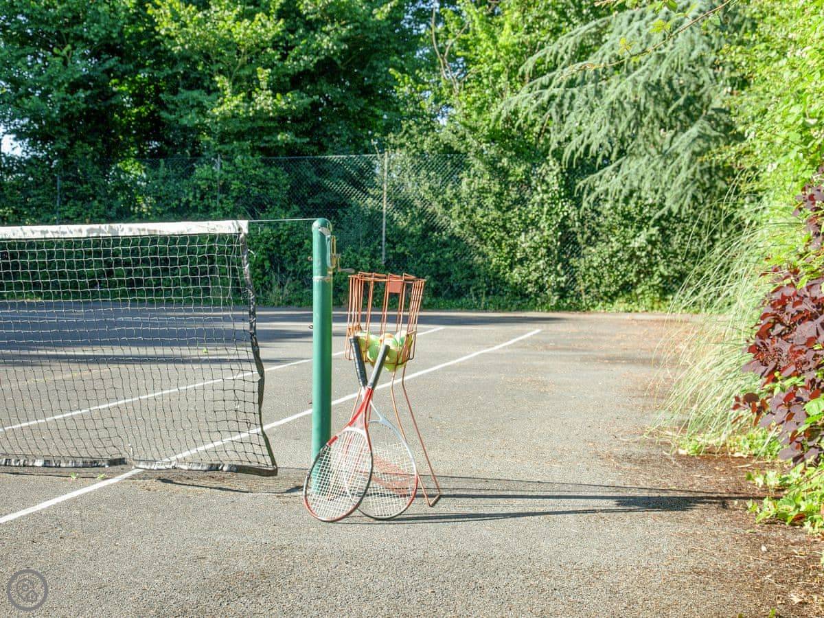 Outside, there's a bigger lawned garden than you might expect from the front. There's a hard tennis court you can use. Rackets are in the summer house. There are a few different spots to sit, including one tucked away with a good view over the fields.