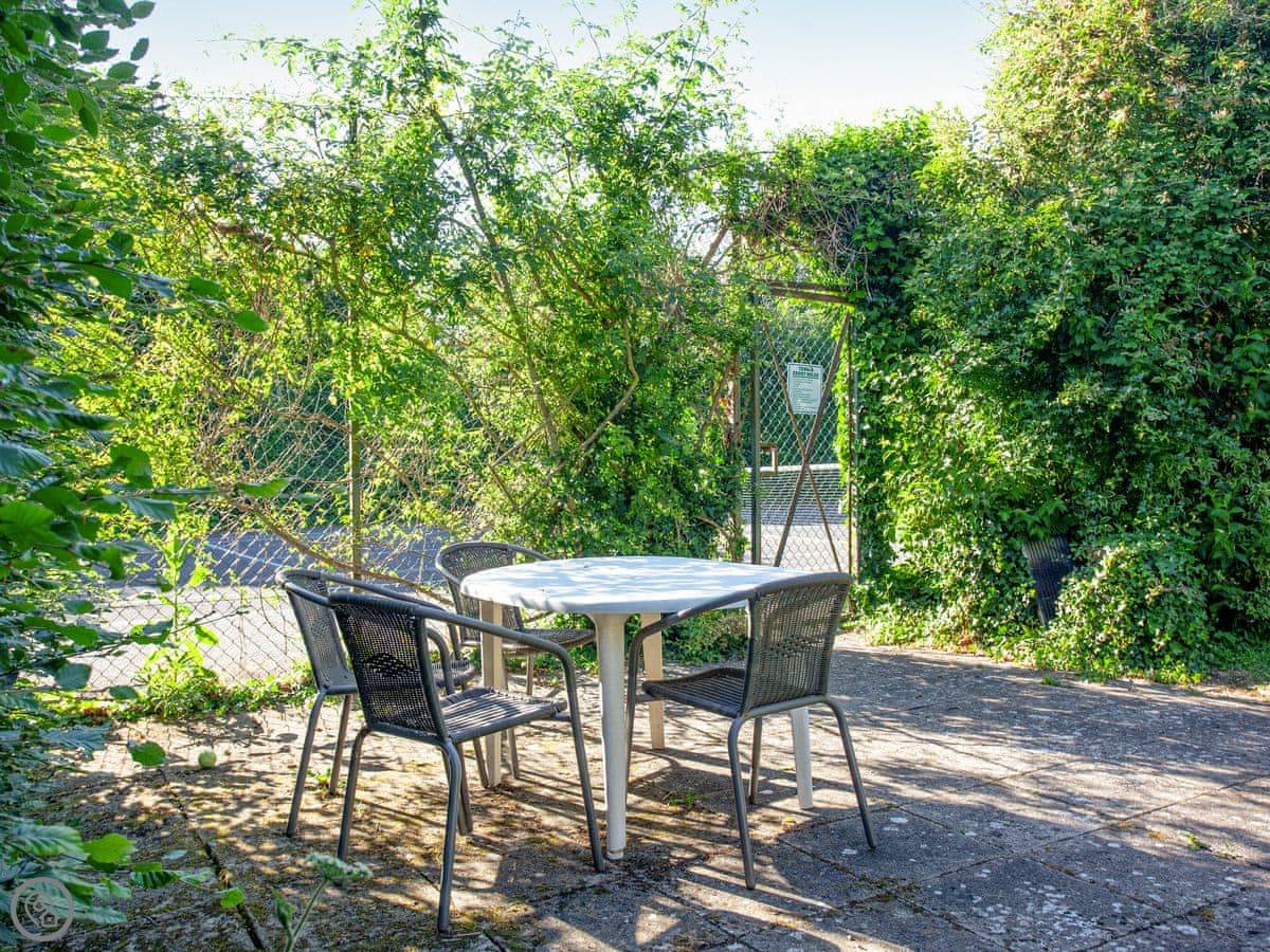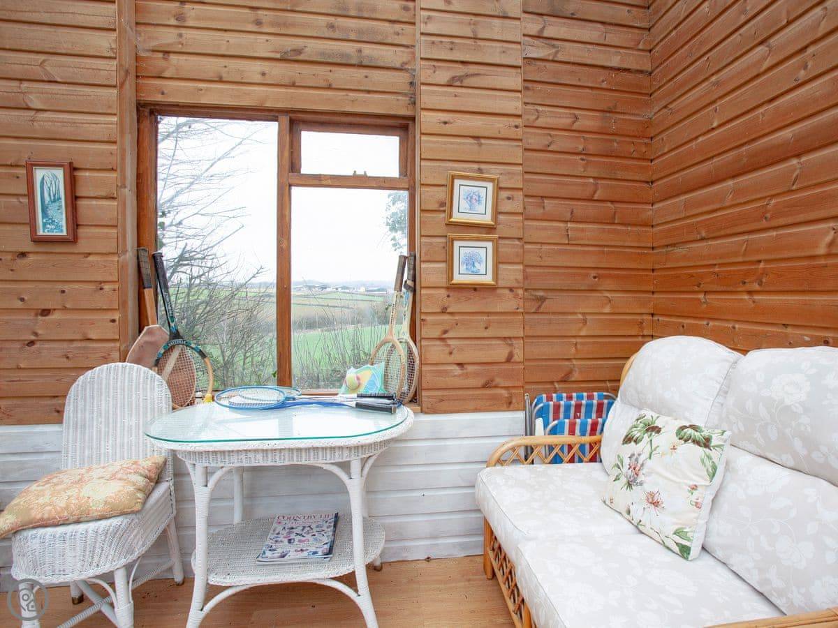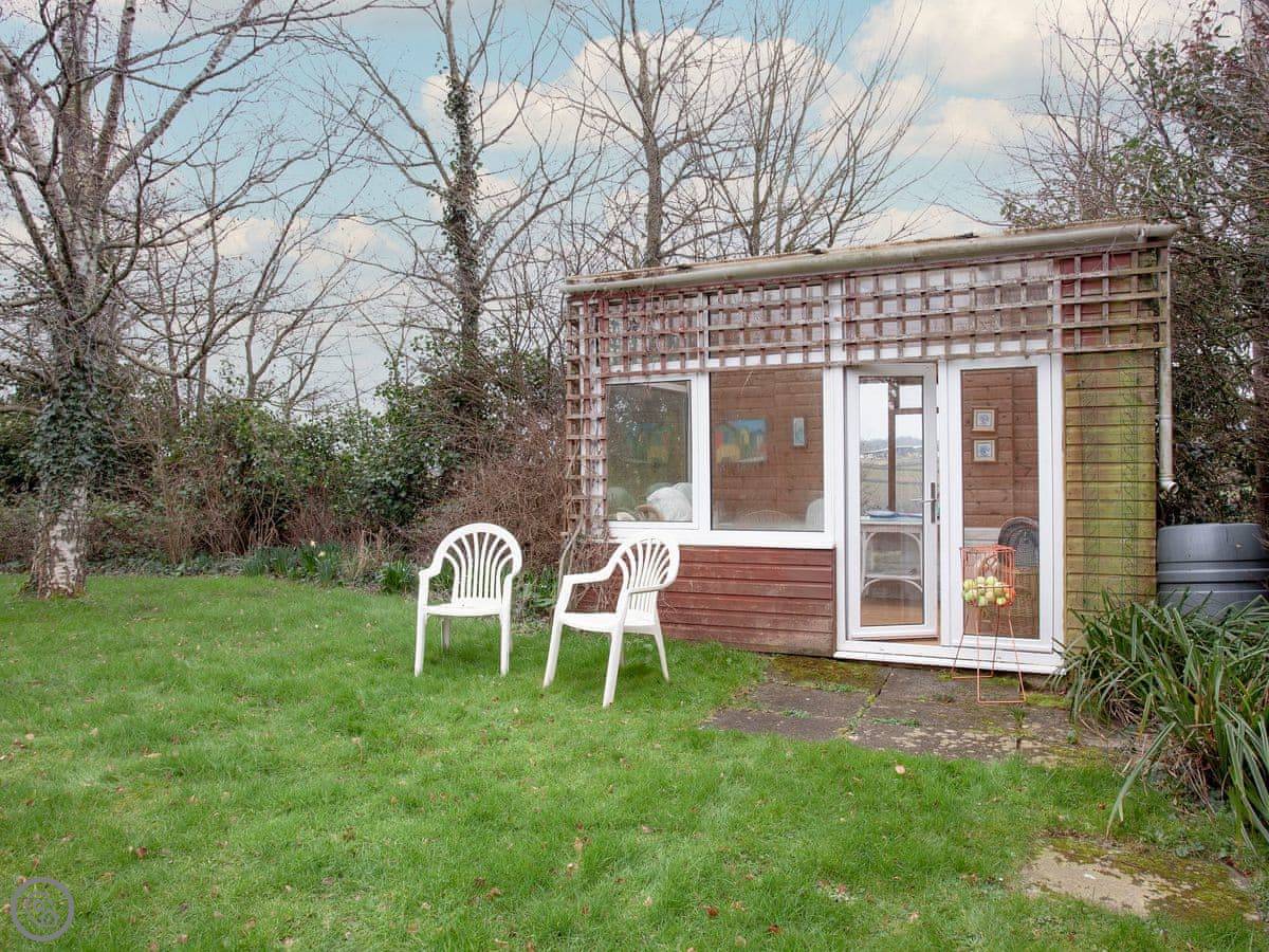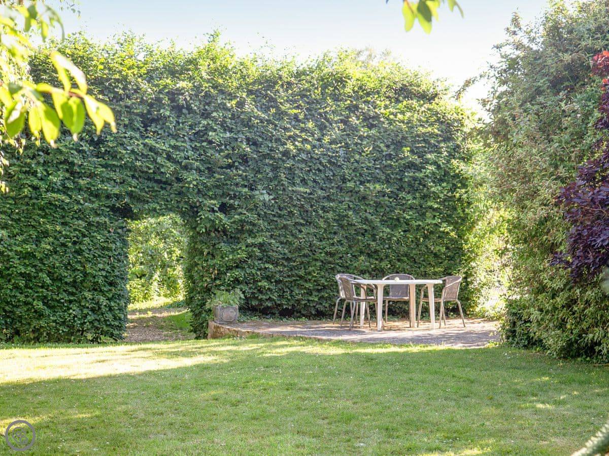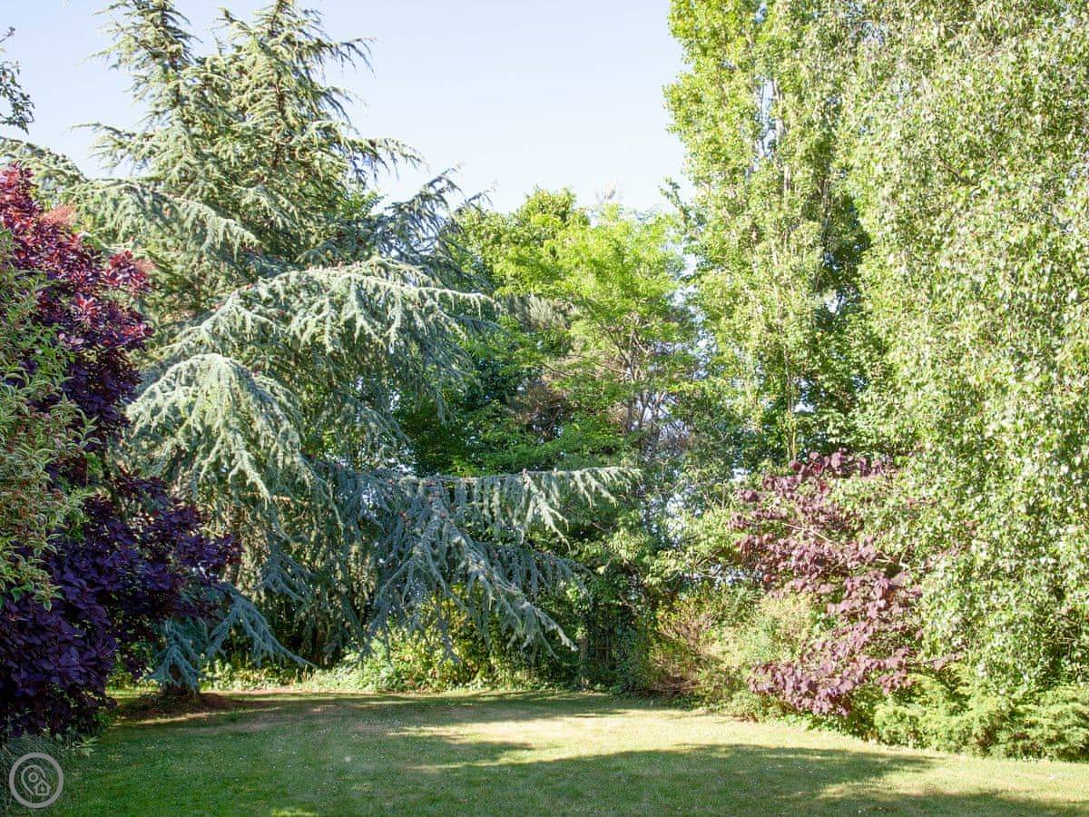 Outside, there's a bigger lawned garden than you might expect from the front. There's a hard tennis court you can use. Rackets are in the summer house. There are a few different spots to sit, including one tucked away with a good view over the fields.