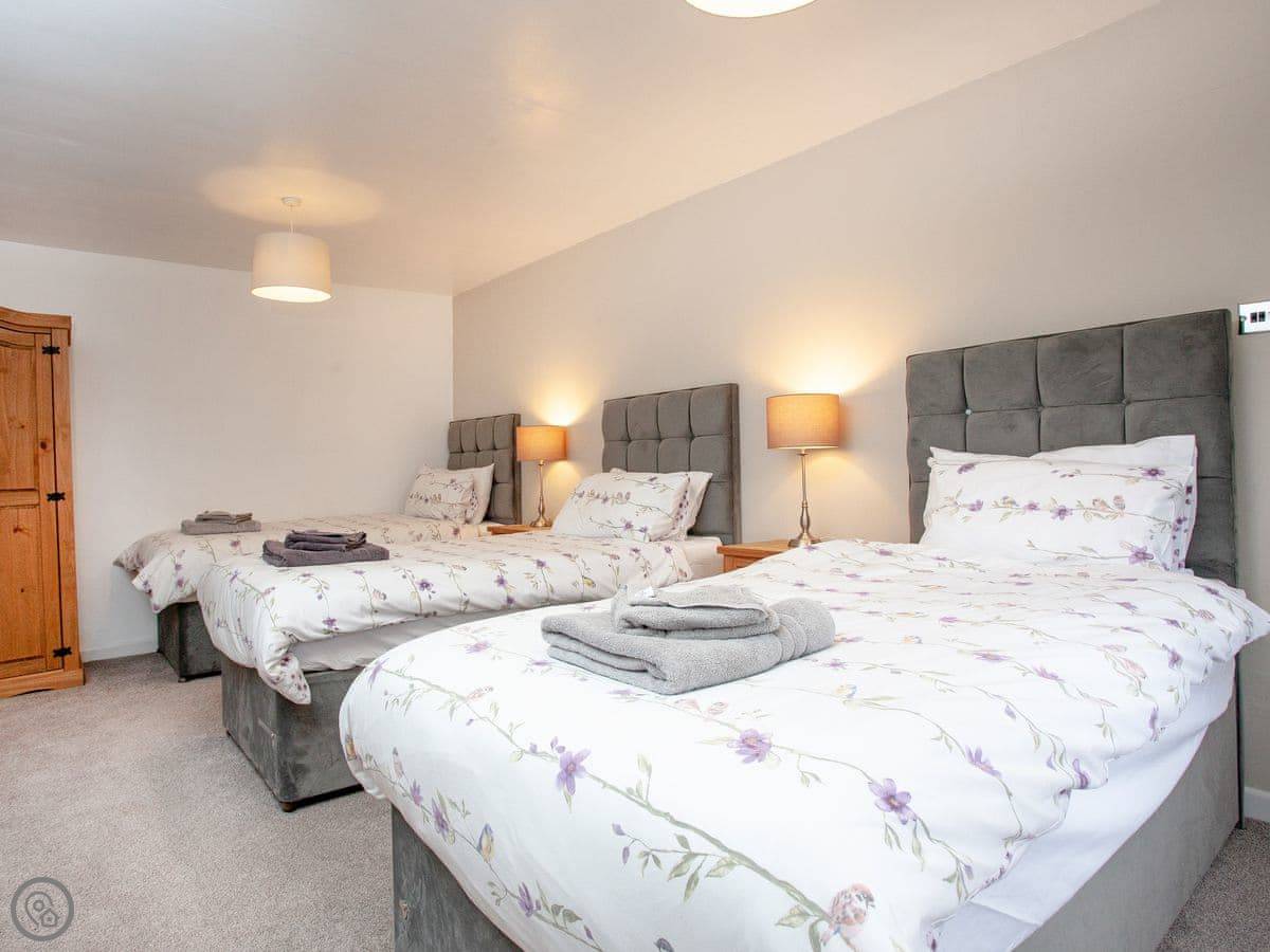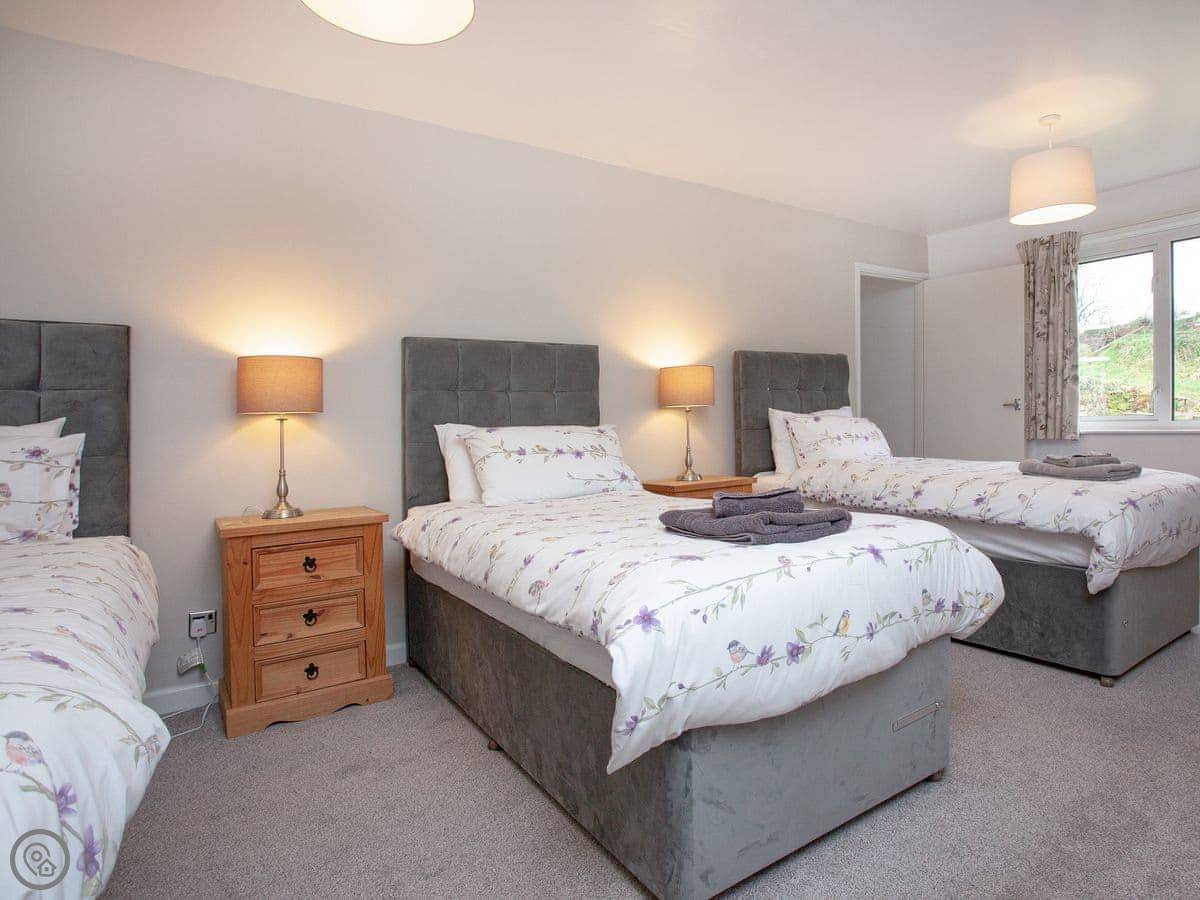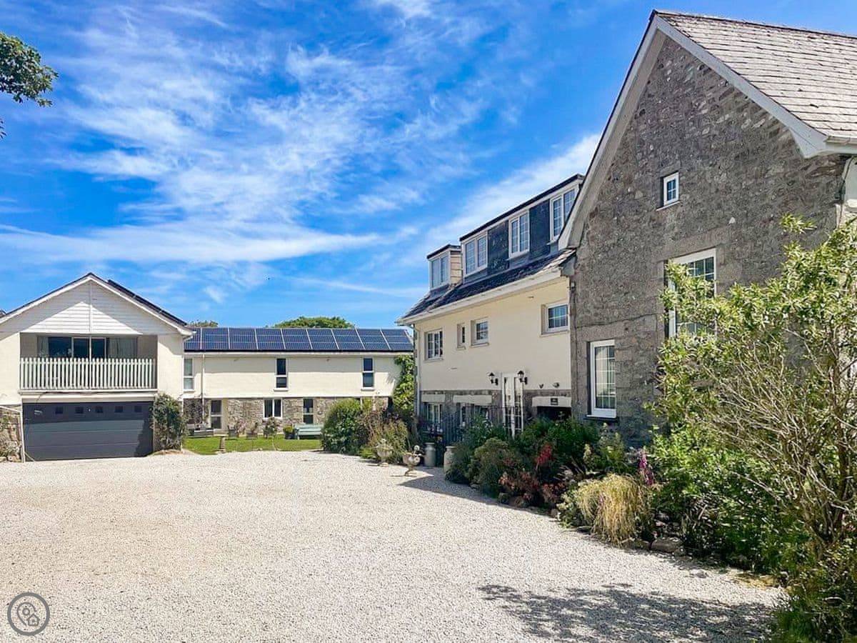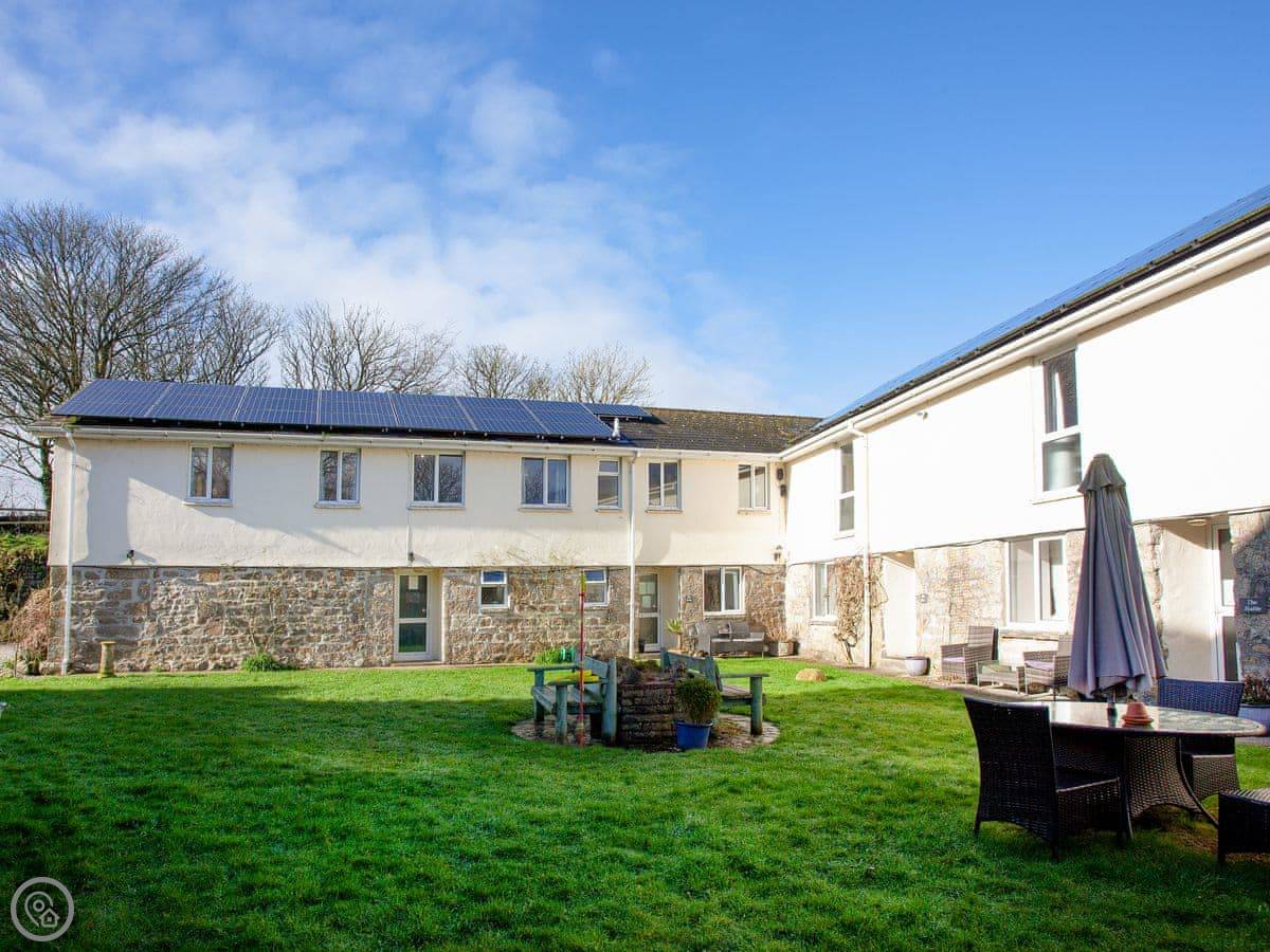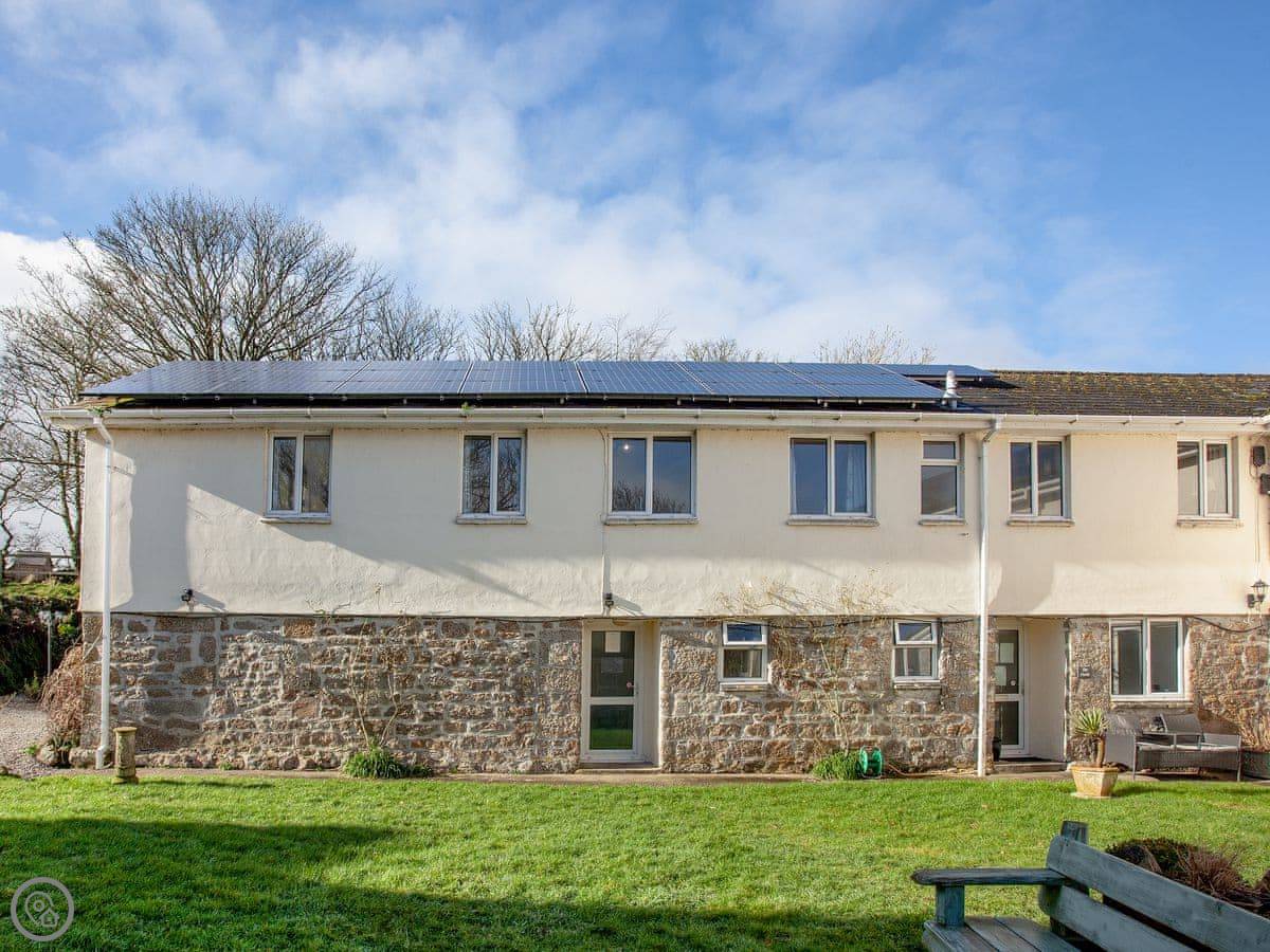 It sleeps seven. Three bedrooms, two bathrooms. It's a 3 Star place, so it's comfortable and clean but not luxurious. We try to run things in an eco-friendly way. The site has about four acres of gardens and fields to wander in.