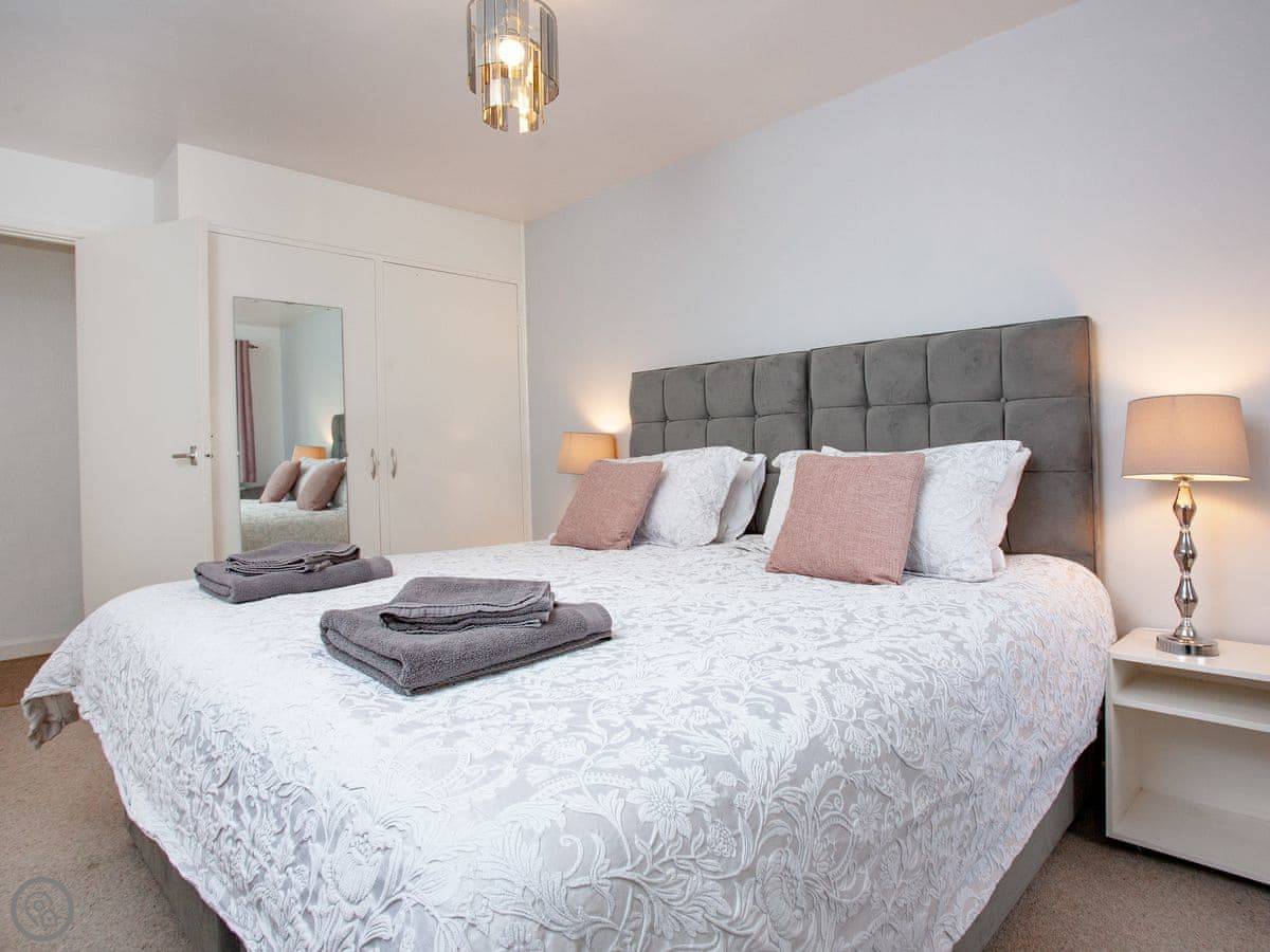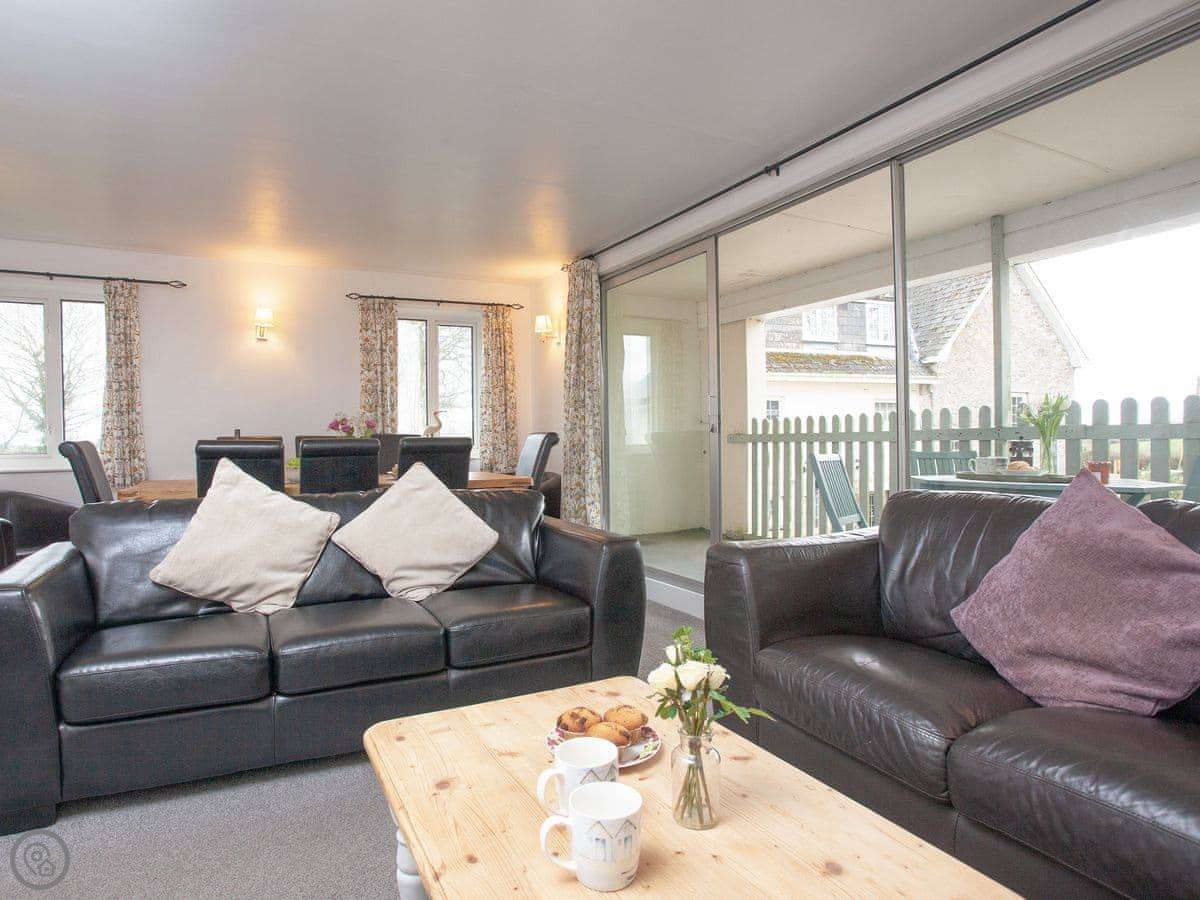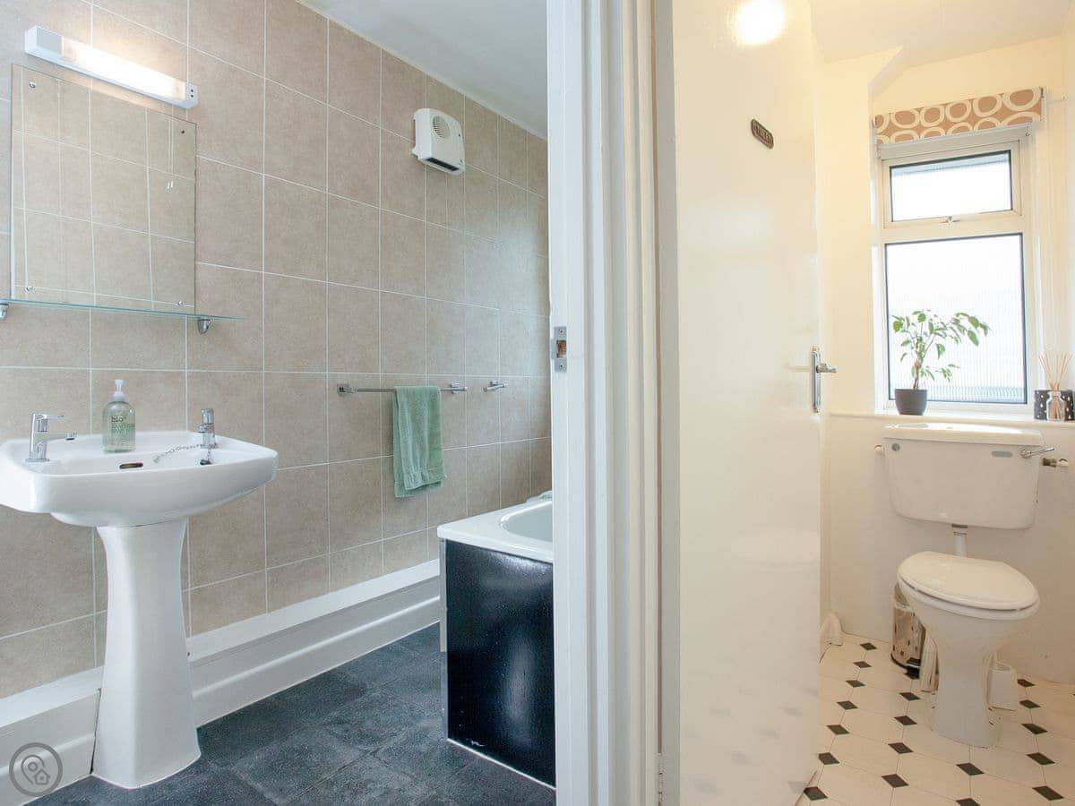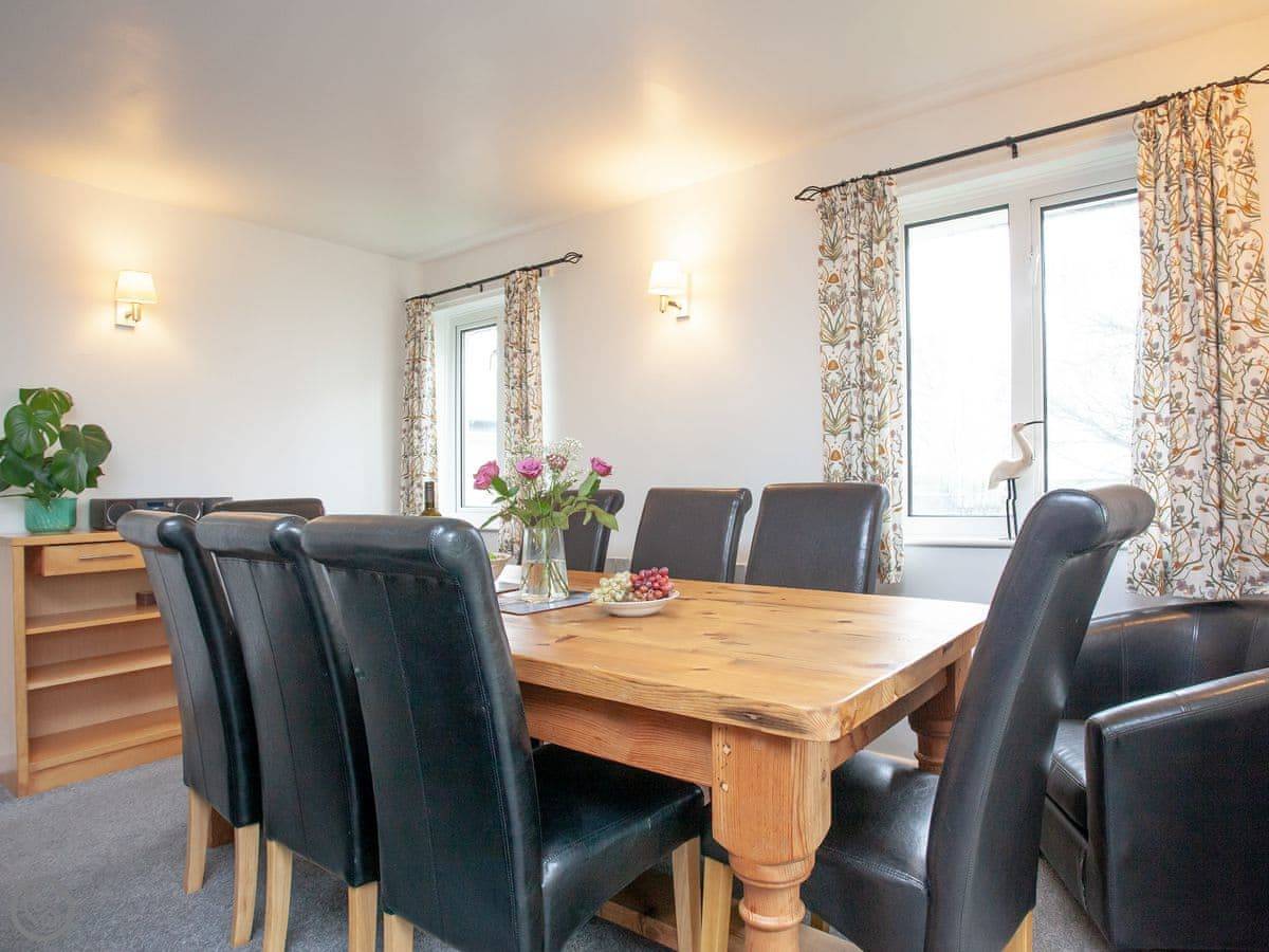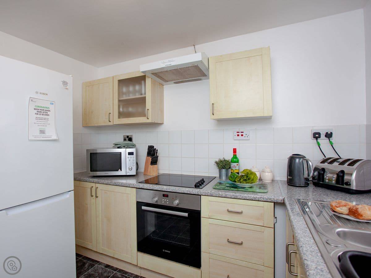 Inside, it's open plan. There's a washing machine, a dishwasher, and WiFi. Bedding and towels are included. We've got a cot, highchair, and stairgate if you need them. There's parking right outside. You can bring up to two dogs.