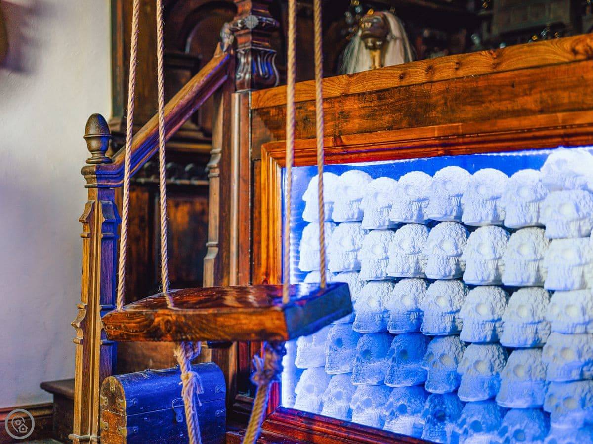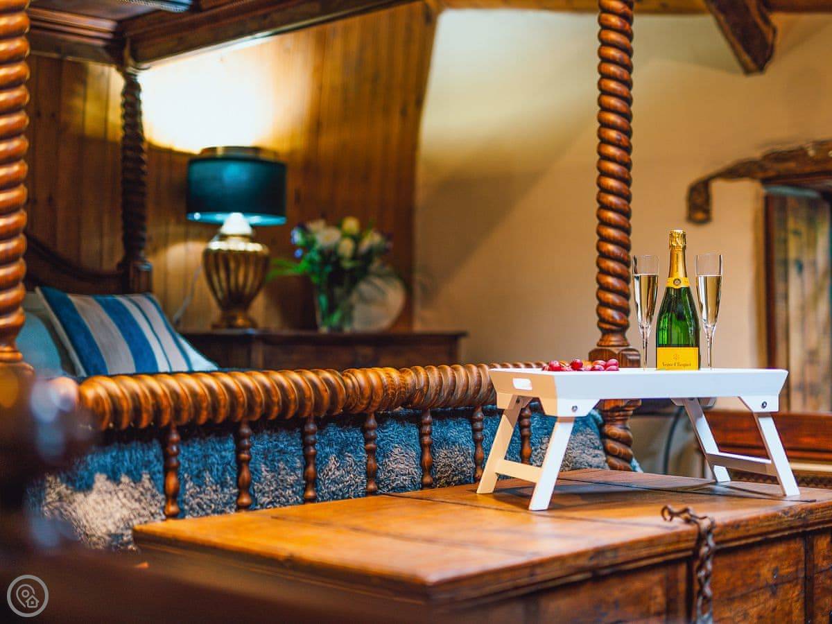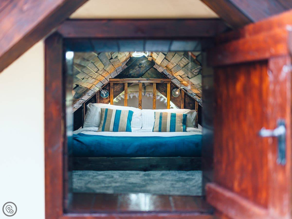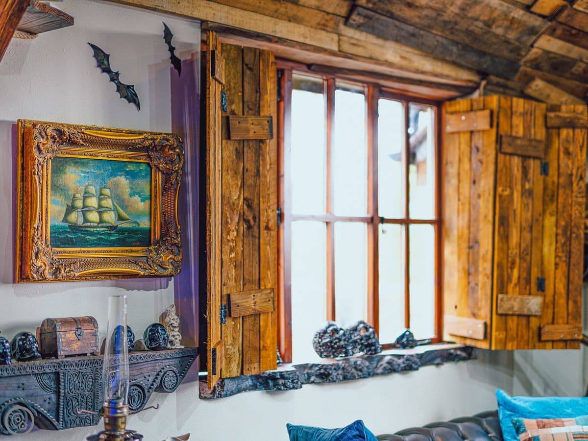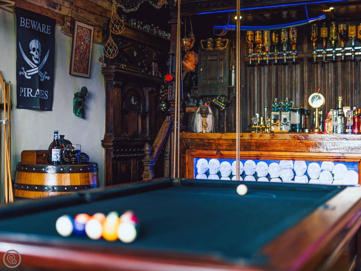 As you enter the front door, there is a bathroom on the ground floor with a shower cubicle and a double bath. A double bedroom with a bespoke handmade kingsize bed is to the right up a staircase. To the left side of the property, there is an open plan living and kitchen space that houses an 85” Smart TV, sound systems and games console. The kitchen has an American fridge/freezer, dishwasher, washing machine, electric range cooker, and tumble dryer. There is a fabulous mezzanine with a custom handmade four poster bed. The library leads onto the south-facing private terrace area overlooking the valley, has a superb seating area for relaxing in the sun and watching the sunset; the perfect spot for watching the kites and buzzards feeding! Following the library is a sizeable nautical-themed bar with a full-size pool table, Smart TV, and sound system . There is also a mezzanine bedroom with a double bed – access to this is via an external staircase.