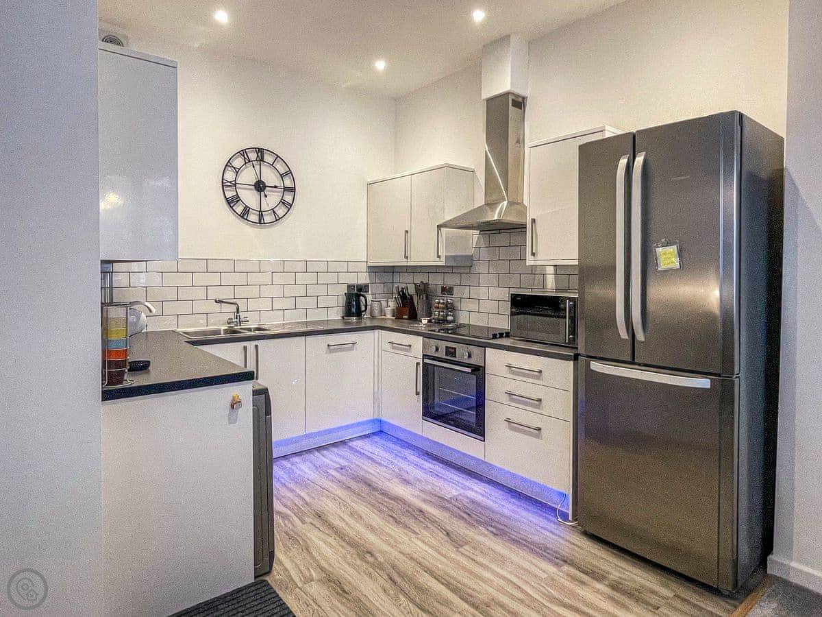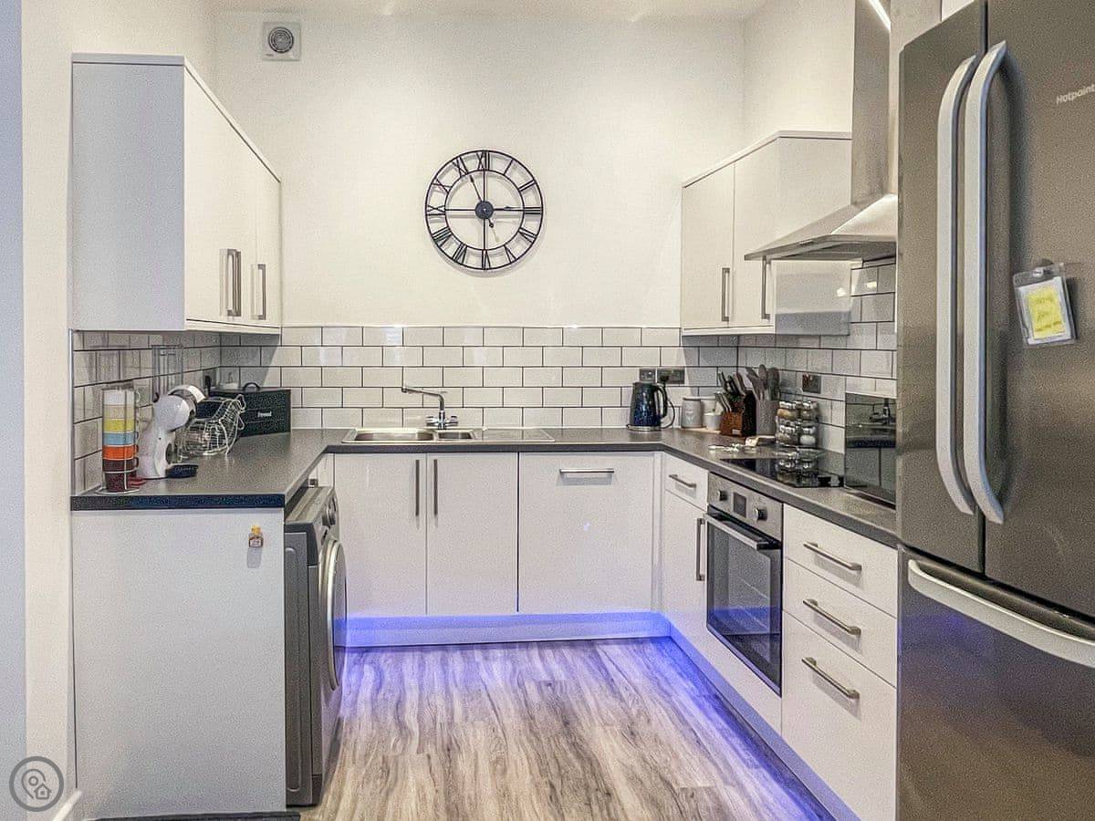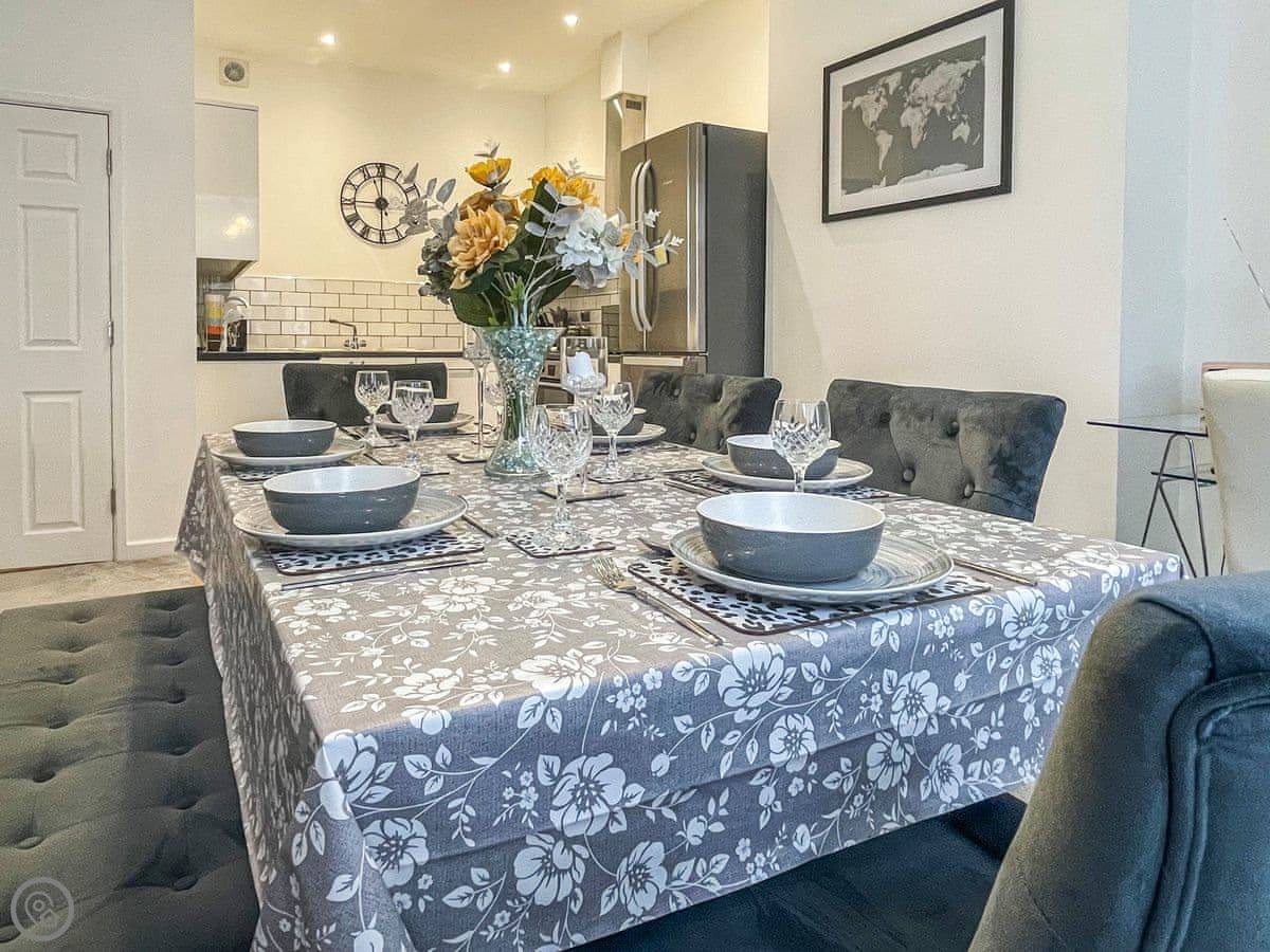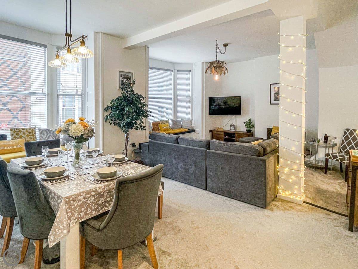 Welcome to The Tides, this stylish first floor apartment located approximately 100 yards from the famous Weymouth beach and Seafront. This spacious apartment is perfect for a holiday with family or friends, boosting two large bedrooms, one with super king size bed and en-suite shower room and bedroom two with a super king zip link bed . Take a relaxing soak in the sumptuous bathtub found in the family bathroom, letting the bubbles cleanse away your troubles as you get lost in your favourite book, or alternatively, wake up with a refreshing morning rinse in the spacious walk-in shower. Stepping up in to the large open-plan living space, this bright and airy but cosy space is the perfect spot to enjoy a meal at any time of the day with large bay windows letting in ample light and air. The kitchen is well equipped, and the dining room boast a large table for all the family, and a workstation to catch up on the email before a day on the beach and stepping into the living area where you will find a large Smart TV for them cosy nights cuddled up on the plush corner sofa.