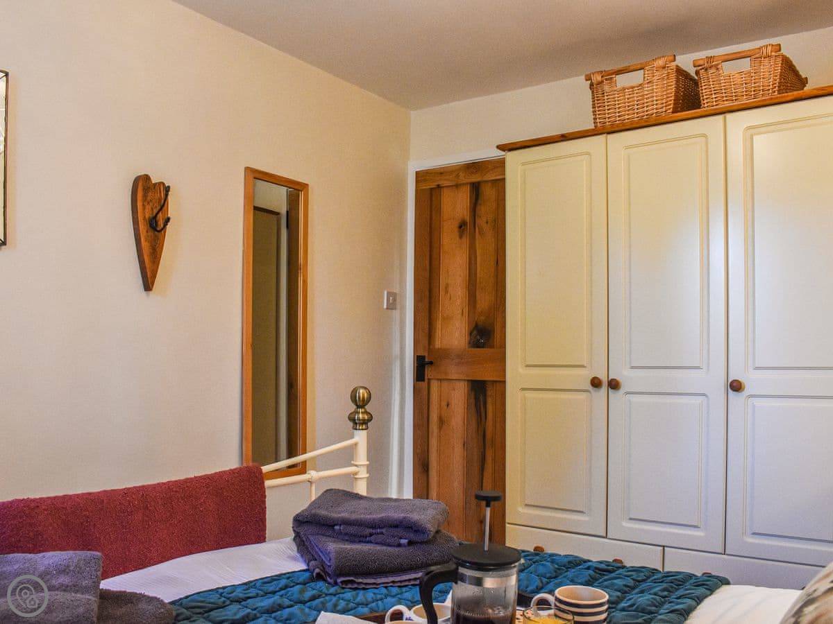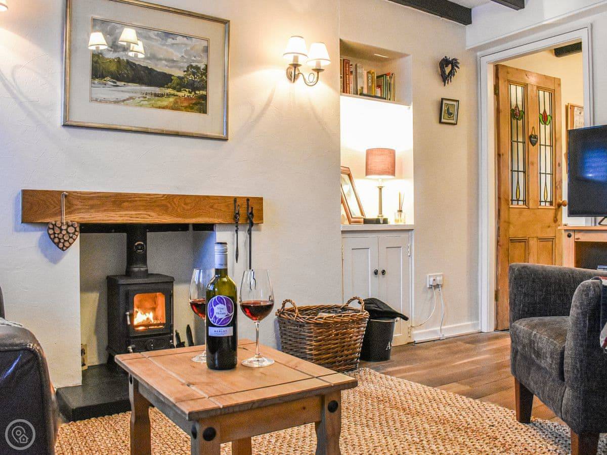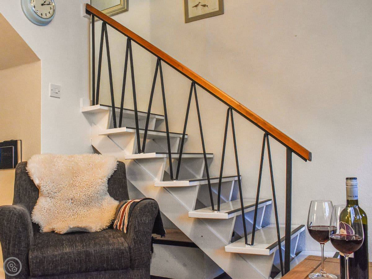 The cottage has one bedroom with a kingsize bed and one bathroom. It has a 4 Star rating. The kitchen is compact, but it has what you need. The living room is separate, with a small woodburning stove. The stairs are wooden and quite steep, as you'd expect.