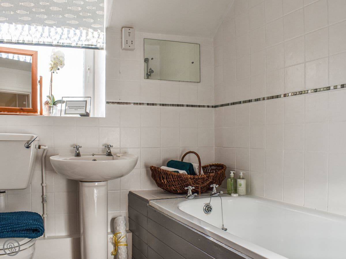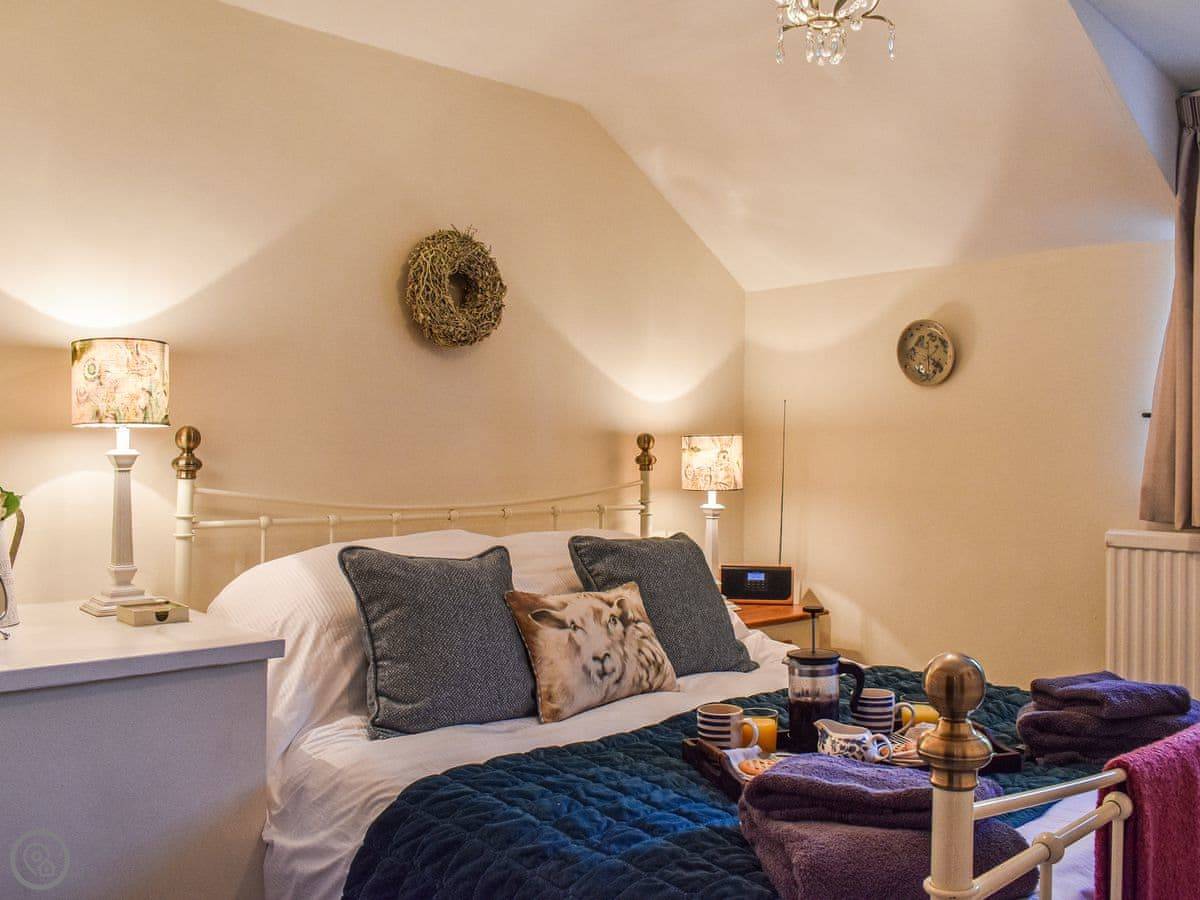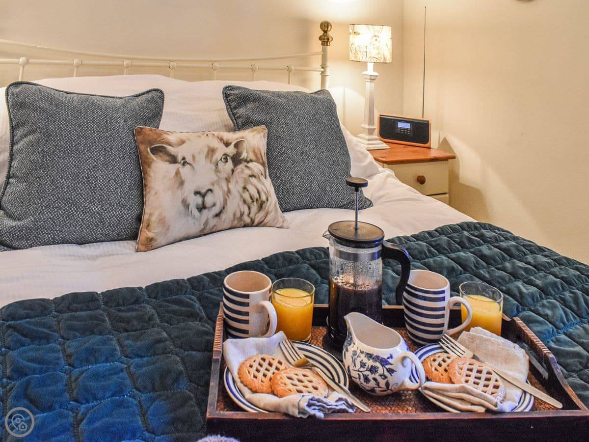 The cottage has one bedroom with a kingsize bed and one bathroom. It has a 4 Star rating. The kitchen is compact, but it has what you need. The living room is separate, with a small woodburning stove. The stairs are wooden and quite steep, as you'd expect.