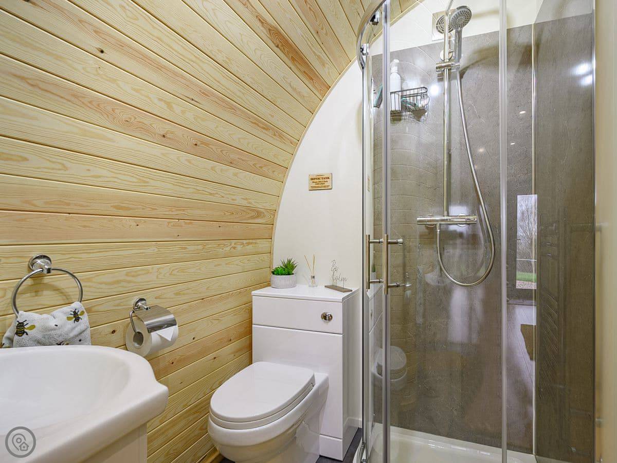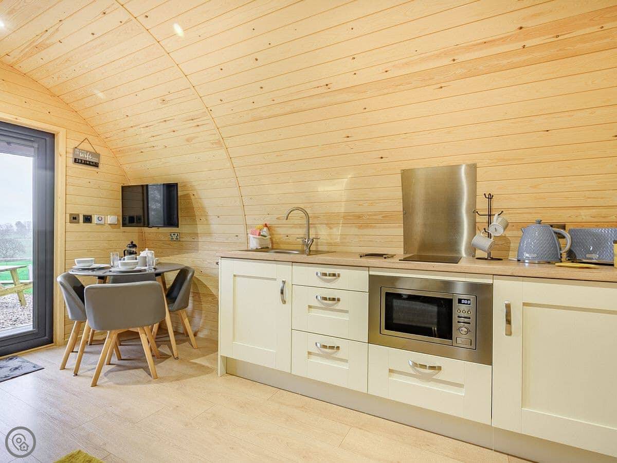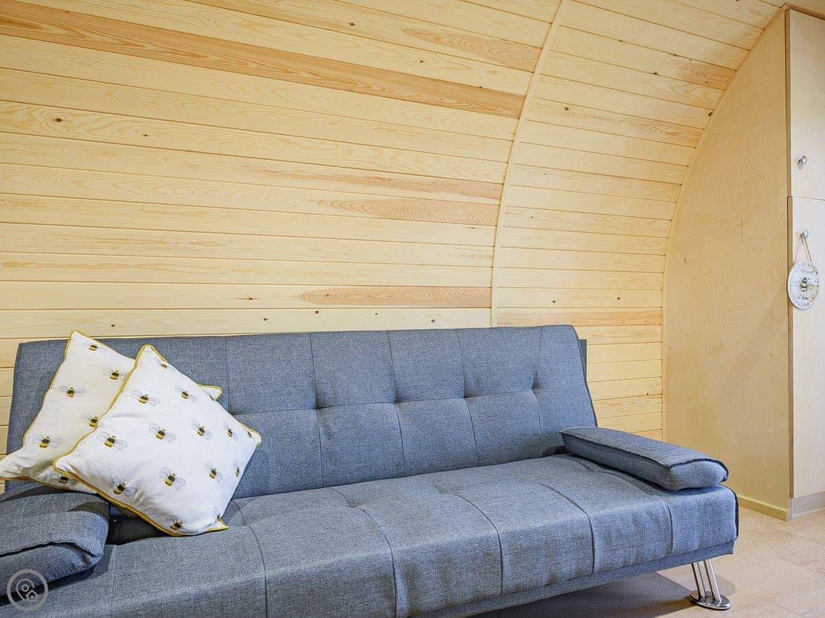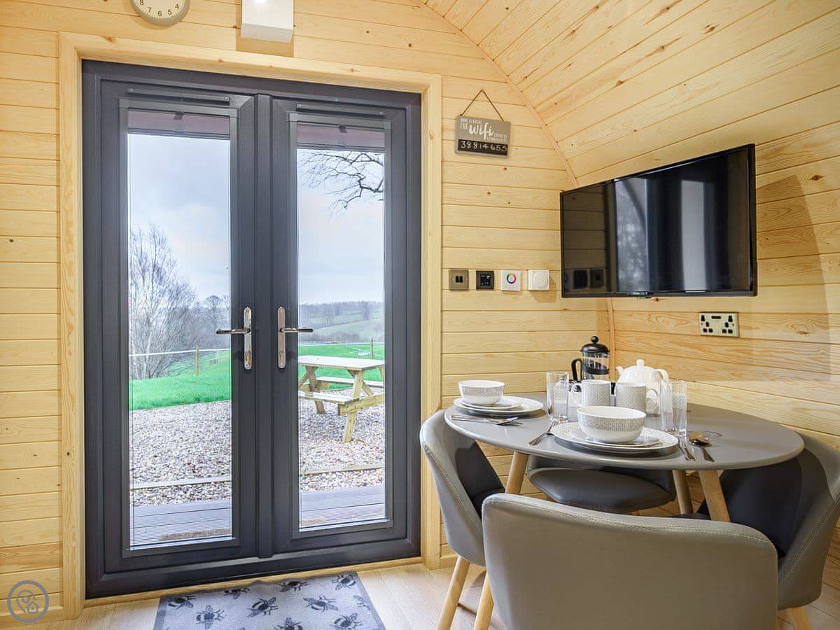 You're on a working farm. You'll see the animals and the general comings and goings. There are woods to walk in right from your door, and paths across the farm land. There's parking next to the pod.