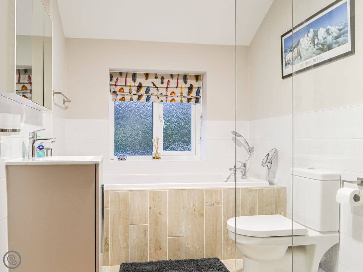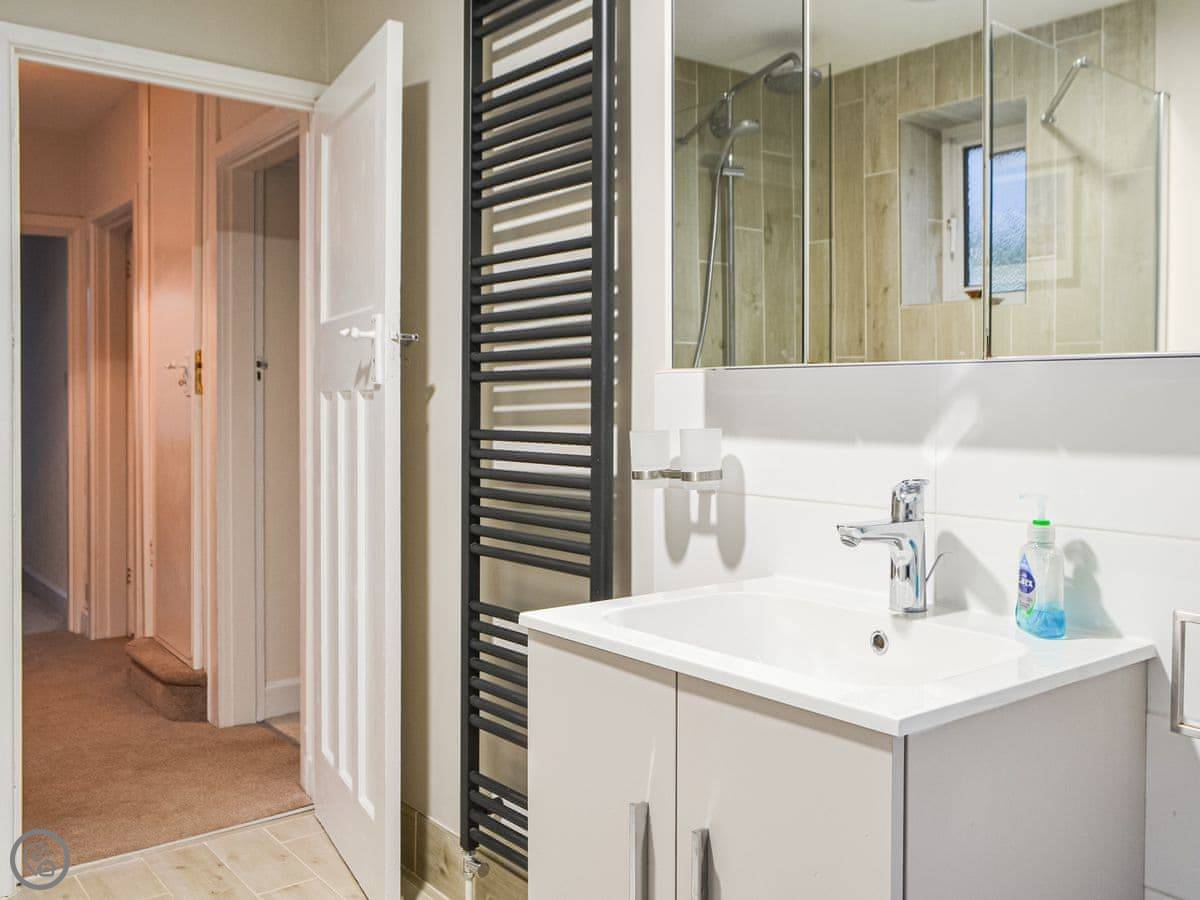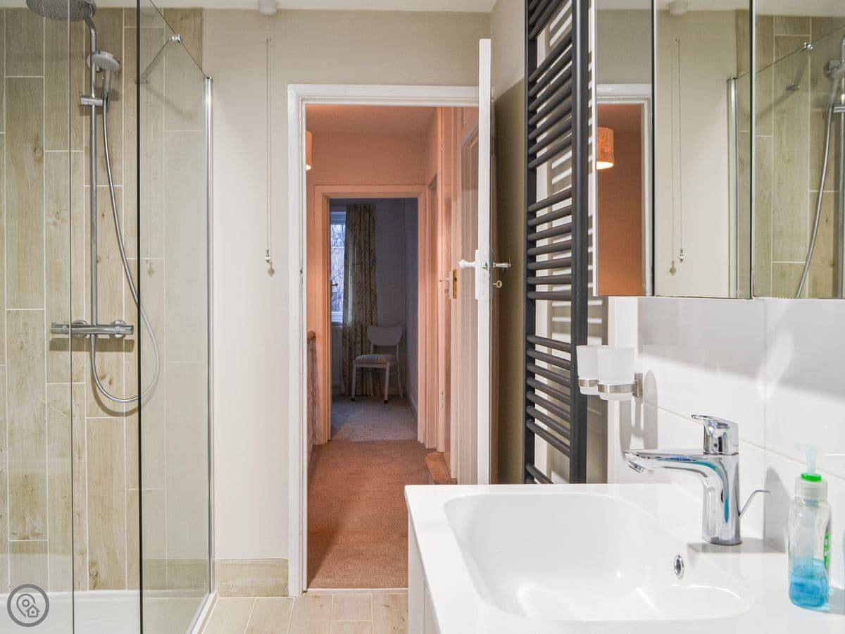 It sleeps five. Three bedrooms, one bathroom. There's a good shower and a deep bath. The stairs are a bit steep, like a lot of places round here.