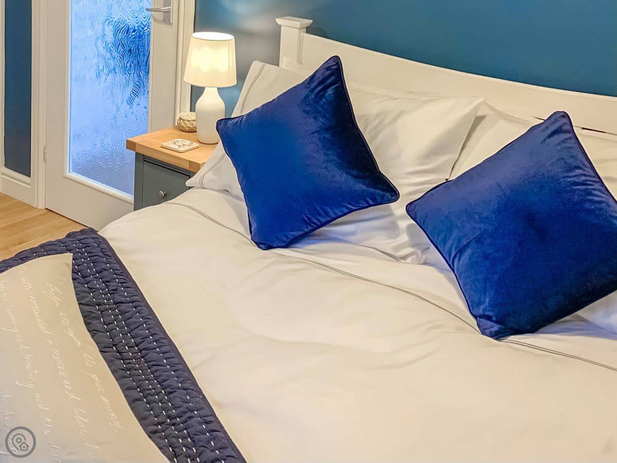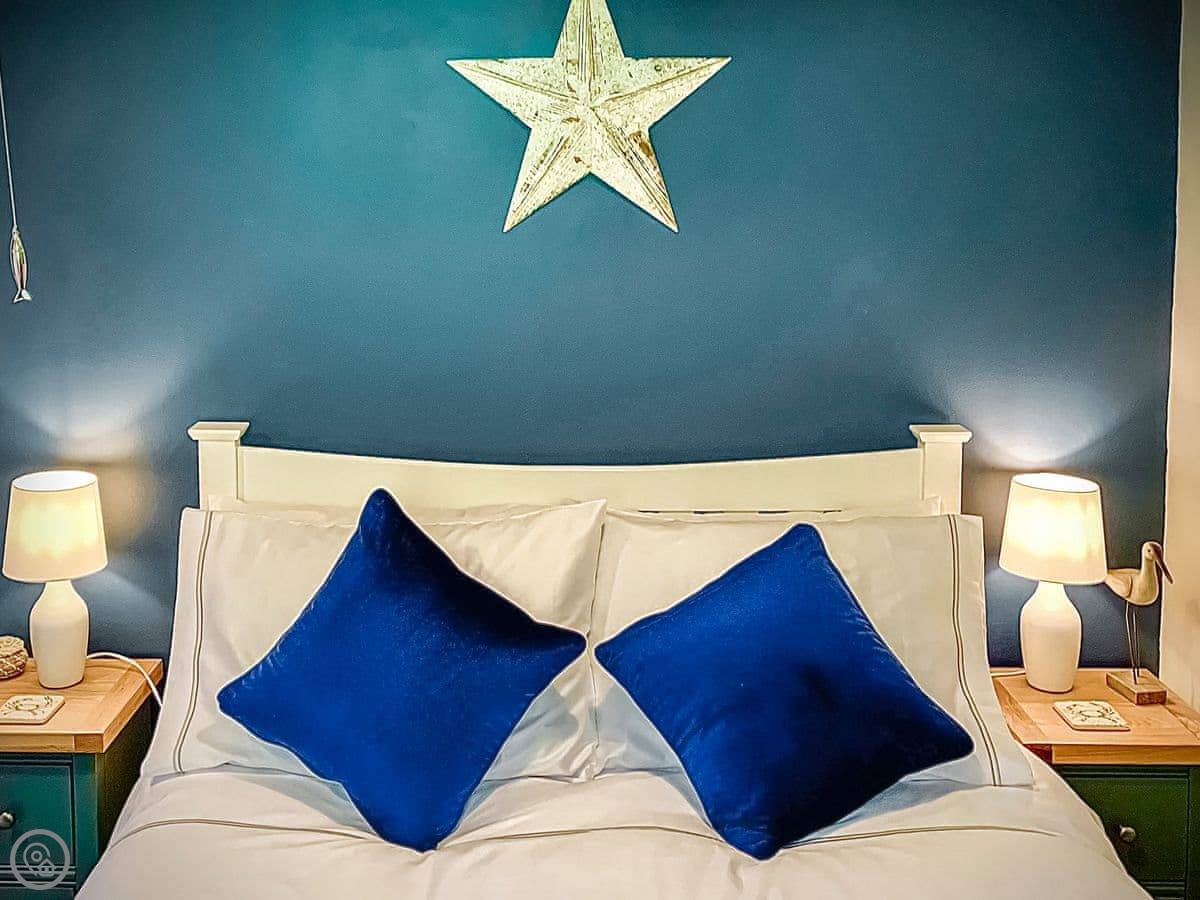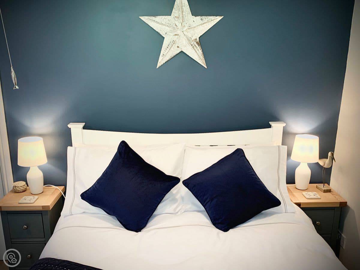 Evening Star was newly refurbished in 2021 and this year for 2022 we have installed smart new decking. It is perfect for al fresco dining, sipping a cheeky beer or chilled glass of wine while you gaze out to that glorious blue sea or look up to the inky dark skies at night on those warm summer’s evenings. The chalet has been thoughtfully decorated in stunning Farrow and Ball Stiffkey Blue and Strong White paint shades with a nod to coastal design.