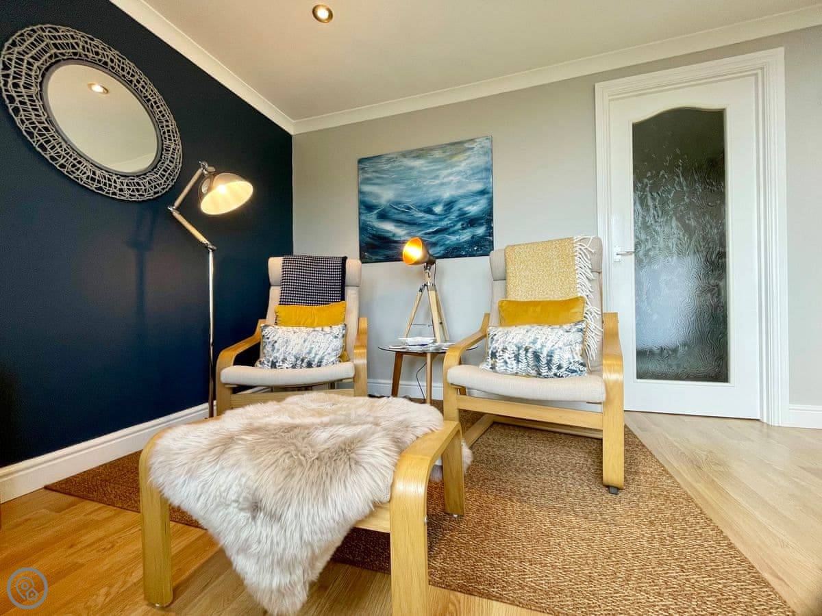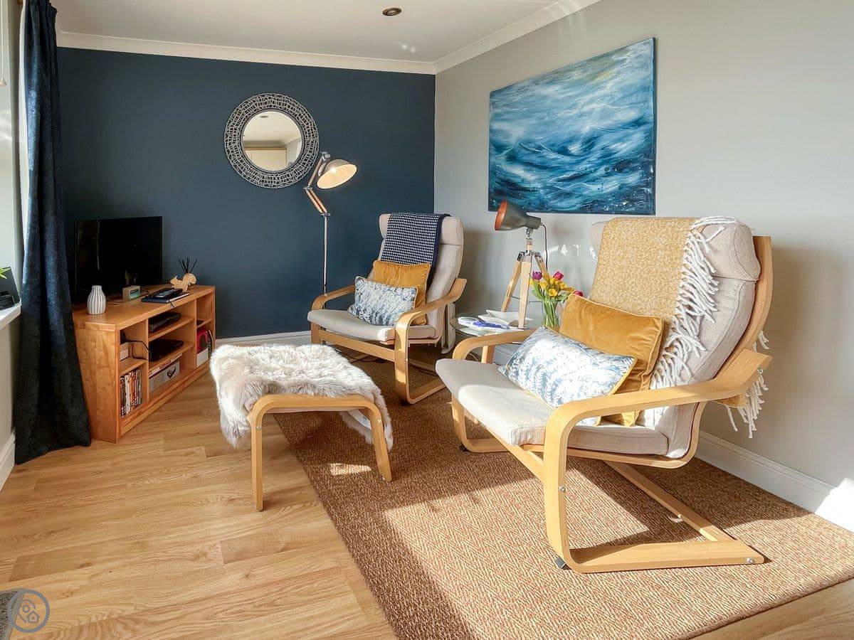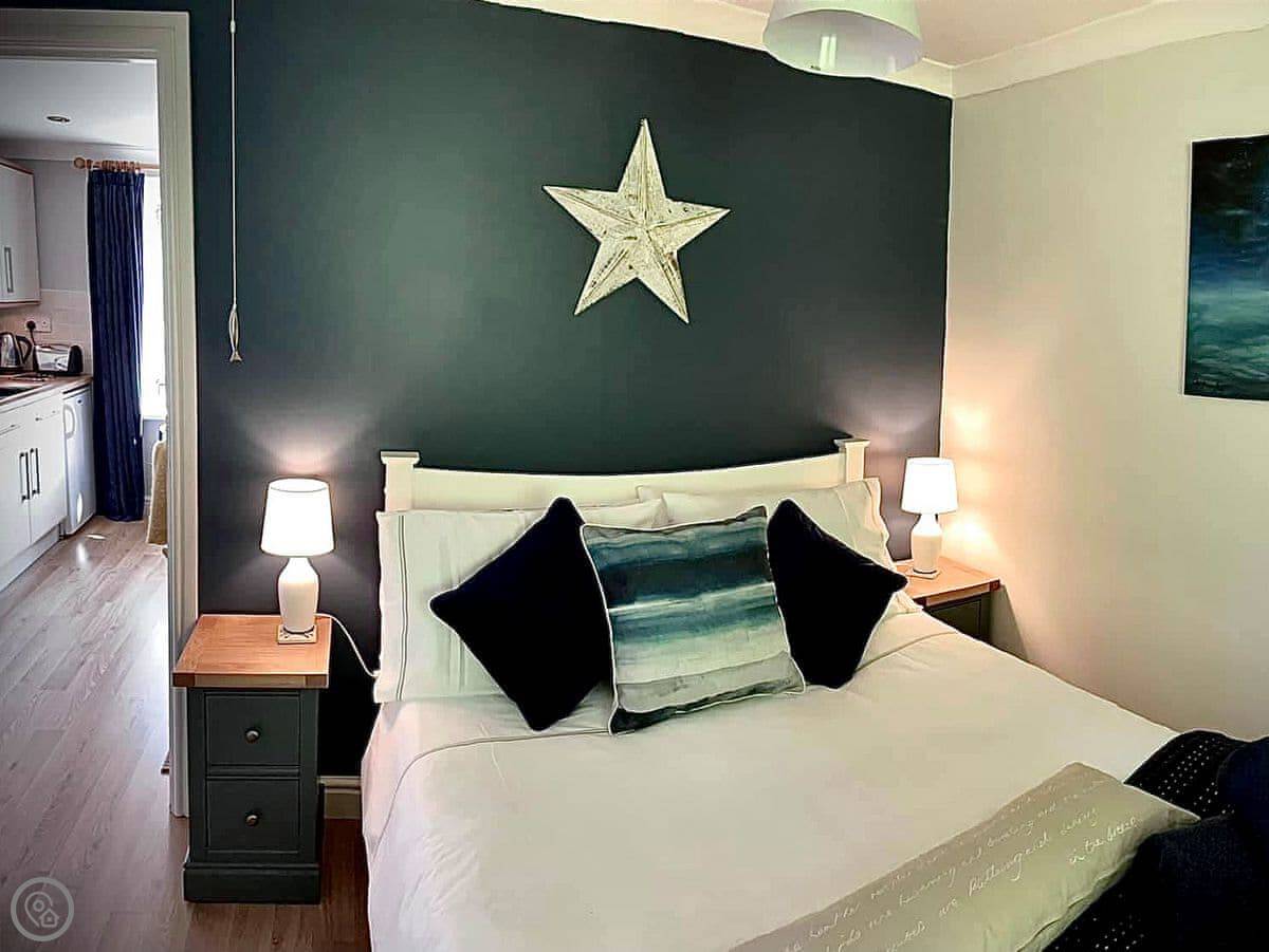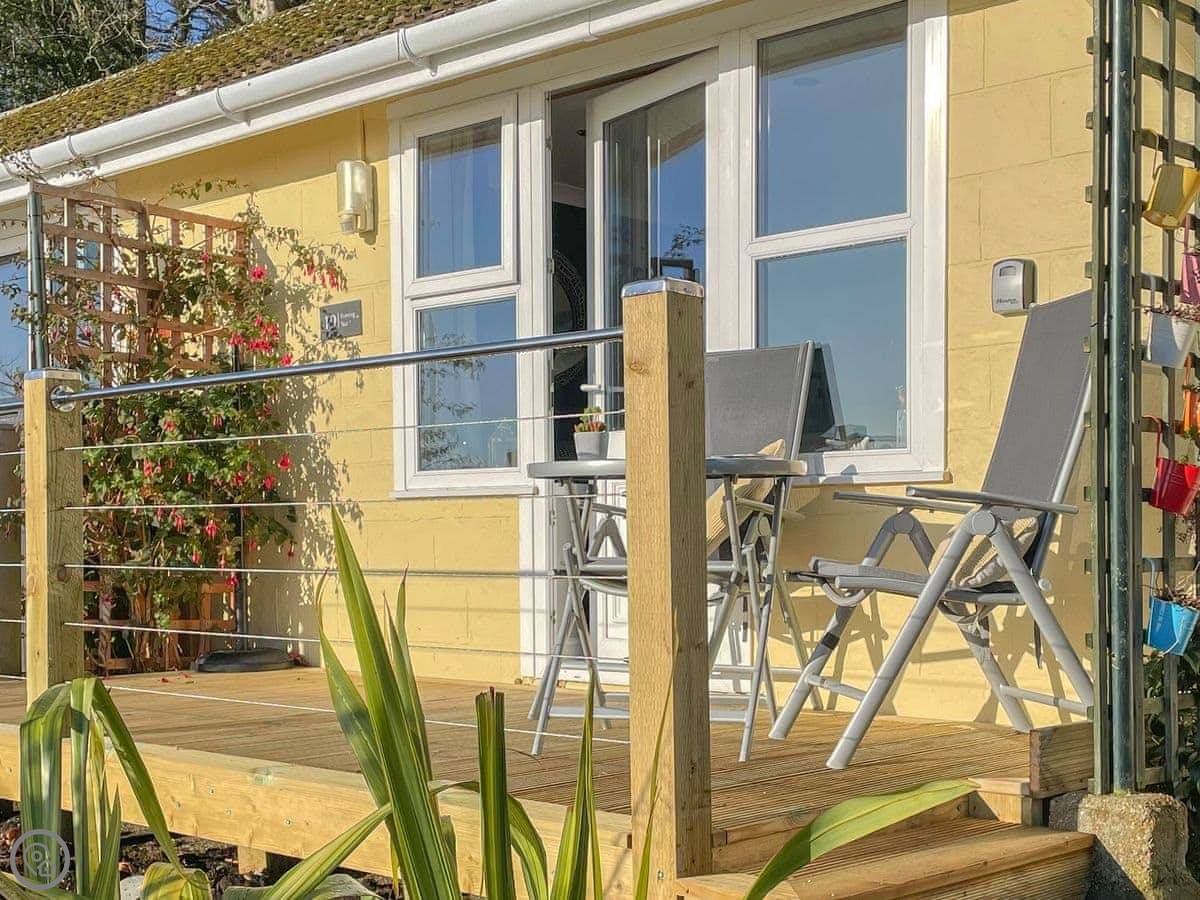 Evening Star was newly refurbished in 2021 and this year for 2022 we have installed smart new decking. It is perfect for al fresco dining, sipping a cheeky beer or chilled glass of wine while you gaze out to that glorious blue sea or look up to the inky dark skies at night on those warm summer’s evenings. The chalet has been thoughtfully decorated in stunning Farrow and Ball Stiffkey Blue and Strong White paint shades with a nod to coastal design.
