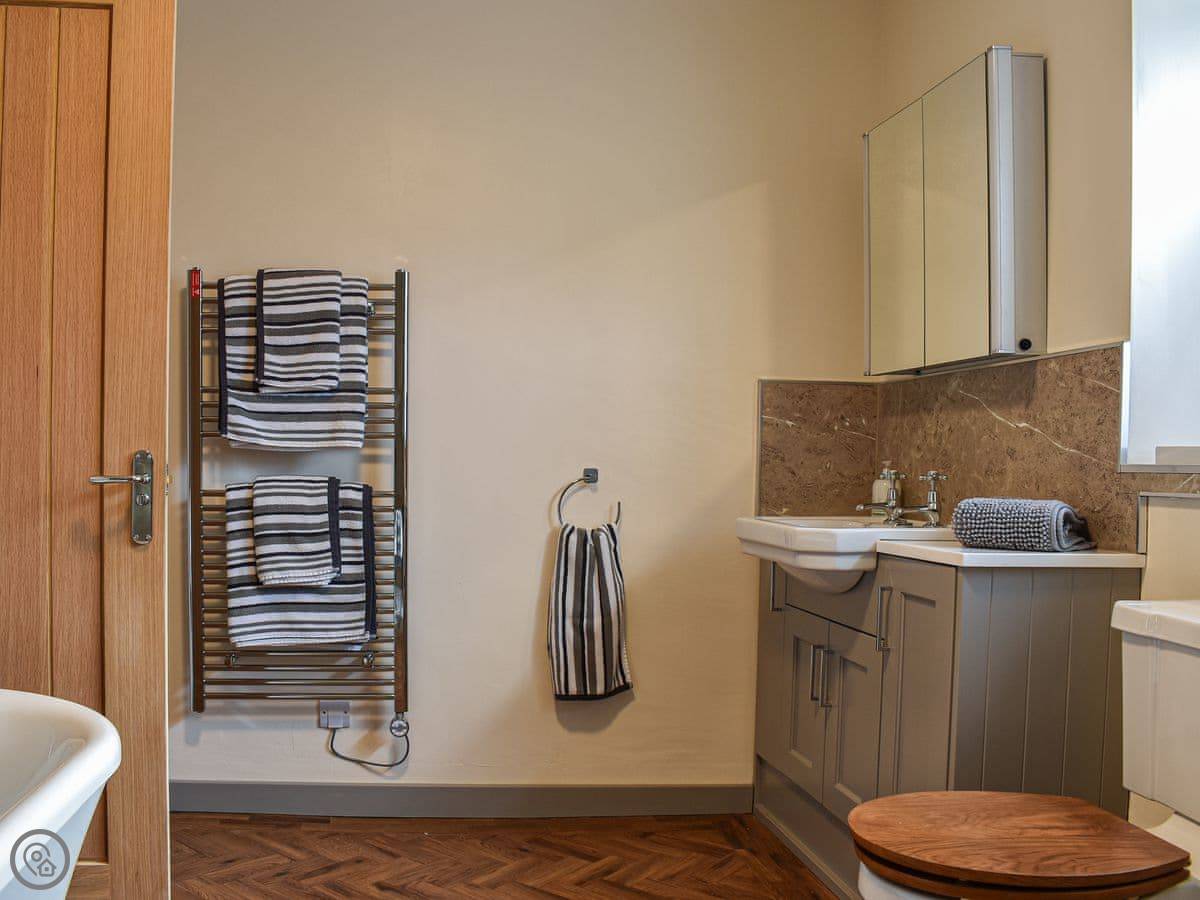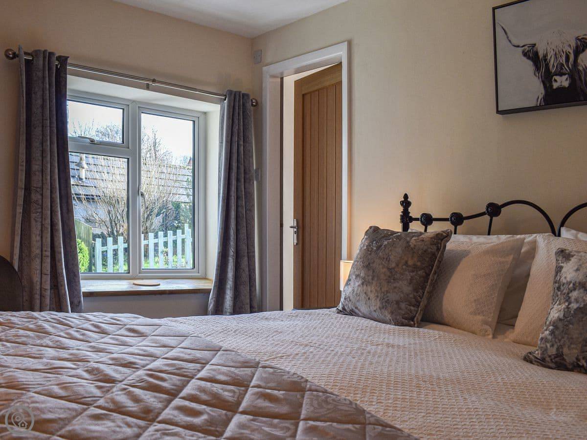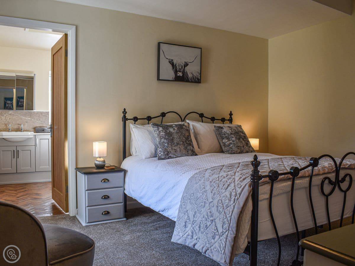 It sleeps six people. Three bedrooms, one bathroom upstairs and an ensuite bathroom off the main bedroom. It has a 4 Star rating. There's a wood burner in the living room. The stairs are normal.