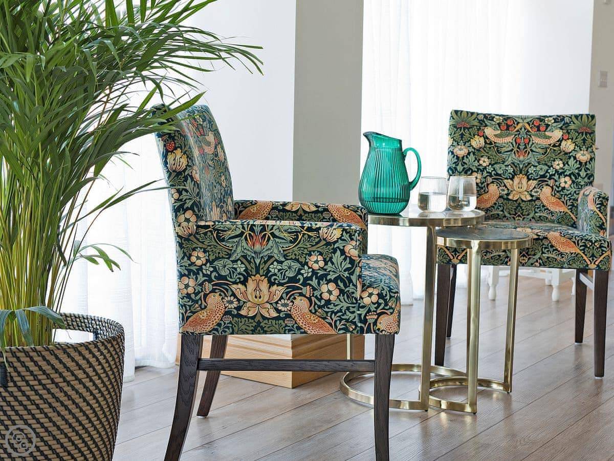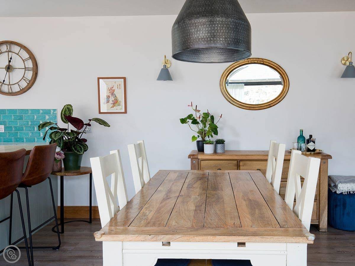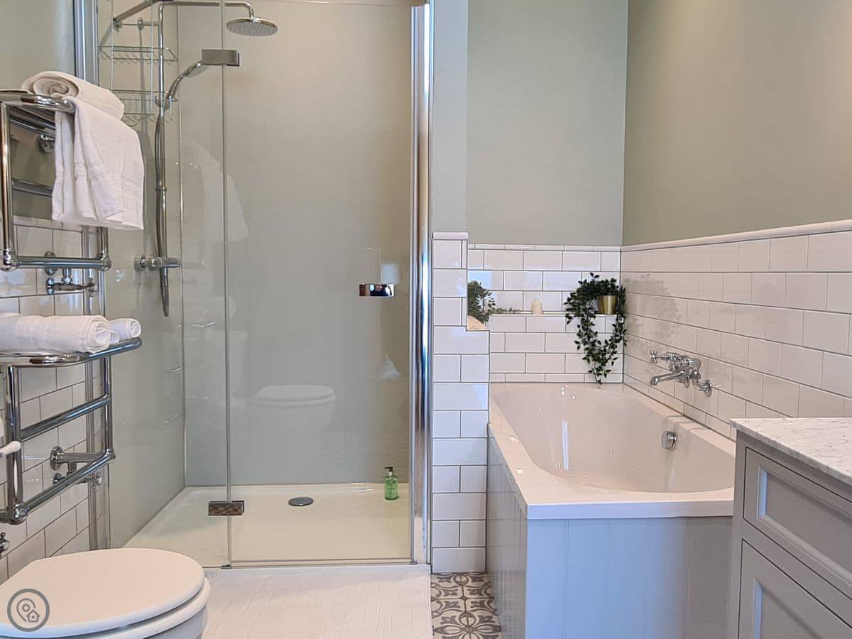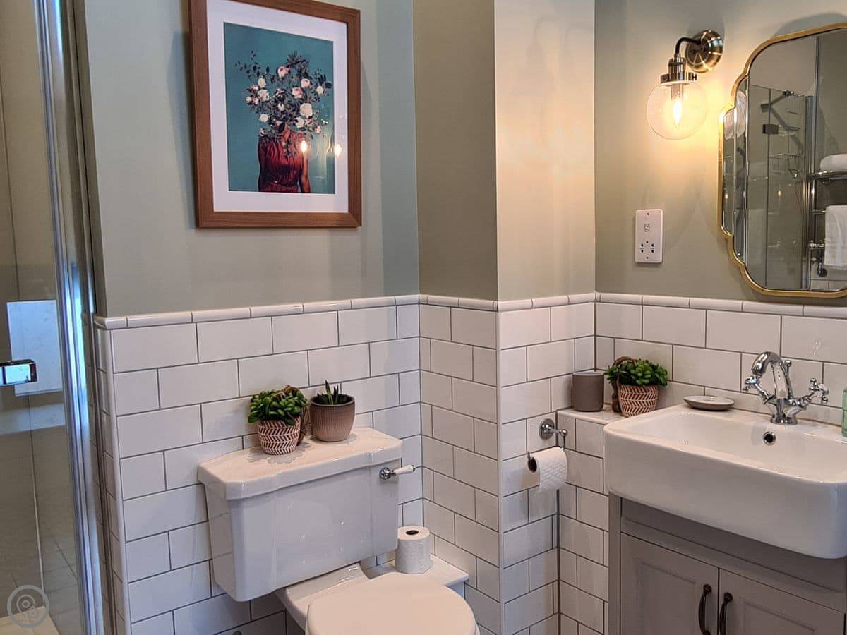 It sleeps four. Two bedrooms, both with super king beds you can split into twins if you prefer. Each bedroom has its own bathroom, one with a bath, one with a shower. It's got a 4 Star rating. It's comfortable, with things like a wood burner and underfloor heating.