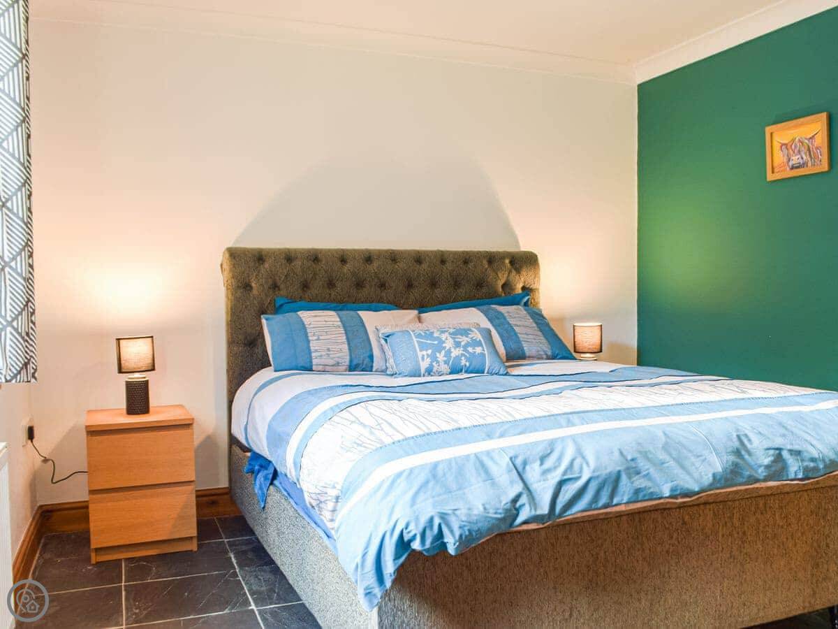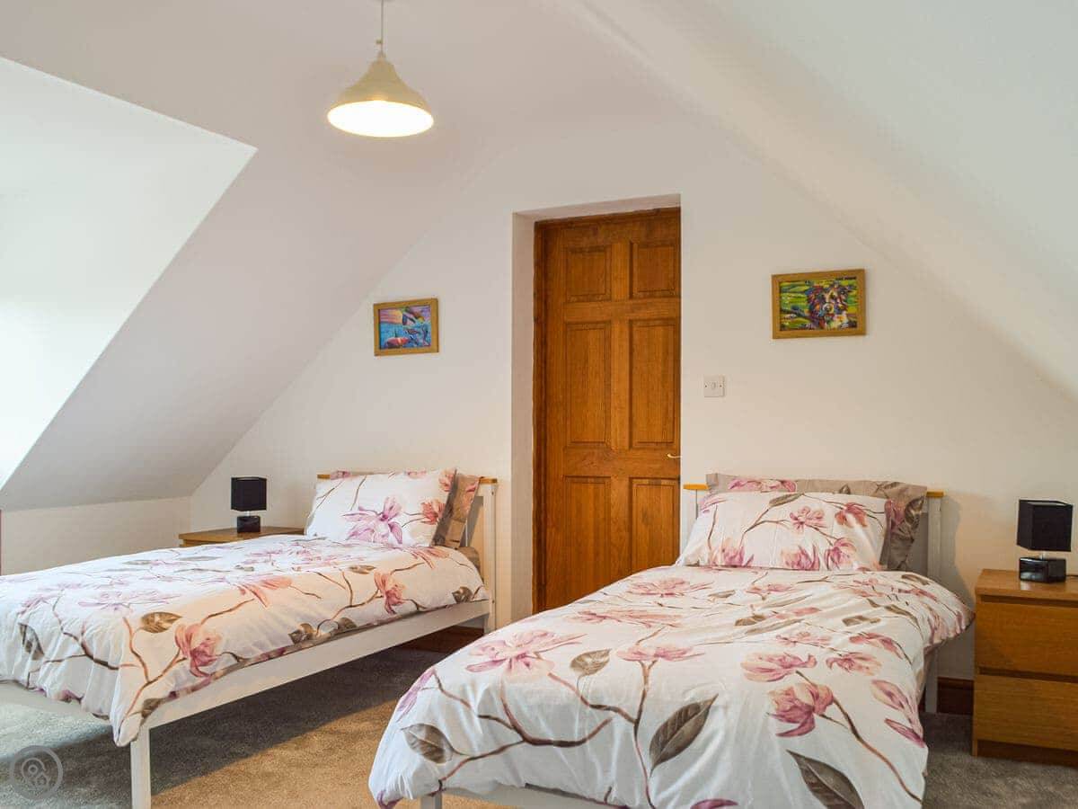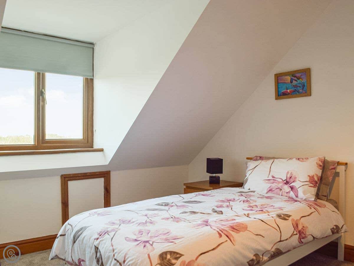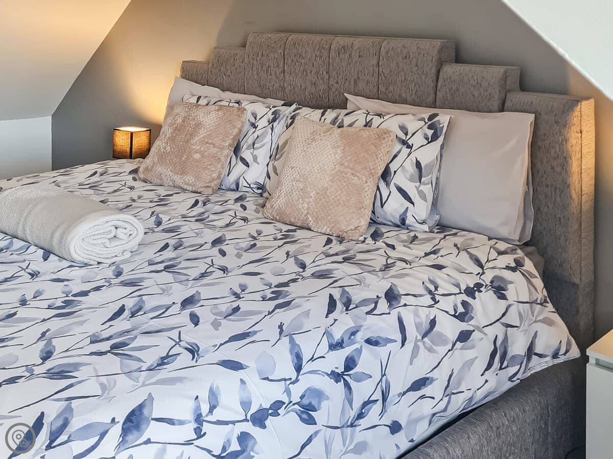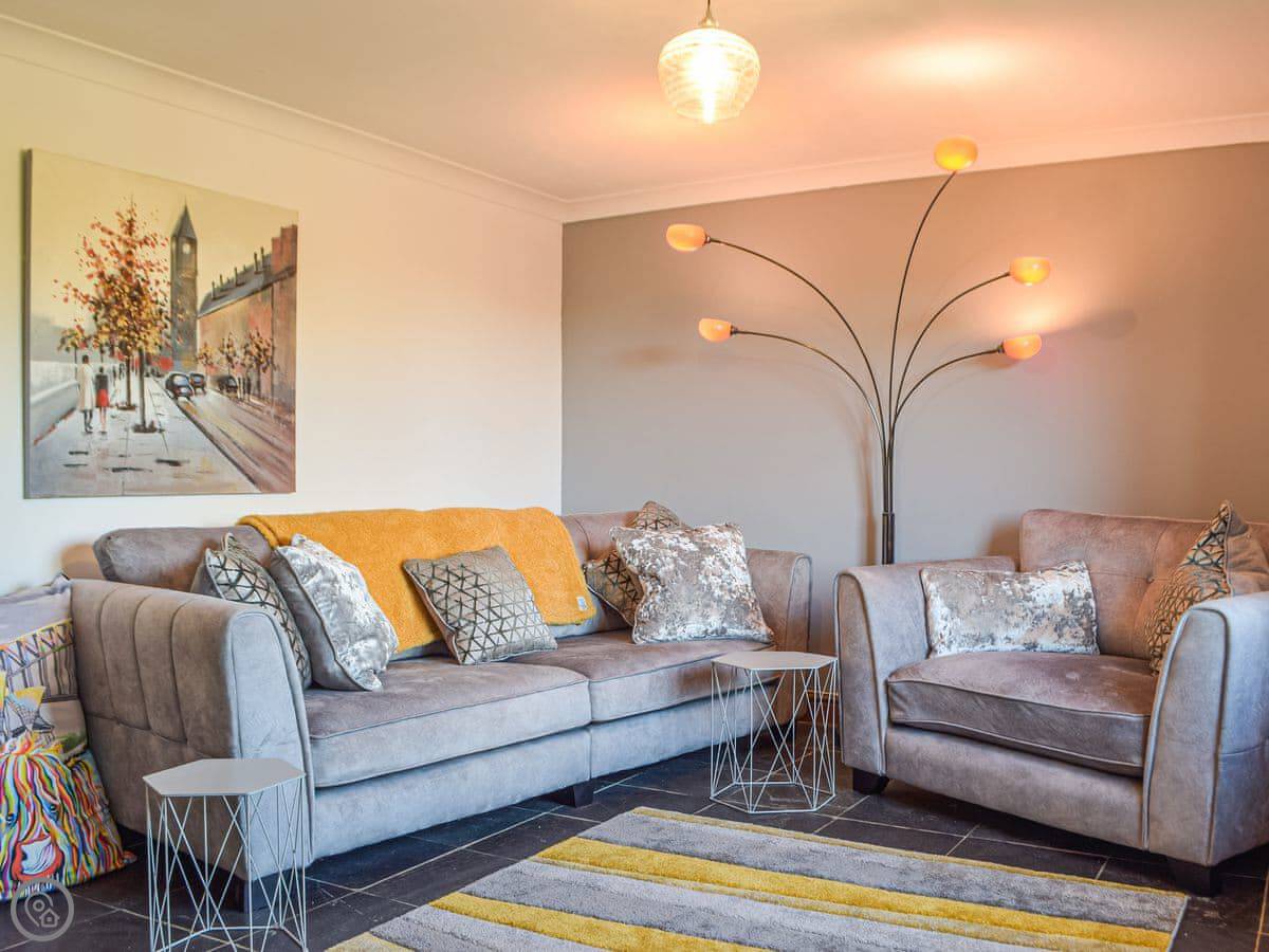 It sleeps six people. Three bedrooms, three bathrooms. Two of the bedrooms are upstairs and have en-suites. There's a third bedroom on the ground floor. It's got a 4 Star rating, so it's comfortable and has everything you'd need.