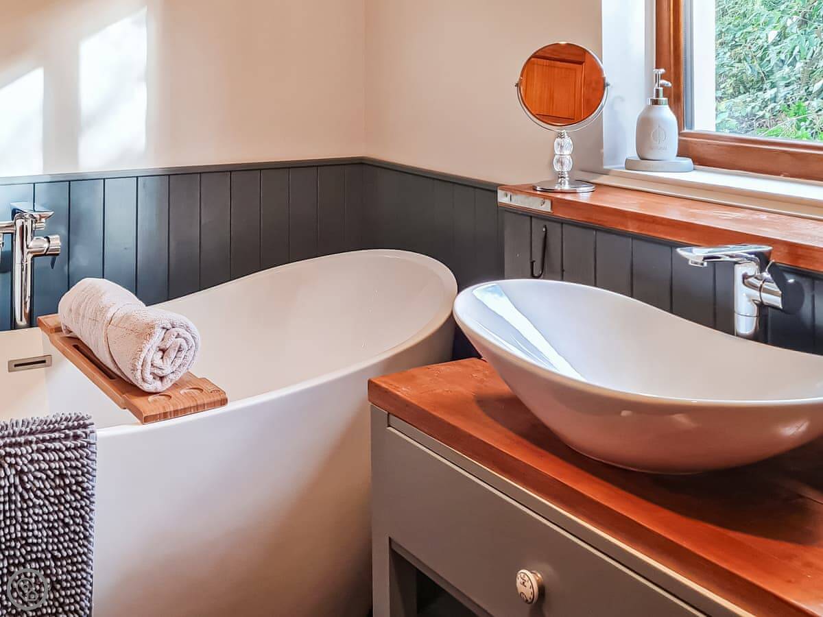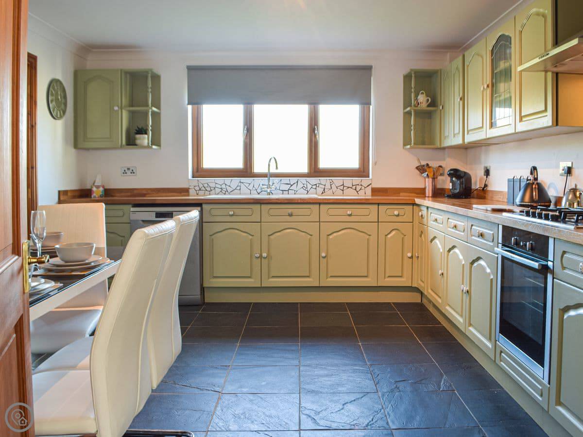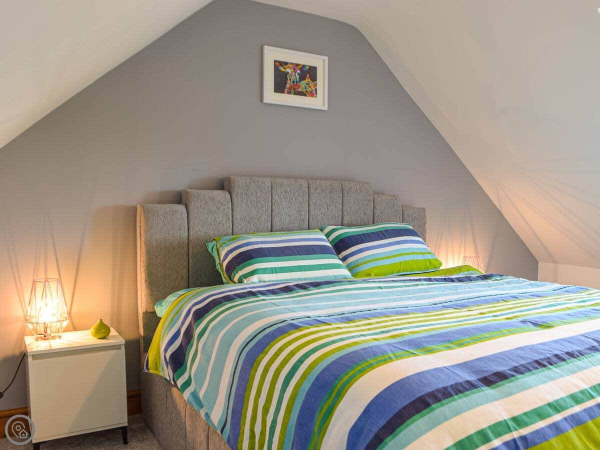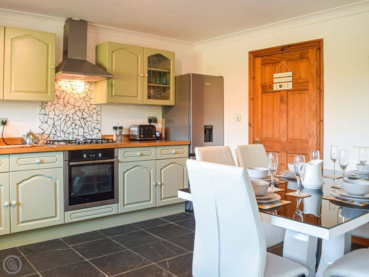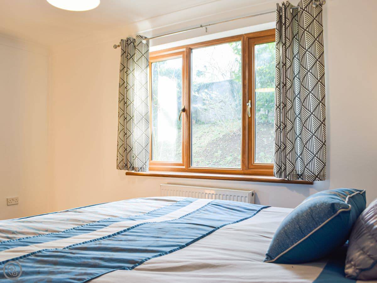 It sleeps six people. Three bedrooms, three bathrooms. Two of the bedrooms are upstairs and have en-suites. There's a third bedroom on the ground floor. It's got a 4 Star rating, so it's comfortable and has everything you'd need.