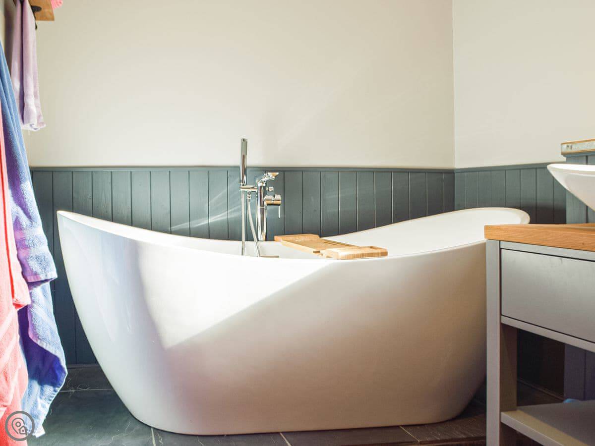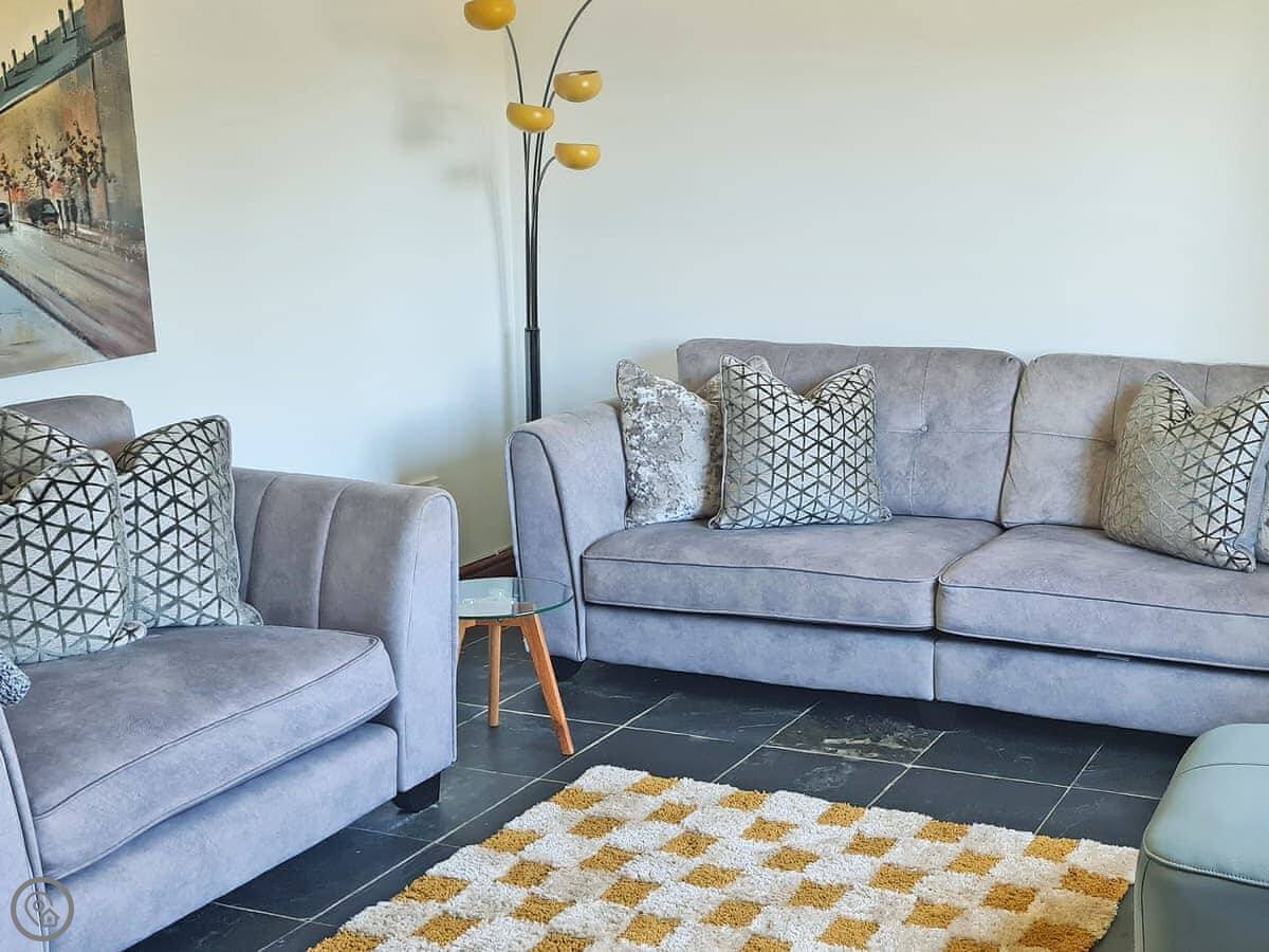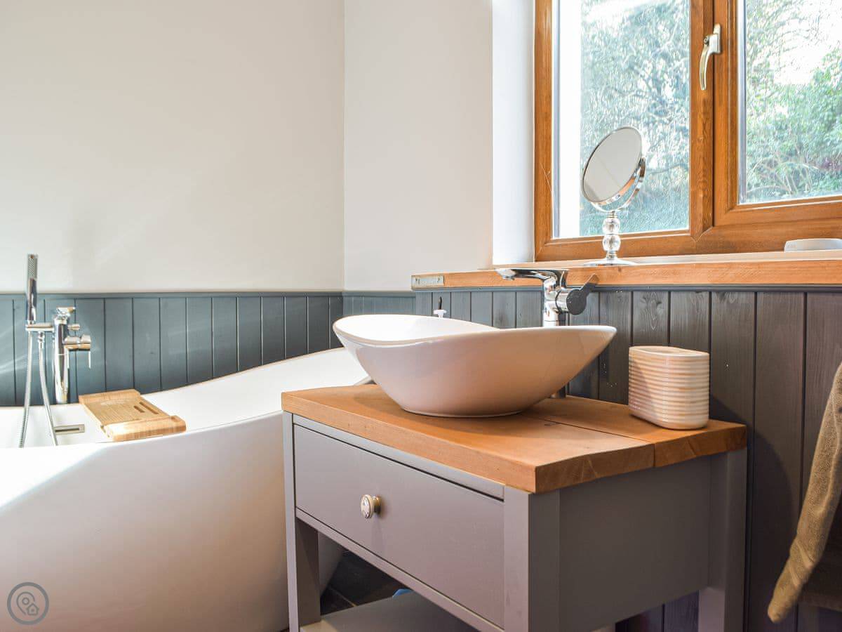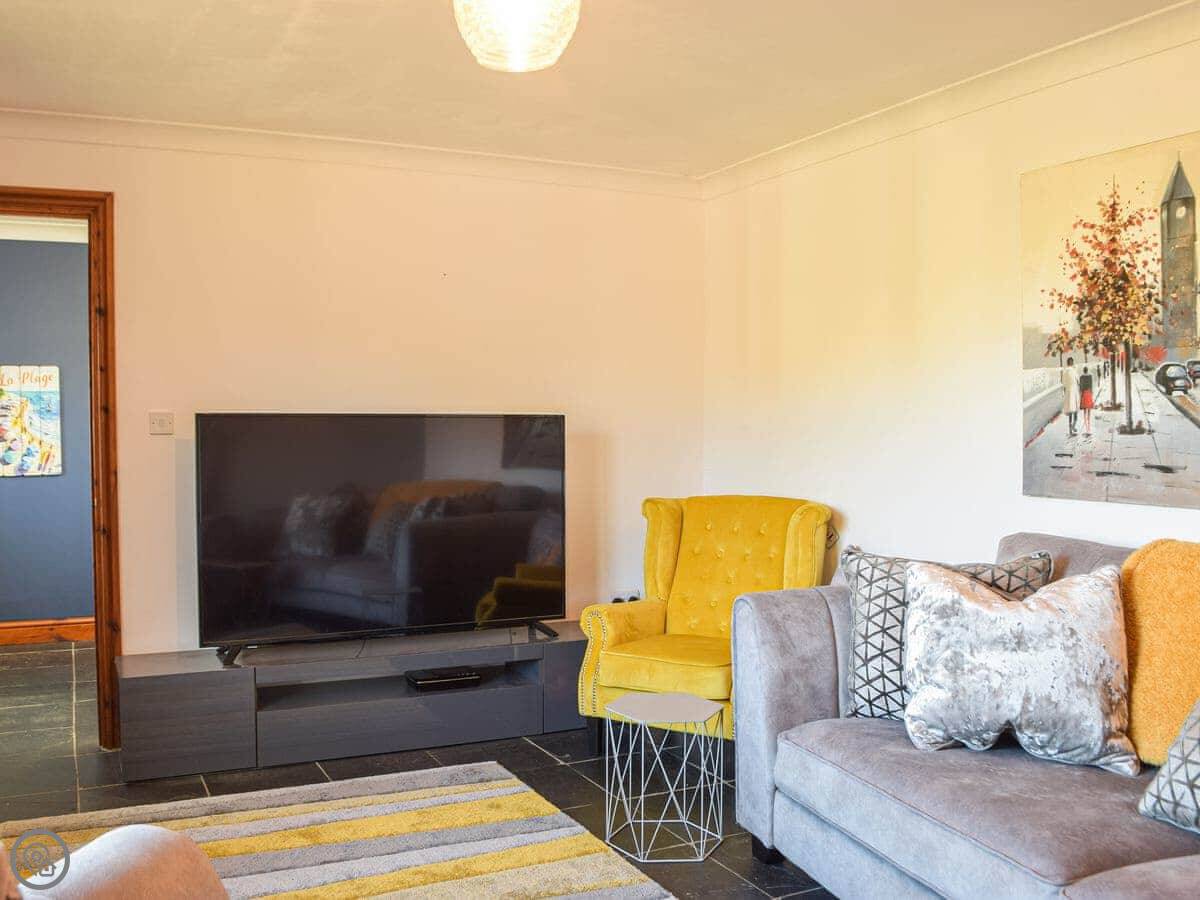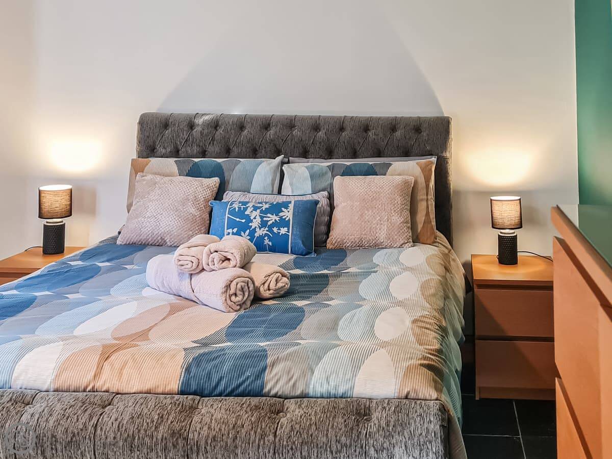 It sleeps six people. Three bedrooms, three bathrooms. Two of the bedrooms are upstairs and have en-suites. There's a third bedroom on the ground floor. It's got a 4 Star rating, so it's comfortable and has everything you'd need.