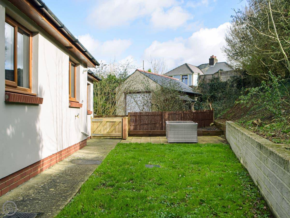 This is Ty'n-Y-Canol, in Johnston. It's a detached house on a quiet cul-de-sac with three neighbours. You get the garden to yourselves. It looks out over a small pond where ducks sometimes come.