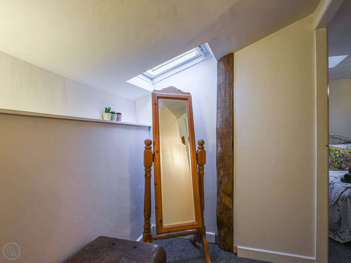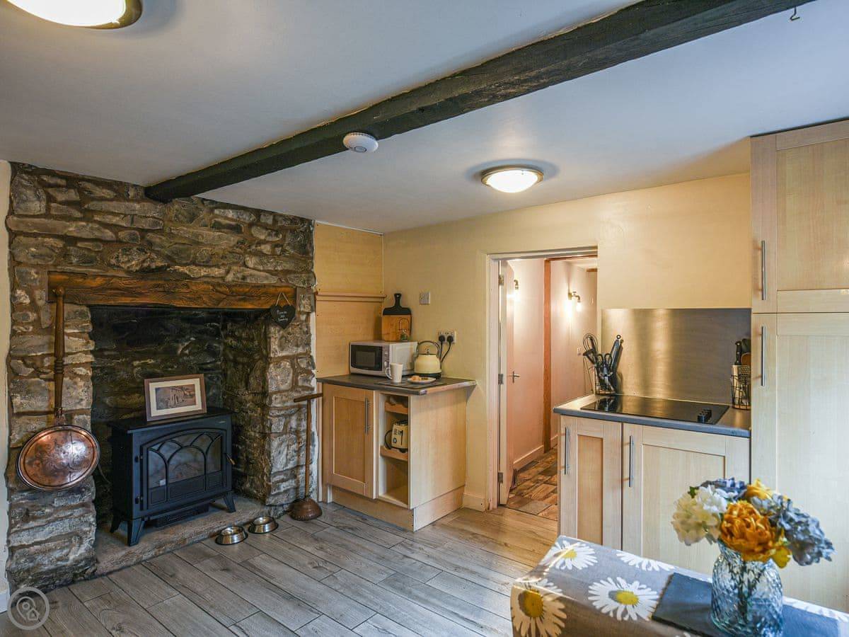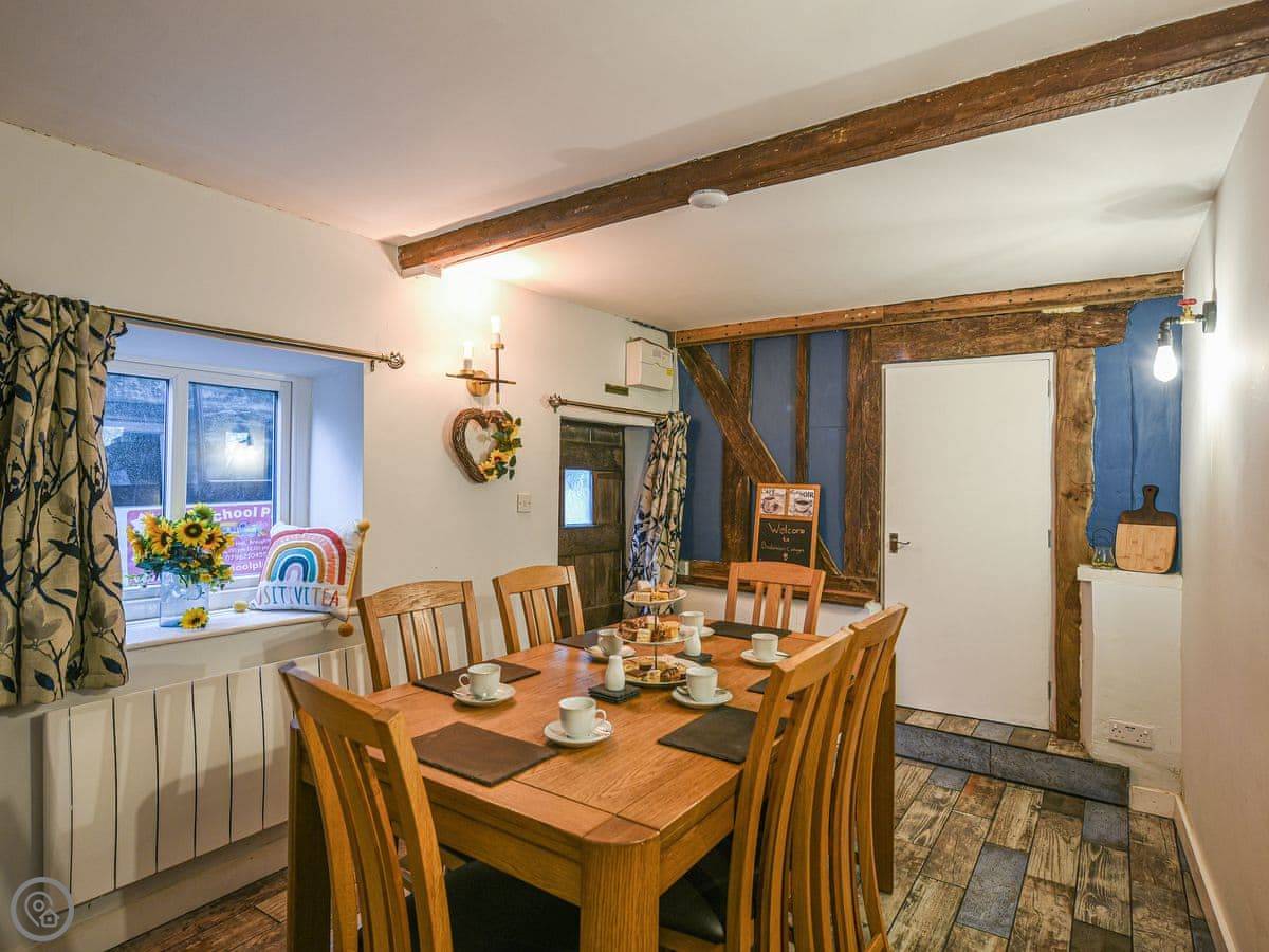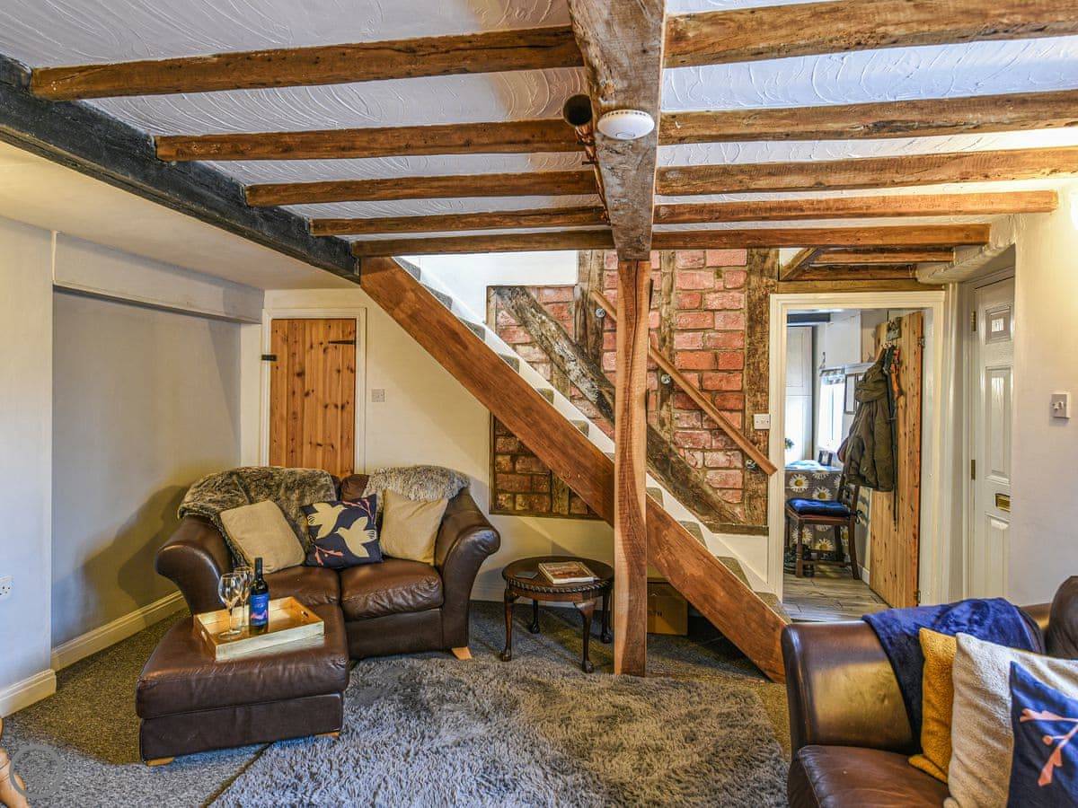 The kitchen has what you need, including a coffee machine. The dining table fits six. There are two staircases, which is a bit unusual. One from the lounge, one from near the kitchen. They're both normal cottage stairs.
