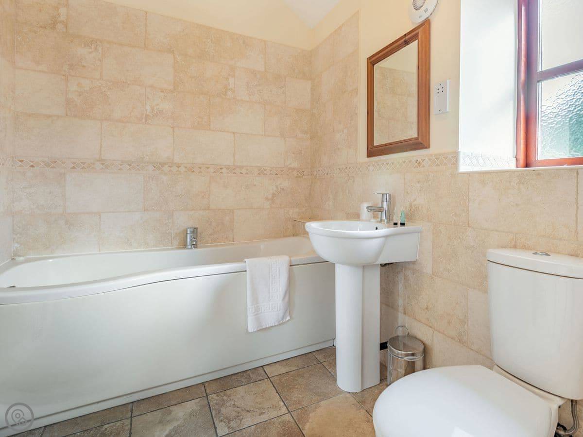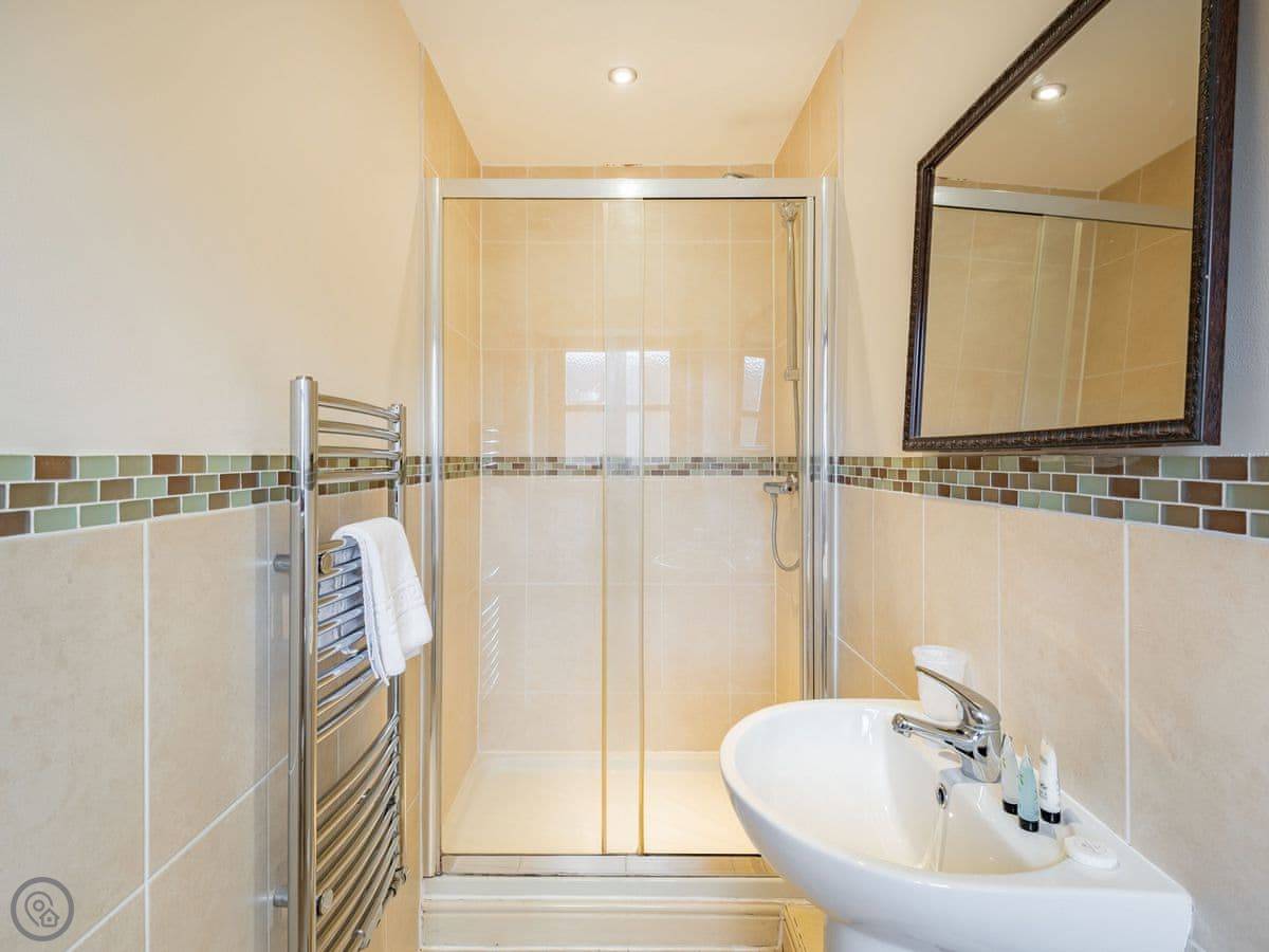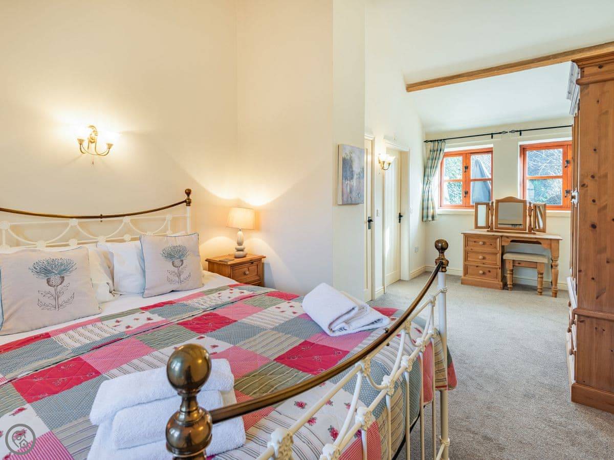 It sleeps four in two bedrooms. Both have their own bathrooms. One has a bath, the other a shower. There's high ceilings, old beams and brickwork. It's got a 4 Star rating.