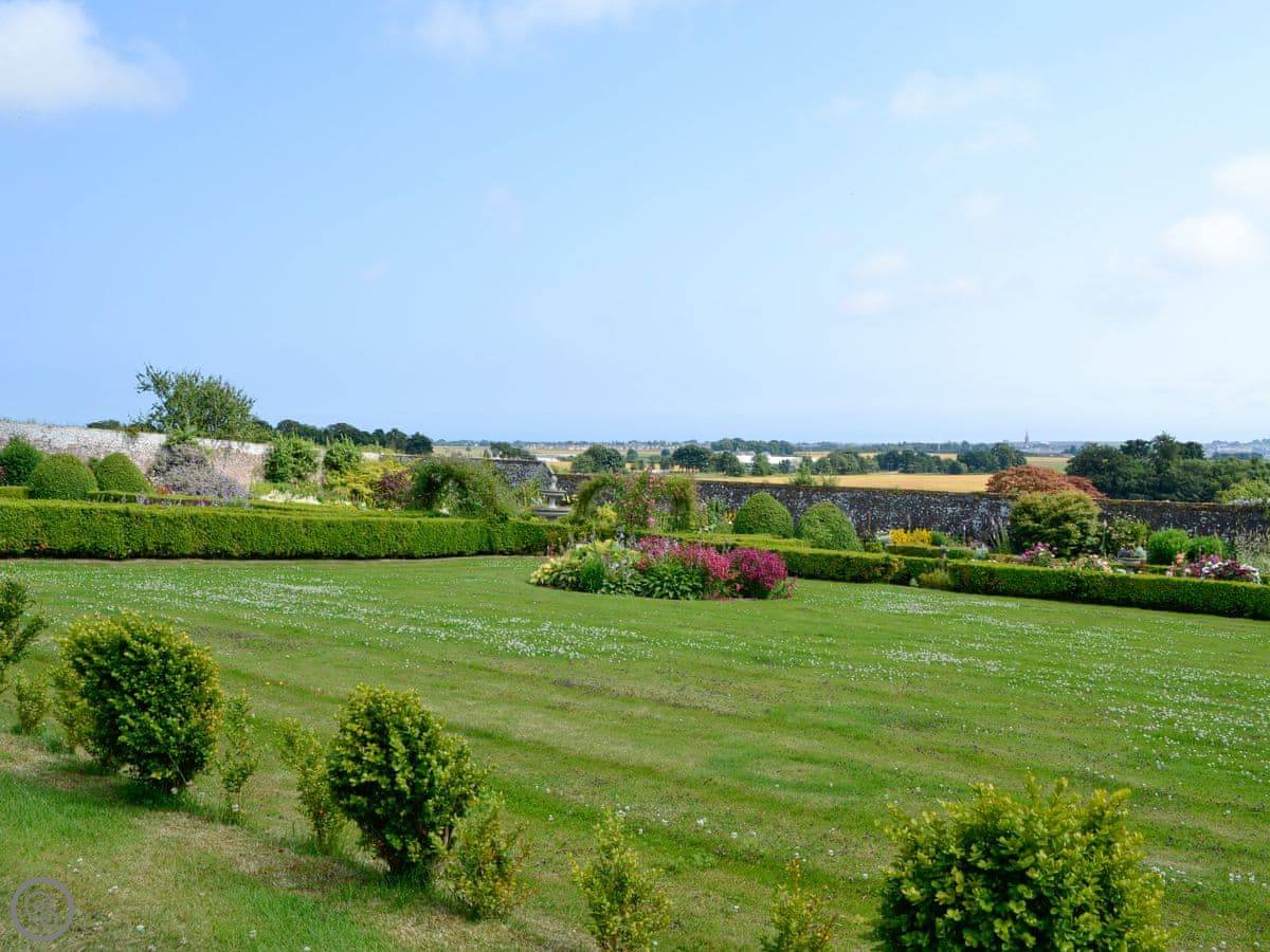 Inside, the spacious living area has a very comfortable sofa as well as two revolving easy chairs, a well-equipped kitchen area with gas cooker, fridge/freezer and microwave and, three steps up from the living room is the bedroom with kingsize bed, and shower room. There is a flyscreen door which enable you to enjoy warm evenings and days without unwelcome guests and the owners have put up a squirrel box right outside which is frequented by the native red squirrels, so you should have plenty of close up photo opportunities of these charming creatures. The lodge is so named not because of its design but because in Autumn the Basin sees thousands of pink footed geese flocking there to roost; the sight of them coming in is truly one of natures spectacles and guests will get a first class view. Guests also have the freedom to visit the Gardens here at Langley Park, open to visitors during the day . The gardens are a labour of love by the owners who have restored, since 2001, what was an overgrown wilderness into a thing of beauty; there are four walled gardens, each one painstakingly created in a relaxed, semi-formal style and 27 acres incorporating a wildlife and flower meadow, really enhancing the biodiversity – you will spot roe deer, butterflies, squirrels and many species of birds as you meander through the mown paths.