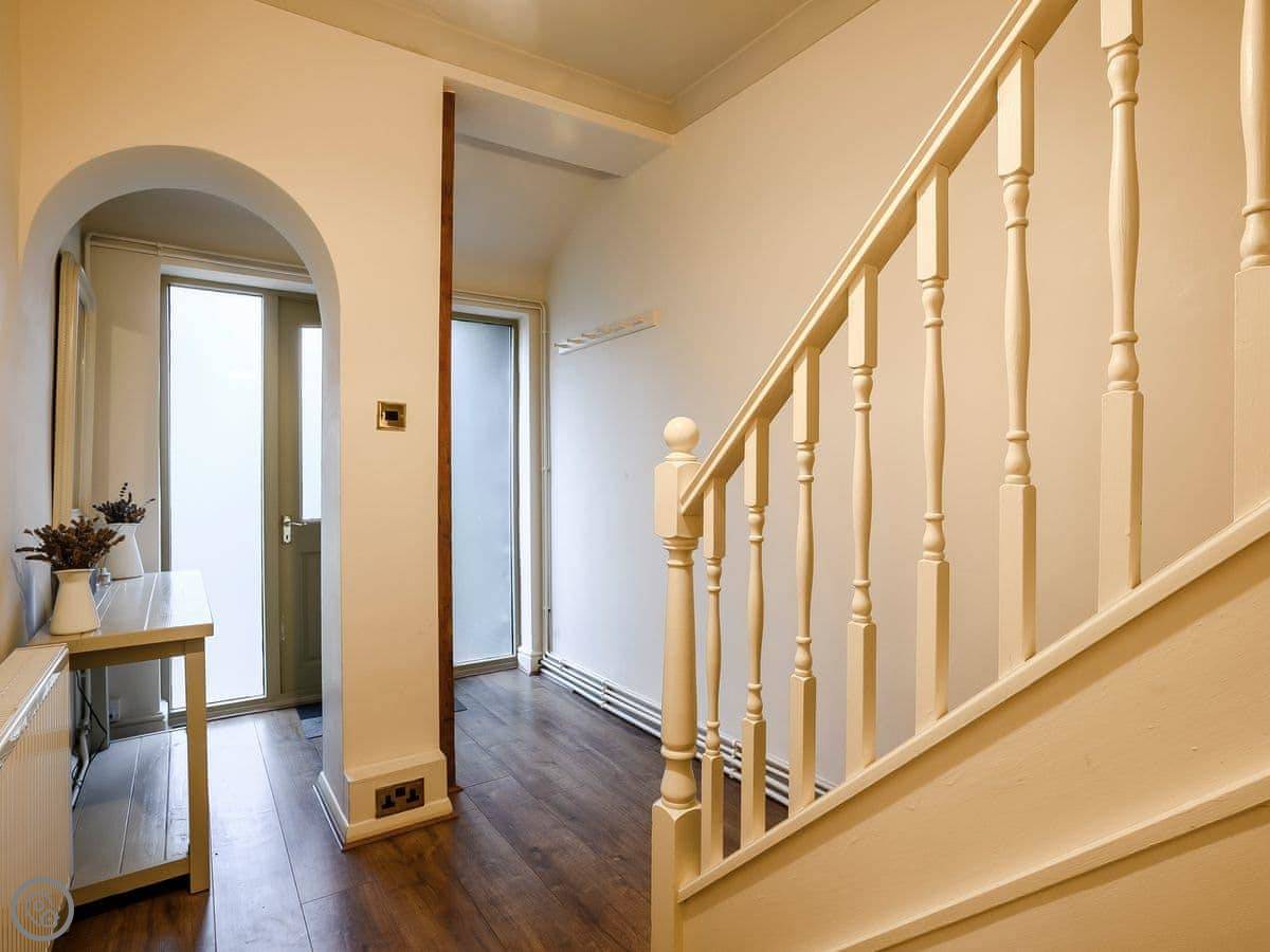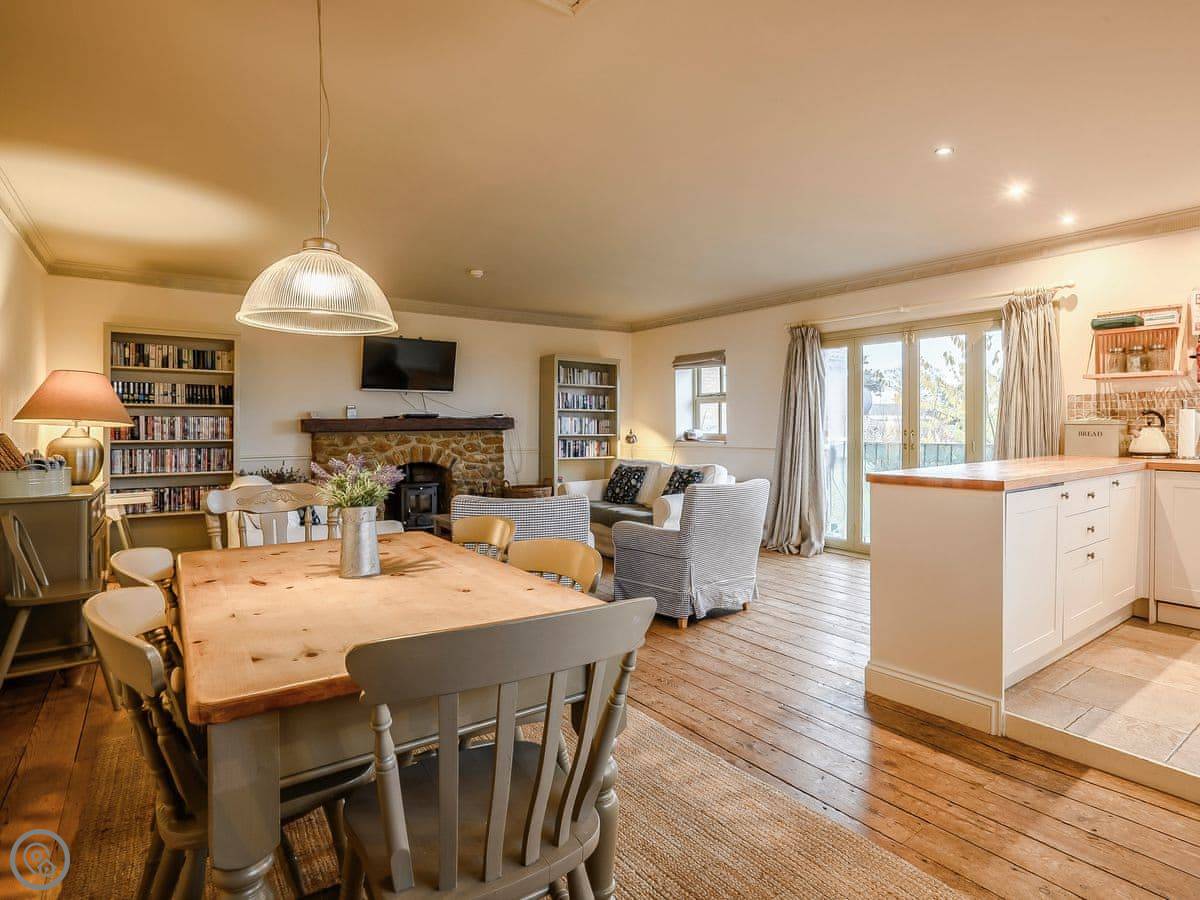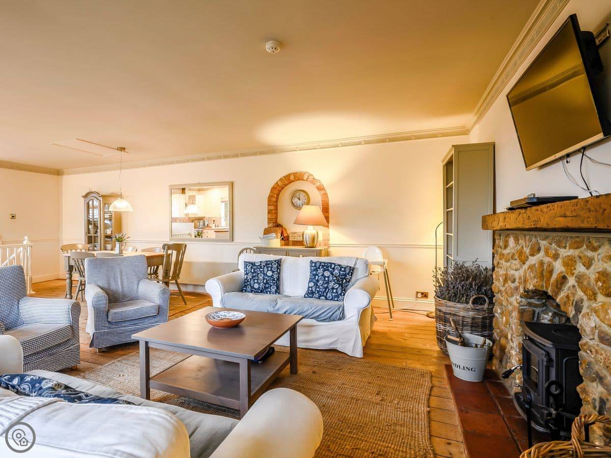 The house is rated 4 Star. It's comfortable and well-furnished, with stuff like a dishwasher, washing machine, and a wood burner. Bedding and towels are included. You can bring two dogs.
