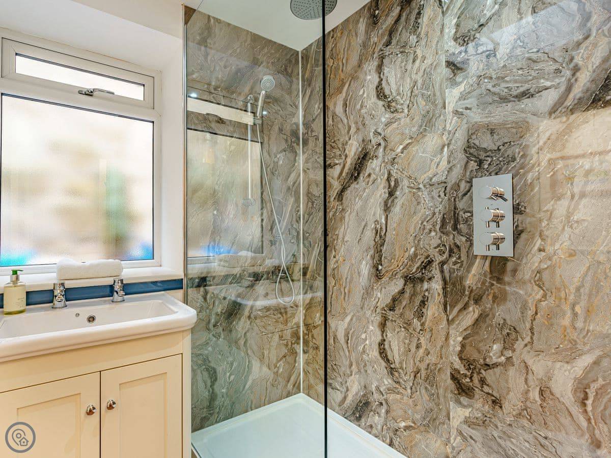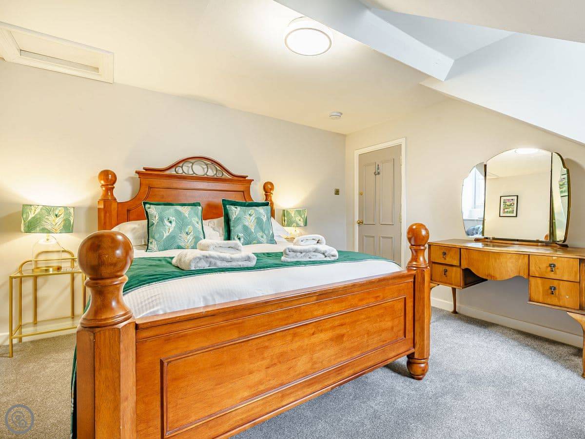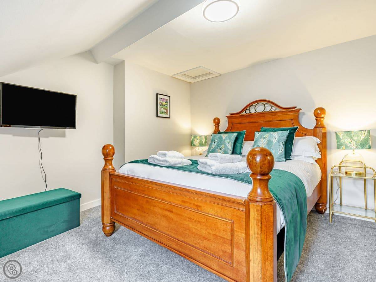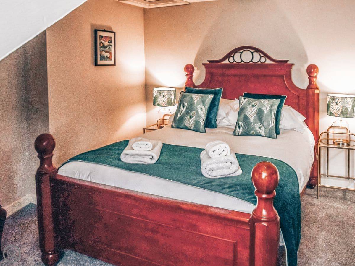 The bedrooms are all a good size. One super king, two kings, a double, and a room with bunk beds. The main bathroom has a roll-top bath and a separate shower. Towels and bedding are provided.
