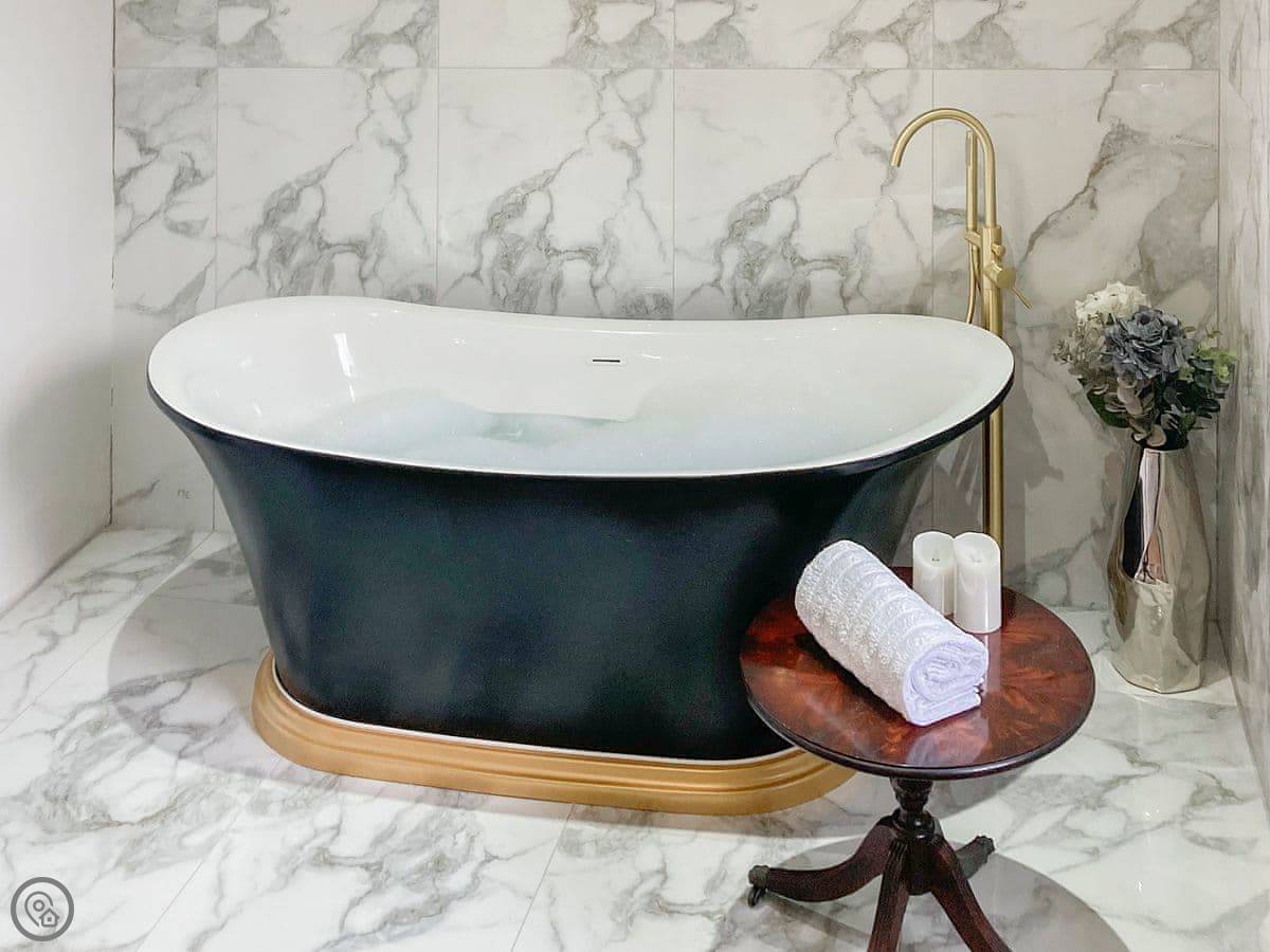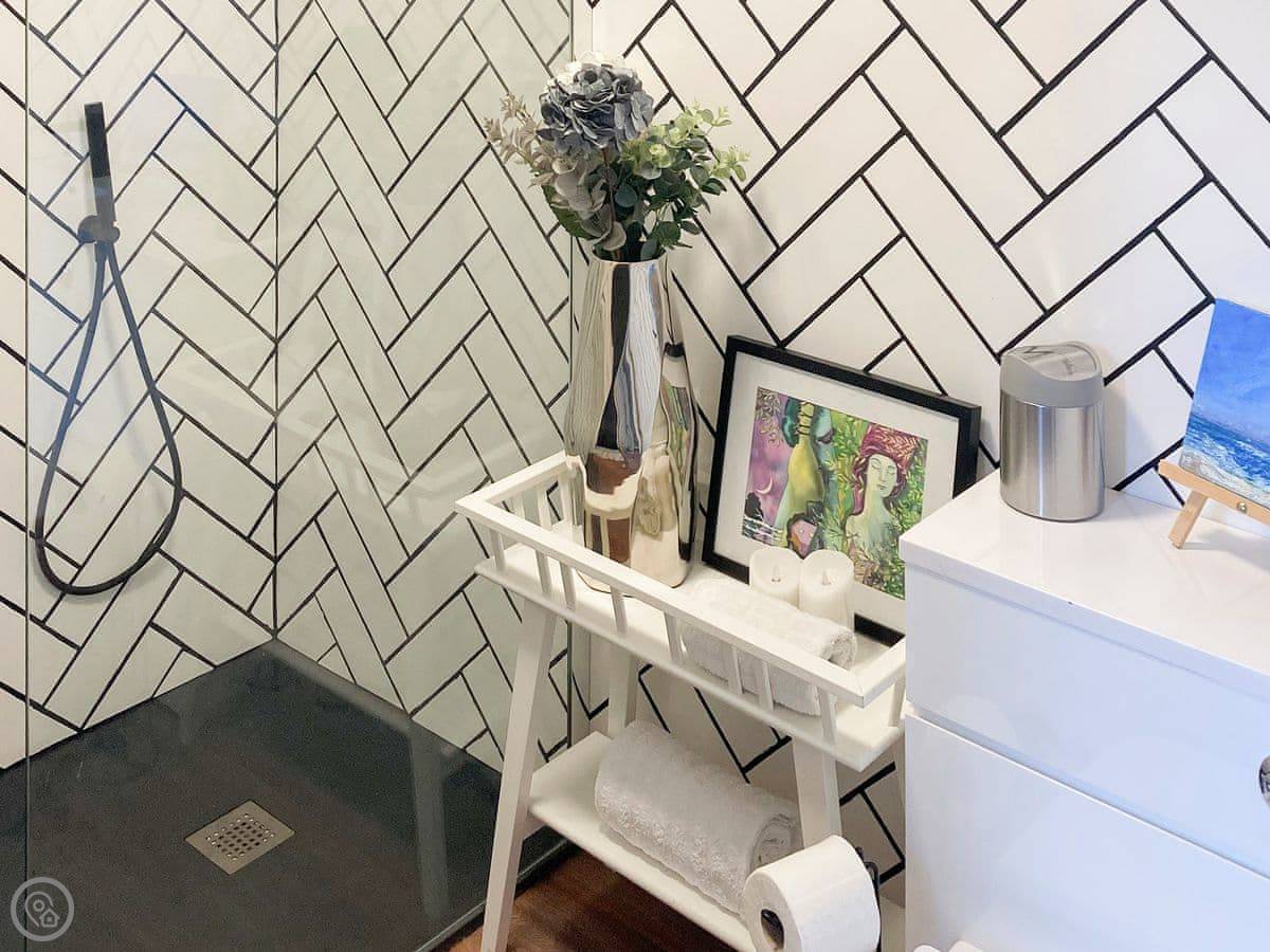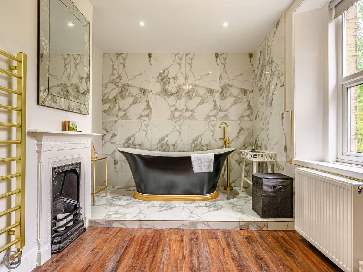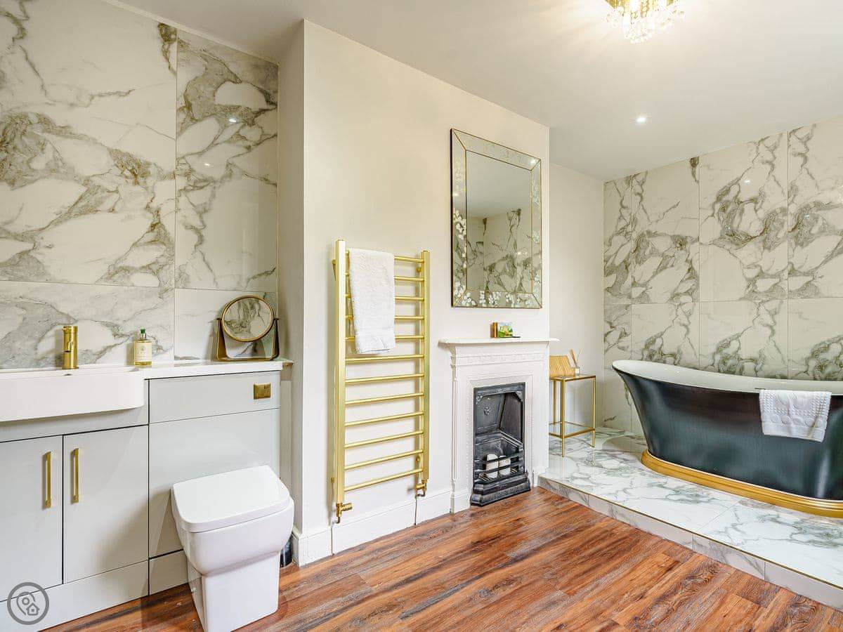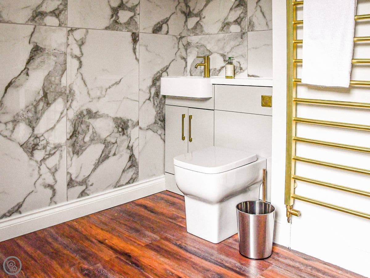 The bedrooms are all a good size. One super king, two kings, a double, and a room with bunk beds. The main bathroom has a roll-top bath and a separate shower. Towels and bedding are provided.