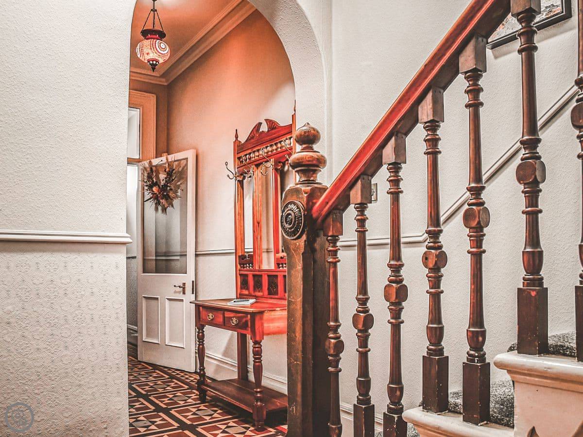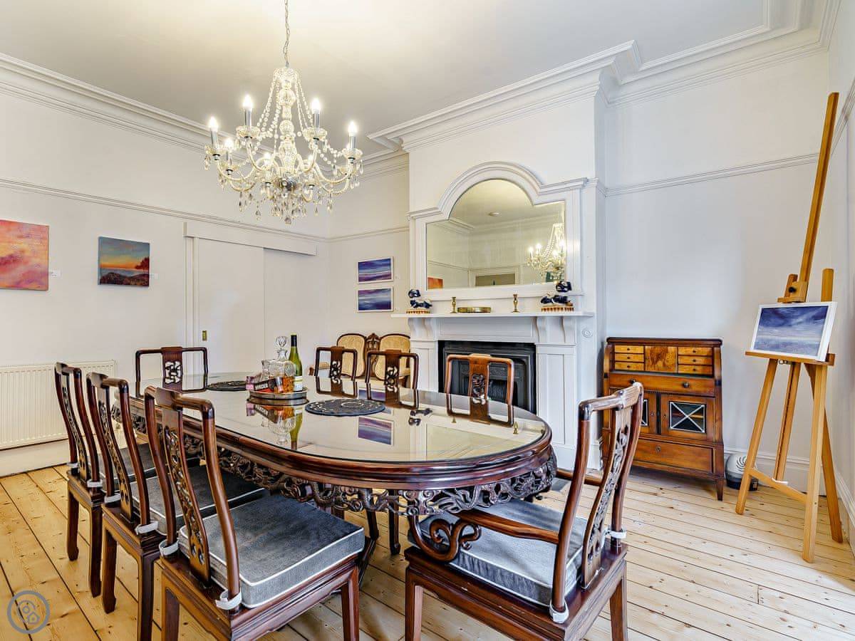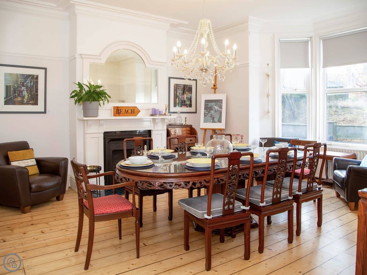 It sleeps ten people. There are five bedrooms and three bathrooms. It's got a 5 Star rating, which means it's well done and comfortable. The house is over four floors, so there are a lot of stairs. They're proper, broad Georgian stairs, but they're still stairs.