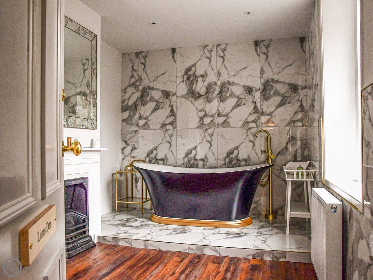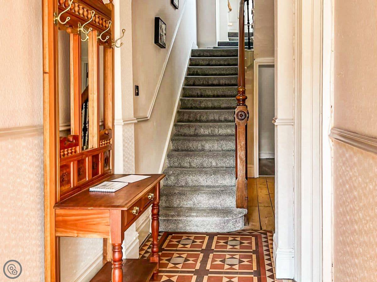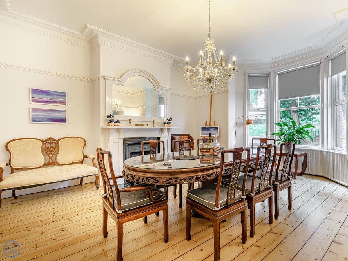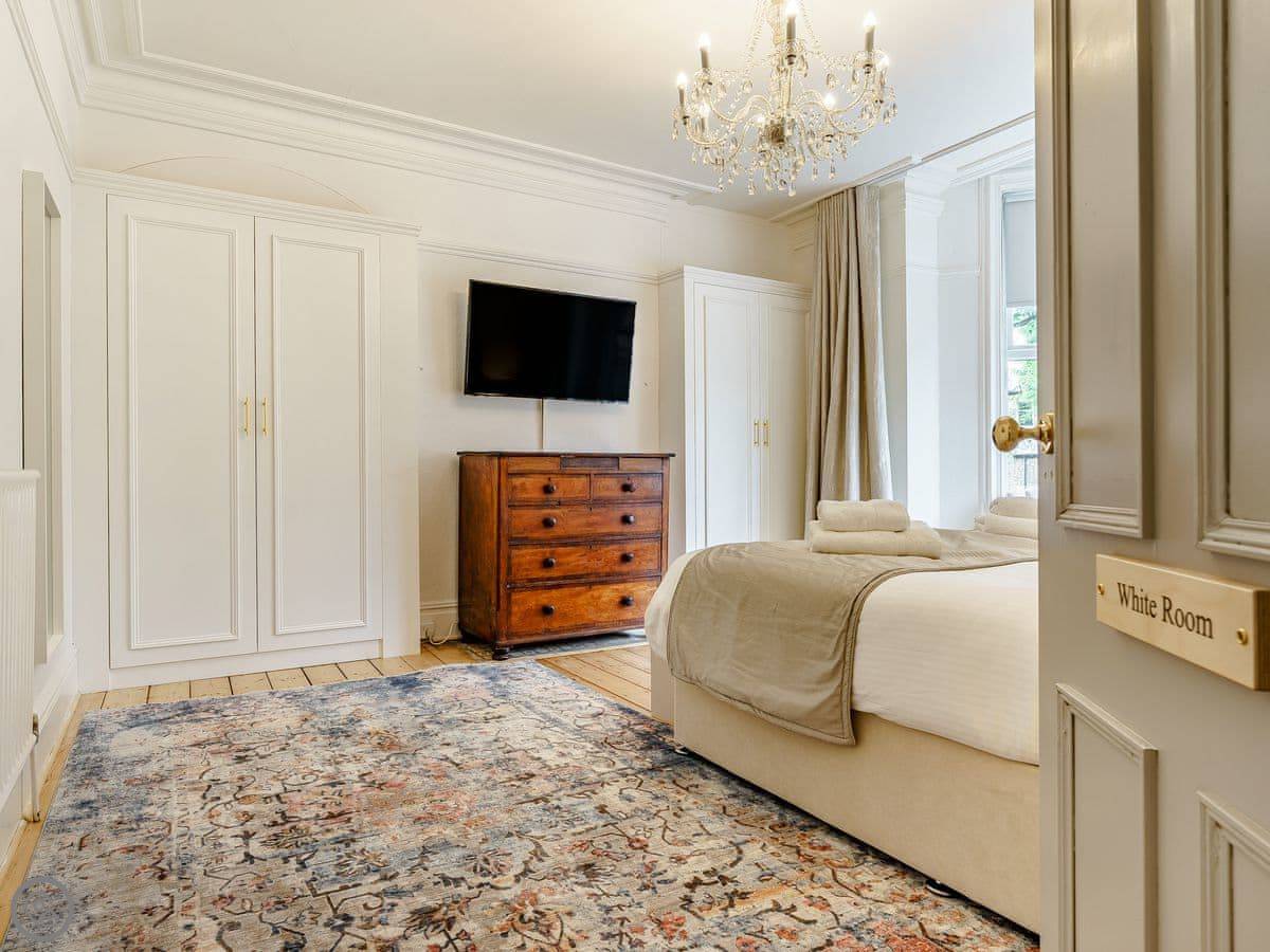 It sleeps ten people. There are five bedrooms and three bathrooms. It's got a 5 Star rating, which means it's well done and comfortable. The house is over four floors, so there are a lot of stairs. They're proper, broad Georgian stairs, but they're still stairs.
