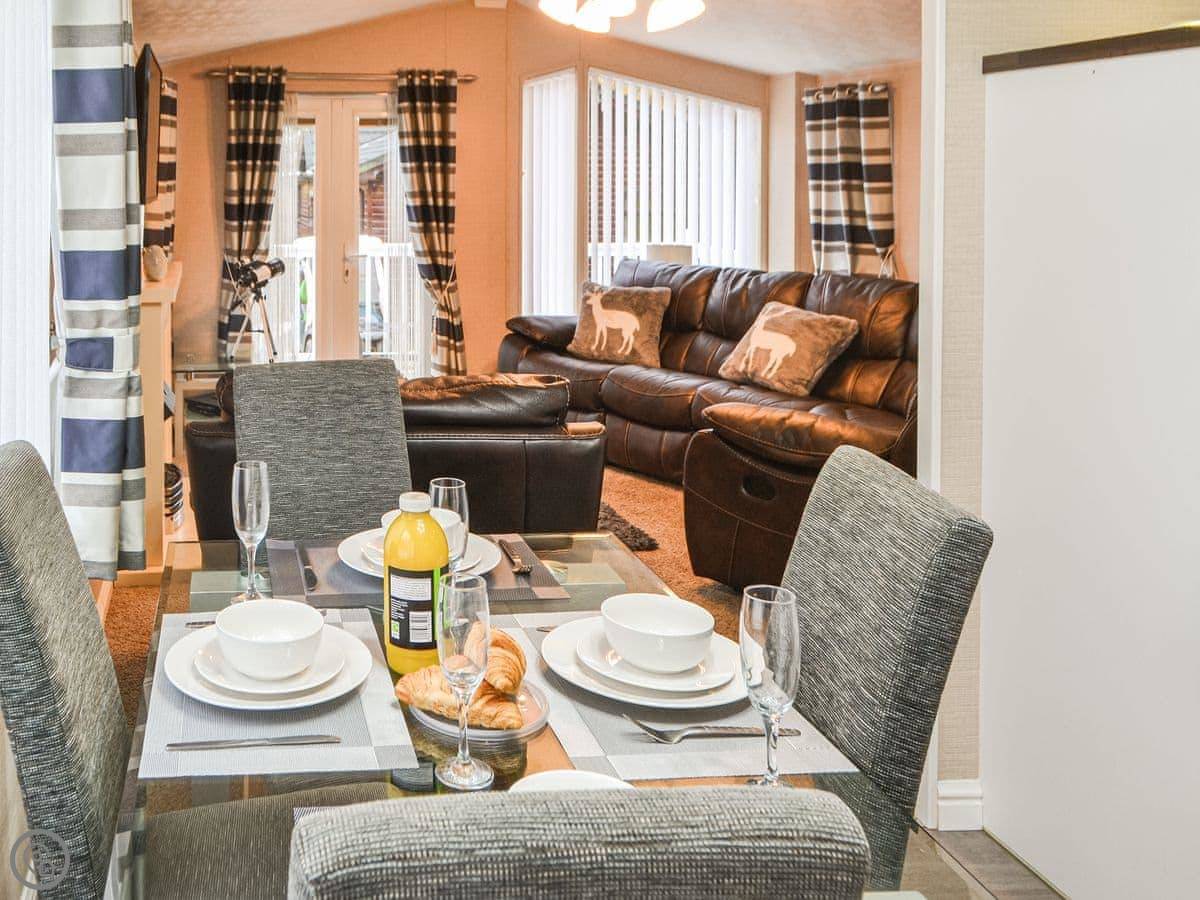 With a wonderful hot tub set to the rear of the lodge offering some privacy and embracing nature you can try and spot squirrels in the trees and wildlife, whilst relaxing on your much deserved short break or annual holiday. Aptly named Moonlight Lodge the side decking is a lovely place to sit and catch the moonlight and gaze at the dark skies amongst this tranquil area of this pretty country lodge park. There are woodland walks straight from your door this lodge is perfectly located to enjoy your chill out break. With large reclining corner sofas and an optimist fire, the living area is a cosy place to sit and watch a film on the TV on an evening. On site there is a small bar area at the end of the park near the golf course . Located only a mile from the A1 the location is ideal for travelling around this super friendly county where you are guaranteed of a real warm Geordie welcome. Head north only a few minutes to Alnwick where the majestic castle featured in Harry Potter lies, here you can discover the history of Alnwick then browse the shops and cafes. Only a few miles from Morpeth, a historic town with riverside walks and rowing boats, a lovely Edwardian Shopping Arcade and a great choice of bars and restaurants. Discover the miles and miles of golden sandy beaches set along the heritage coast visit Craster famous for its kippers, or Seahouses with a real seaside holiday feel. Nearby Amble has a popular Sunday morning market, cute shopping pods and a working harbour with plenty of places to have a lovely Sunday Lunch. Travelling all over the county from here is super easy with access in all directions, then come back and relax and unwind in the hot tub bubbles planning your next day’s adventures.
