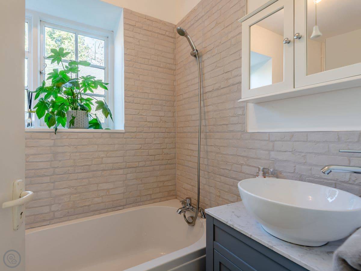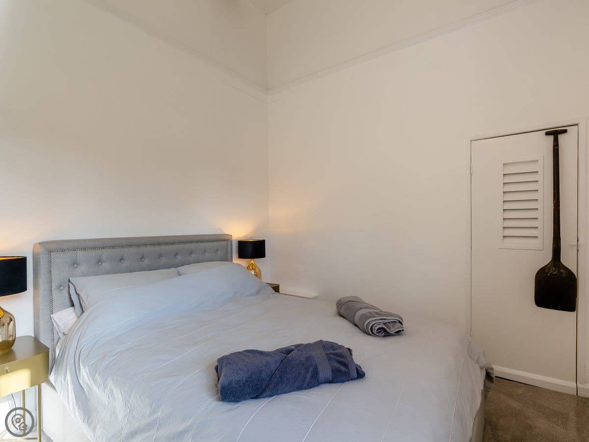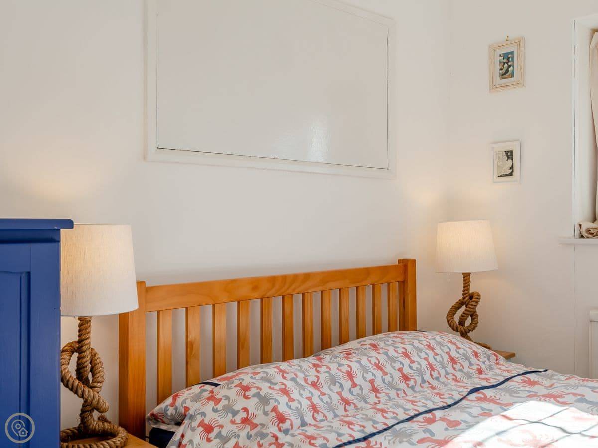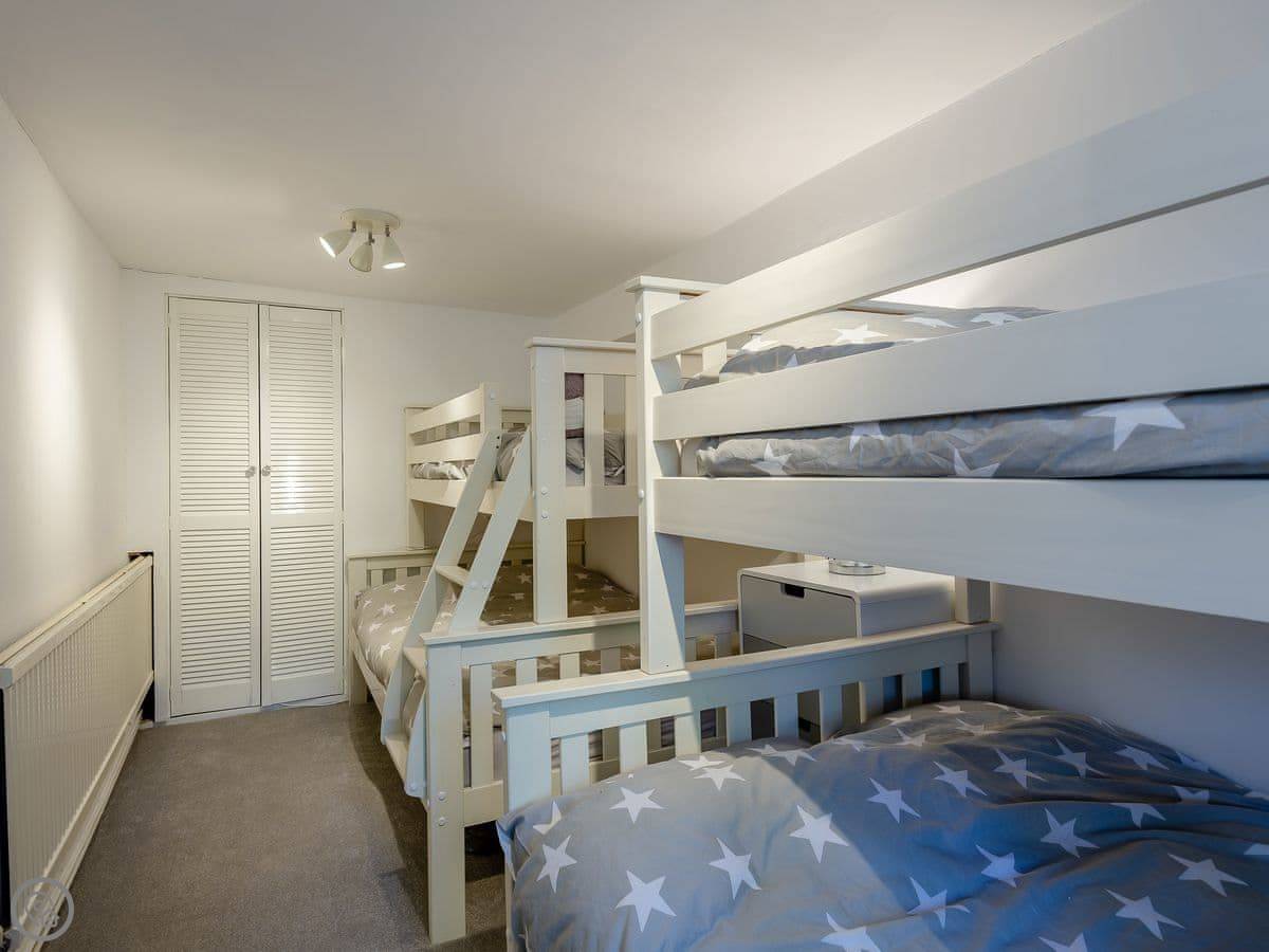 It sleeps four people. There are three bedrooms and one bathroom. It has a 4 Star rating, which means it's well-equipped and comfortable. The ceilings are high, which gives it a light feel, and there’s an open fireplace.