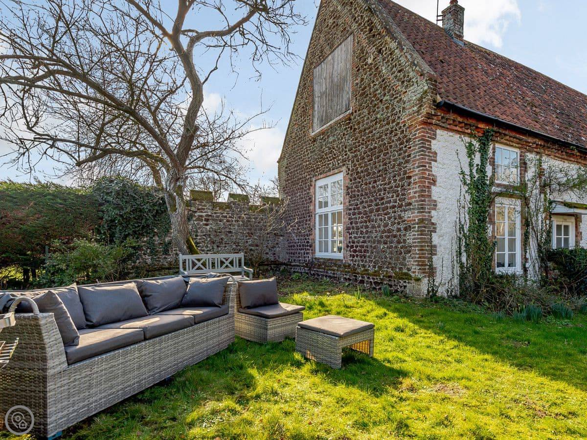 The Barn is in Old Hunstanton, Norfolk. It sits behind some large stone gateposts, set back from the lane. It’s a single-storey barn conversion, so everything is on the ground floor. The garden is enclosed and private.