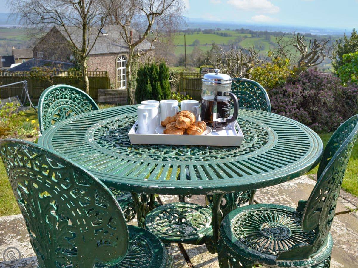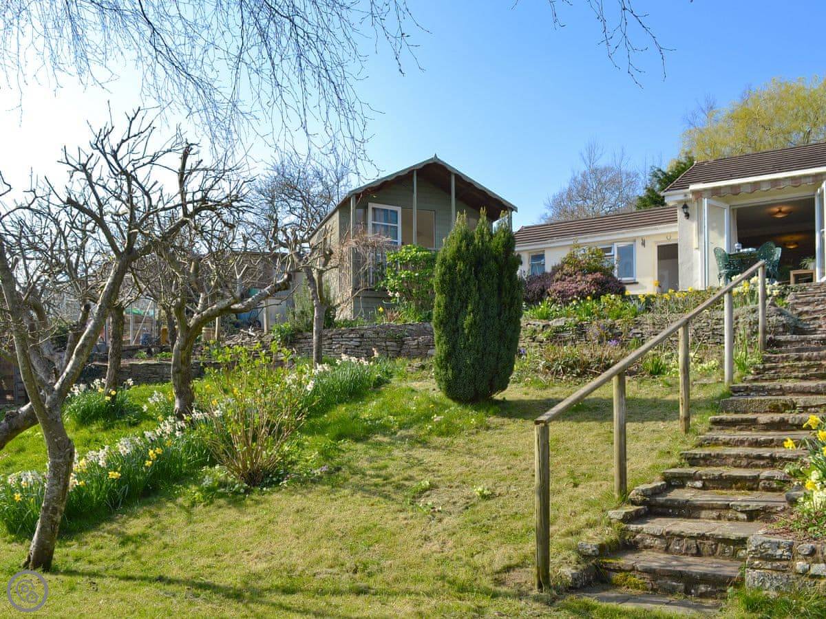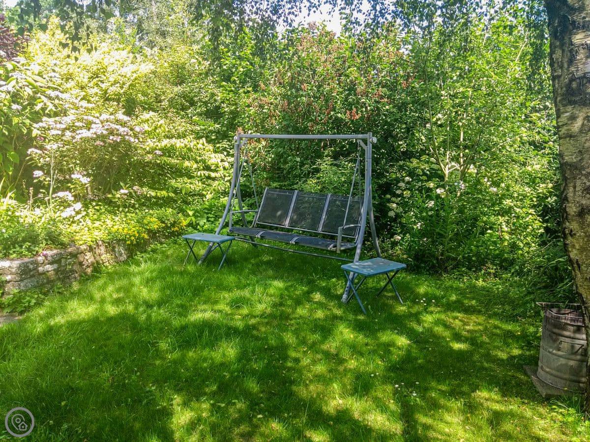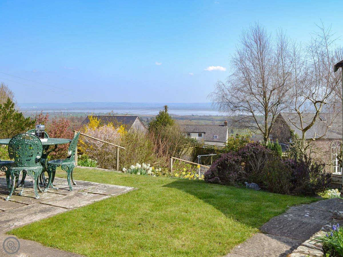 The garden is enclosed and mostly flat, with a lawn and a summerhouse. There's also a lower lawn with an orchard, but you get to it down some steps or a sloping path. There's a handrail.