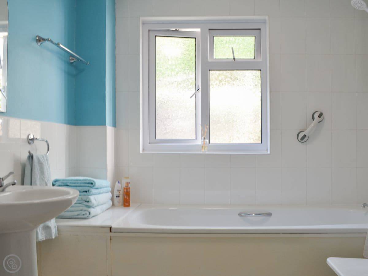 It sleeps five in three bedrooms. There's one bathroom. It has a 4 Star rating, which covers things like the dishwasher and the WiFi being included. The whole place is on one level, which is handy. There's just one small step up to the front path.