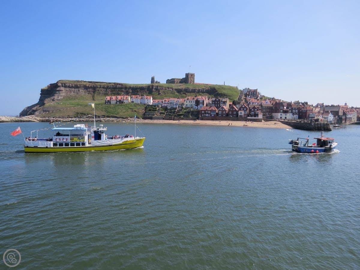 Whitby town centre, the harbour, and the beach are all about a fifteen minute walk away. You've got the 199 steps up to the Abbey and the church if you want that view. The North York Moors National Park starts just outside town. You can get the heritage steam train from Whitby station straight into the middle of it.