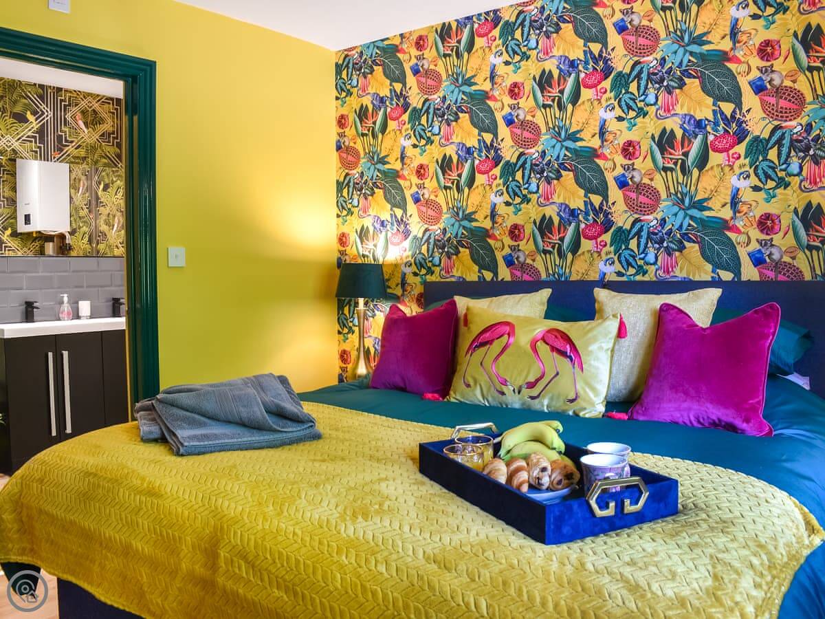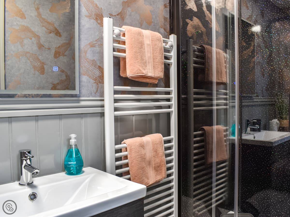 It sleeps four. Two bedrooms, both with king size beds and their own shower rooms. It's got a 5 Star rating, which means it's well finished and has things like a dishwasher and wifi included.