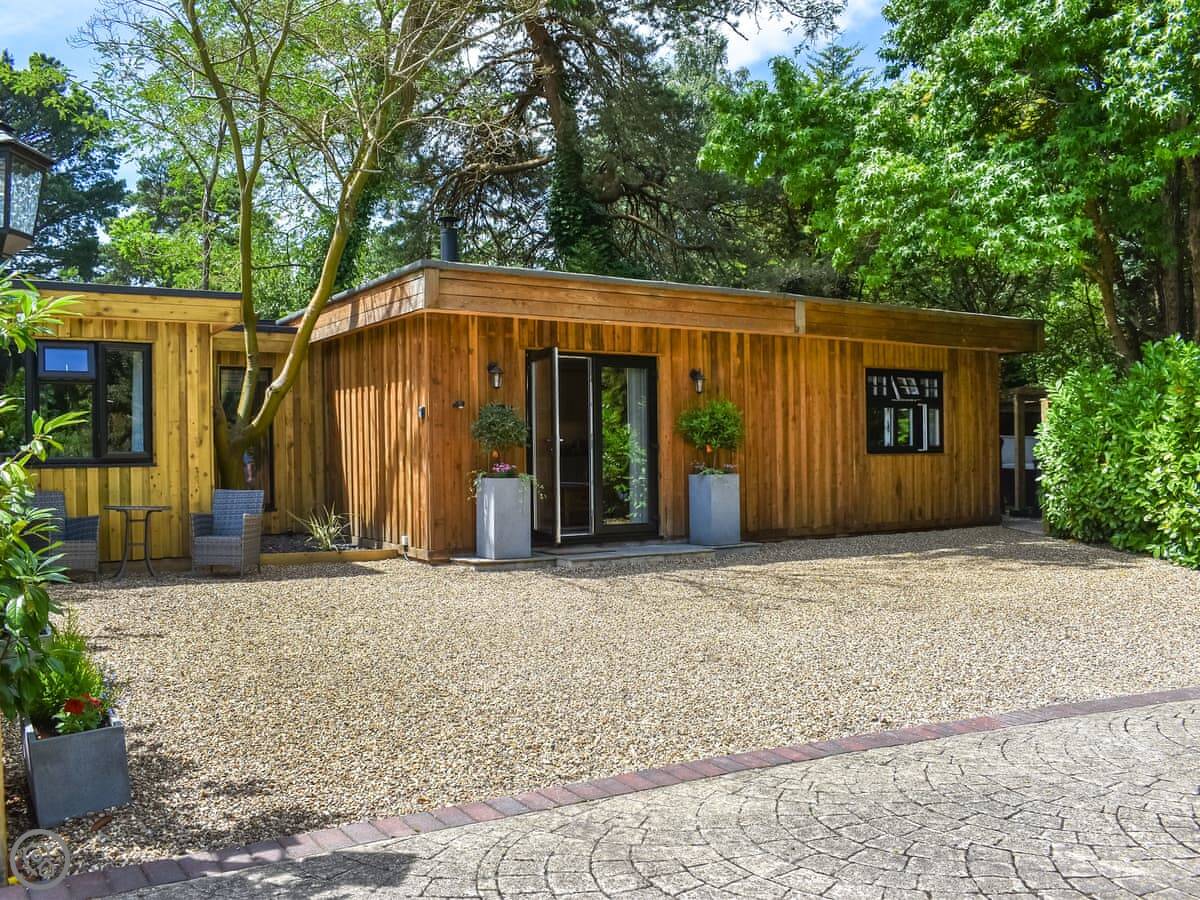 The Retreat is a lodge just outside St Leonards in Dorset. It's new and detached, so it's quiet. You've got your own garden, and it's enclosed.