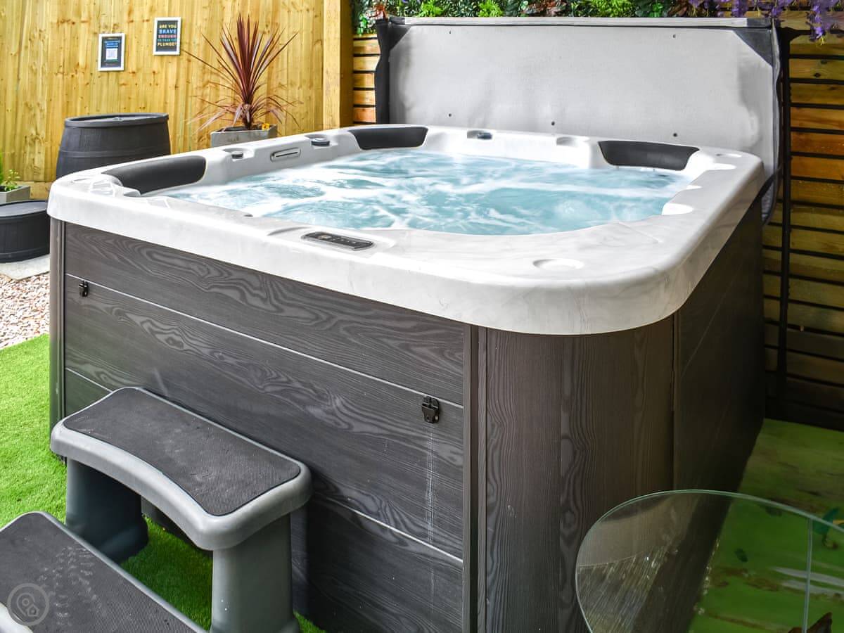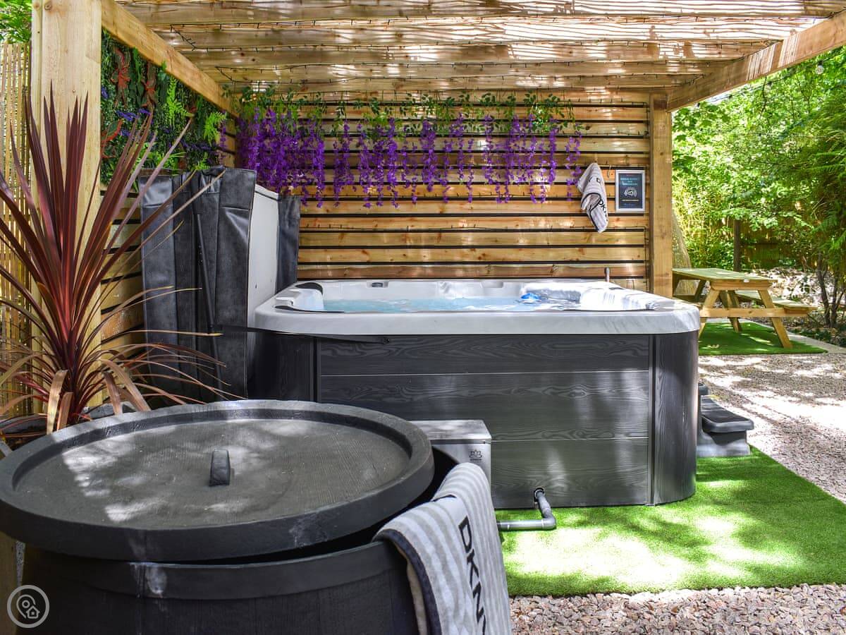 Outside, there's a private plunge pool and a hot tub. They're both for your use only.