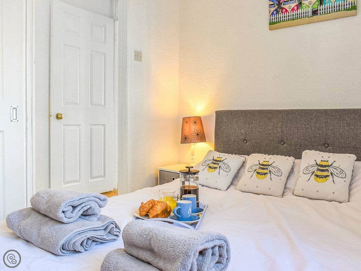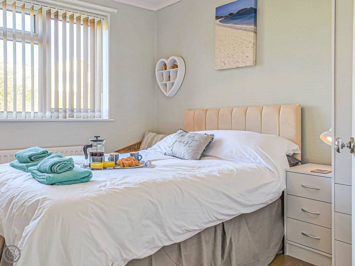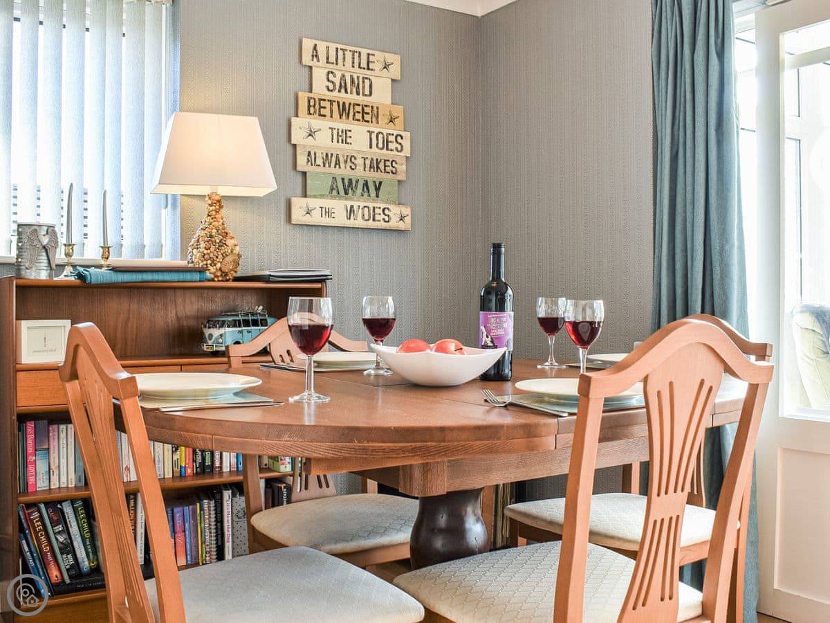 As you enter the property, you will be welcomed into the cosy living room which has two comfortable sofas, a smart TV and a dining table and chairs. Wind down and watch a film here after a busy day exploring the coastline. The living room then leads into the conservatory which is a great suntrap with seating and a small desk, and this opens out to the balcony with an outdoor dining set of furniture and a parasol. The kitchen is fully equipped with everything needed to prepare a home cooked meal, including an electric oven, gas hob, microwave, dishwasher, and a fridge/ freezer. The hallway leads to the three double bedrooms and the shower room which has a shower cubicle, heated towel rail, toilet, and a sink. Outside, guests will enjoy use of the south-facing garden which has a lawn, a pond which is fenced in and a decked area with outdoor seating, a firepit and a charcoal barbeque; a great spot for enjoying your morning coffee.