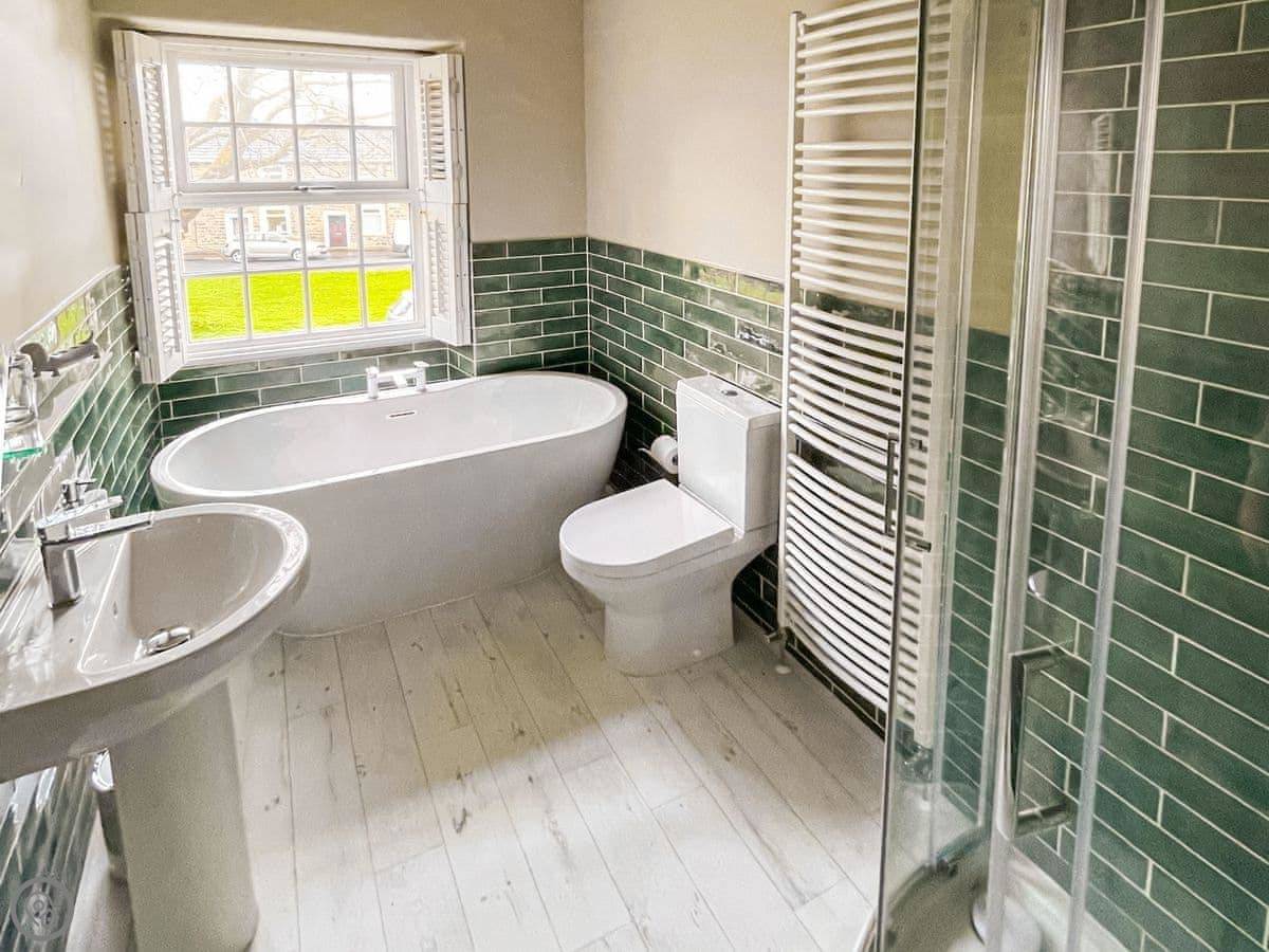 This is Honey Cottage, in Gargrave. It's a Victorian cottage we renovated from the ground up a while back. It sleeps four in two double bedrooms. There's one bathroom upstairs with a bath and a separate shower.