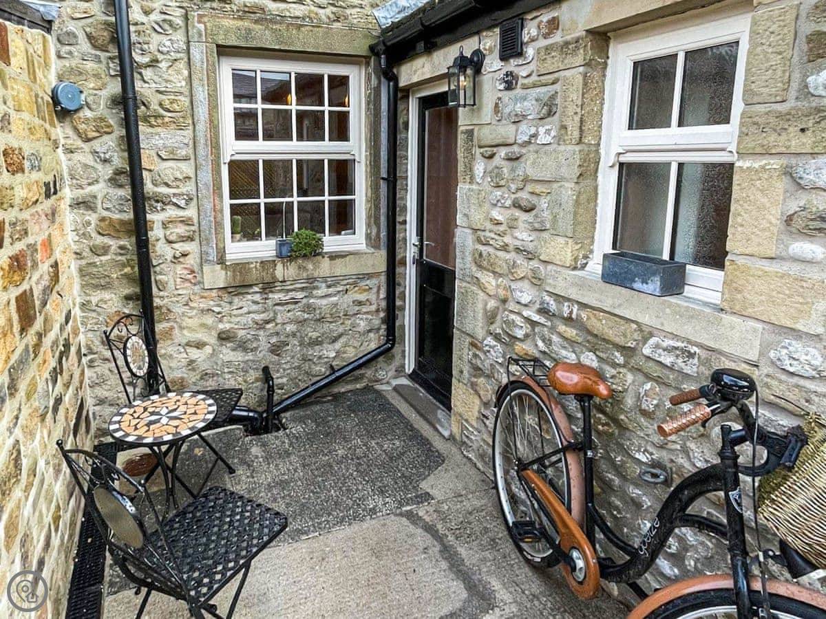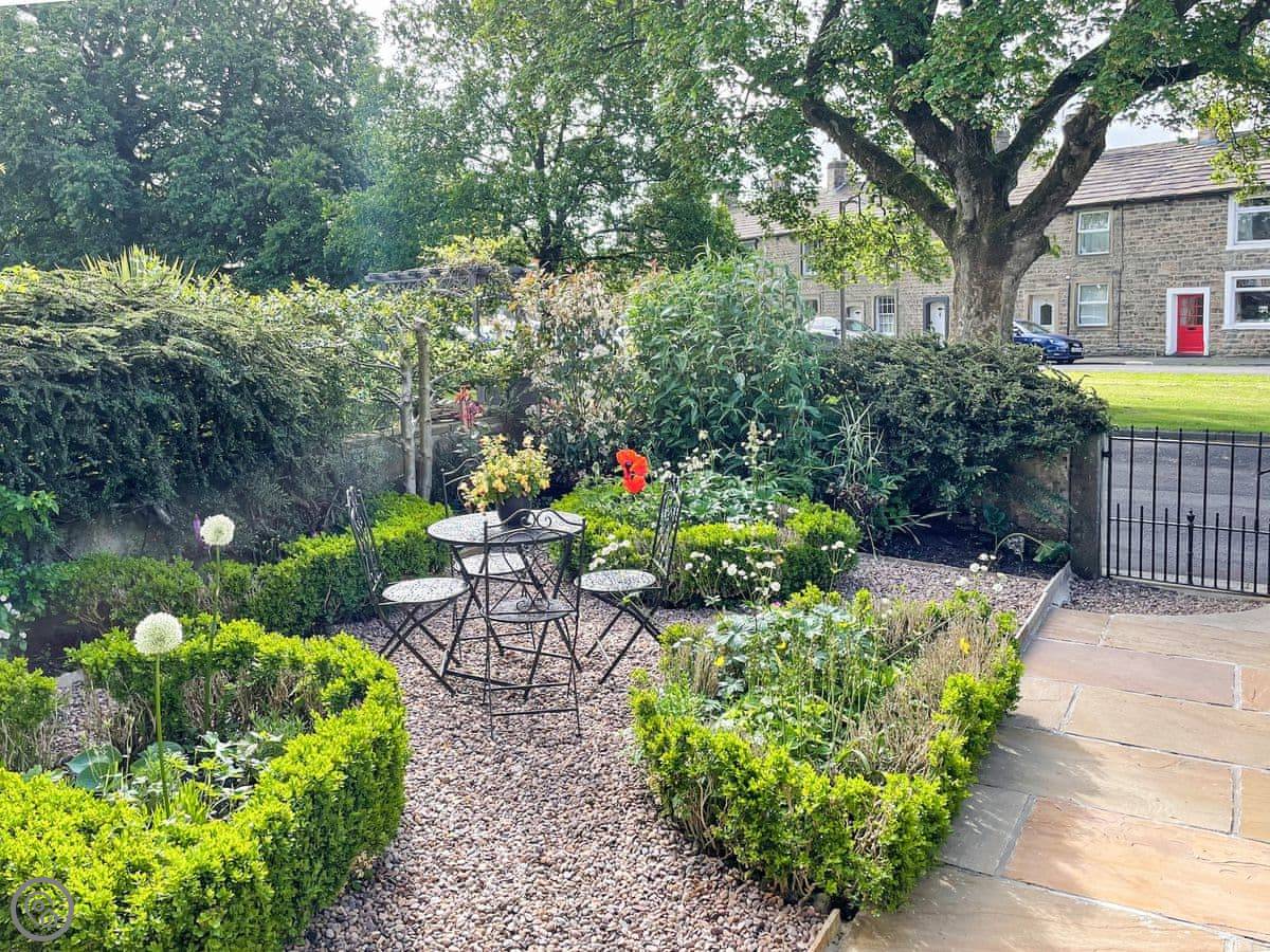 You get the front garden to yourselves. It's a proper formal garden, which is rare in the village now. There's a table and chairs out there. Round the back is a small yard with another little table.