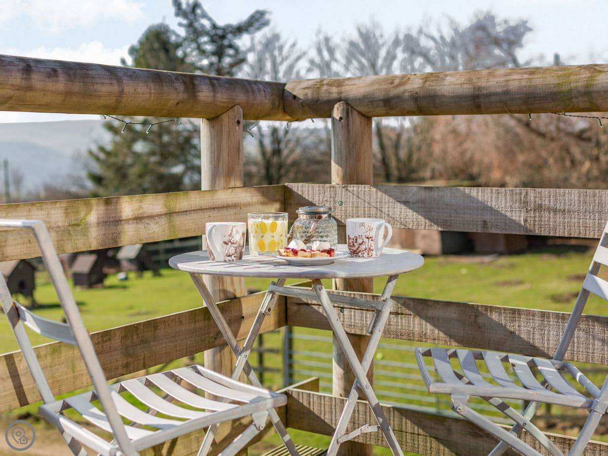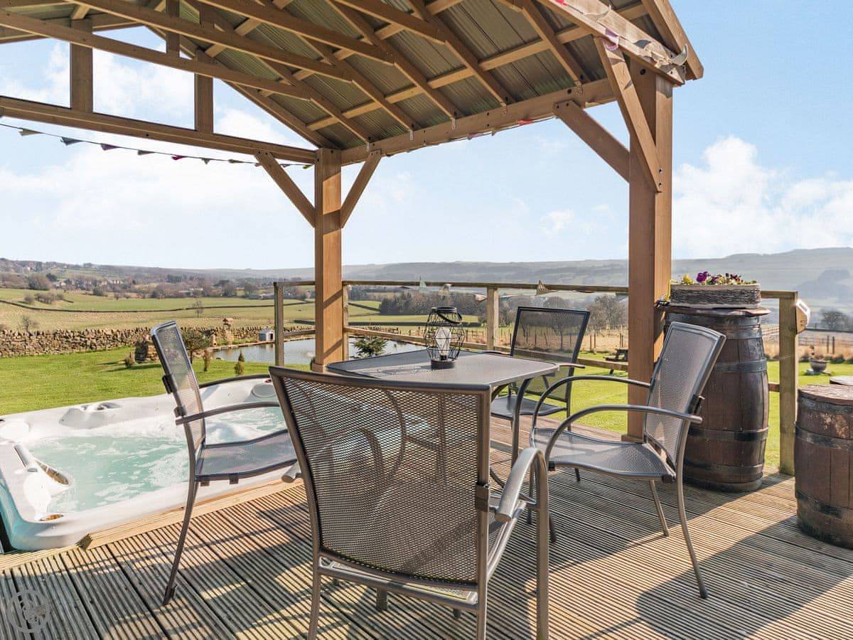 Huntercrook Lodge sits in an elevated position with grand views over rolling countryside and the Tyne Valley. Enjoying the most idyllic setting amidst stunning countryside, the ducks, hens and wildlife wander freely and the pet sheep graze in the adjacent field. With extensive gardens, a terraced decked area with pergola houses the sunken hot tub and outdoor seating and looks across to the pond and trickling fountain. In the evenings the romantic setting comes alive with twinkling lights and dark skies. A warm welcome awaits inside, with extra special touches for the guests. Prosecco on ice to greet you, a lovely welcome hamper and home baked cake! Simply park up the car, unpack and begin your holiday!