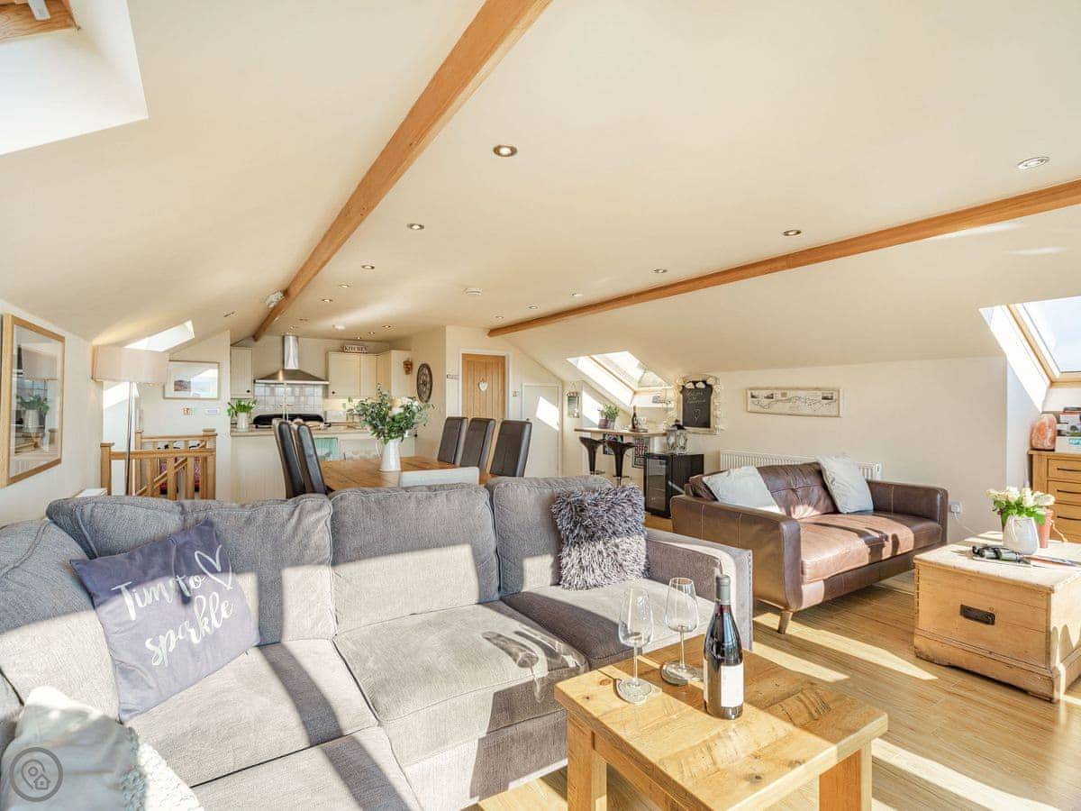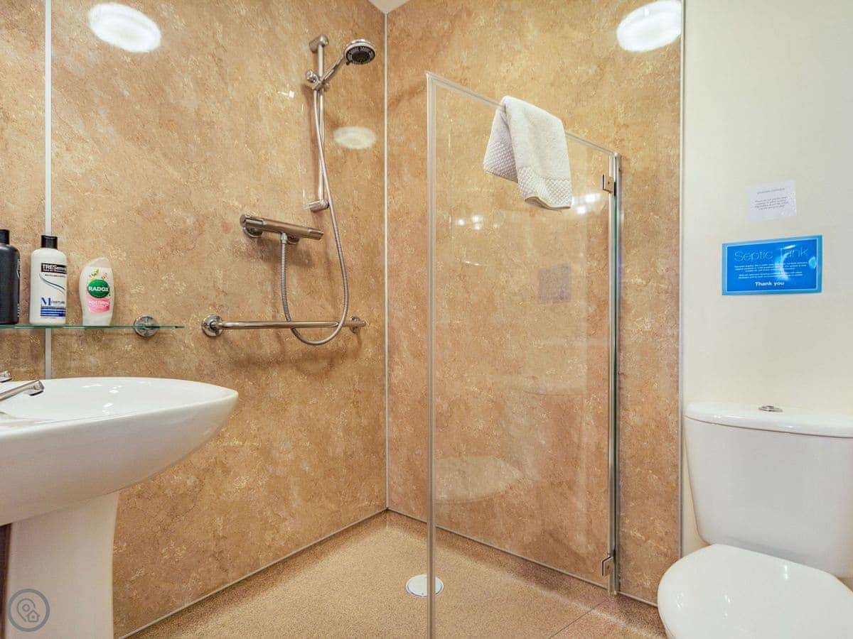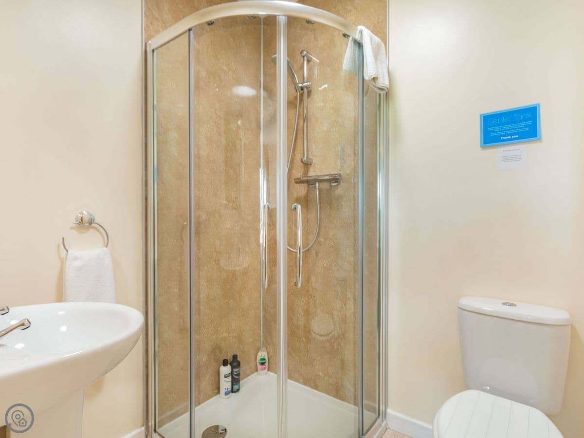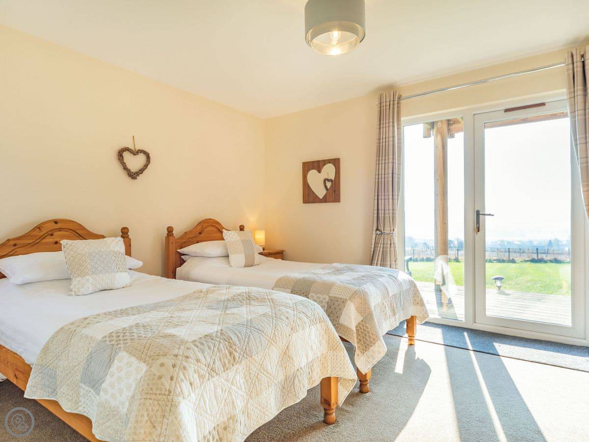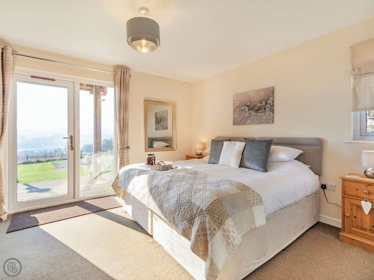 The Lodge is upside down in design where the first floor opens up into the most amazing living space. With vaulted ceilings and floor to ceiling windows bringing the outside in, the sofas are positioned to take full advantage of this. A large wall mounted smart TV with Netflix provides your movies and entertainment. The large patio doors open onto a stunning balcony area set with tables and chairs, imagine a morning coffee or an evening G&T looking out onto spectacular views, south facing you can enjoy the best of the weather all day long. The cupboards are well stocked whether catering for a hearty supper or a special afternoon tea party. The Lodge even has its own quirky bar area complete with drinks fridge and cocktail shakers! The stylish kitchen has a gas range cooker and everything you need and more to cater for your stay. On the ground floor are four good sized bedrooms, all en-suite with patio doors opening out onto the outside decking. The first a twin room, bed two a double room, bed three a super king and bed four has level access from outside with double bed and en-suite wet room. All bedrooms are superbly equipped and furnished for a high level of comfort with TVs and complimentary toiletries.